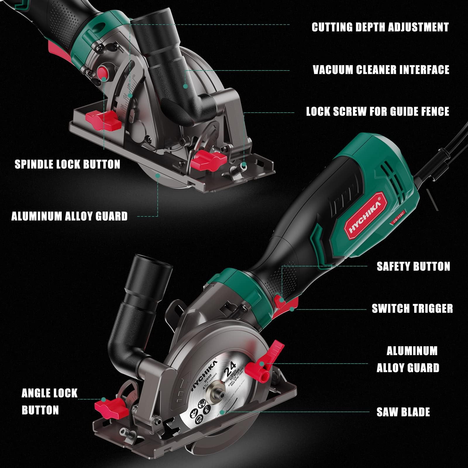 HYCHIKA 750W Compact Circular Saw, 6.2A, 120V, 3500 RPM, TCT Blade