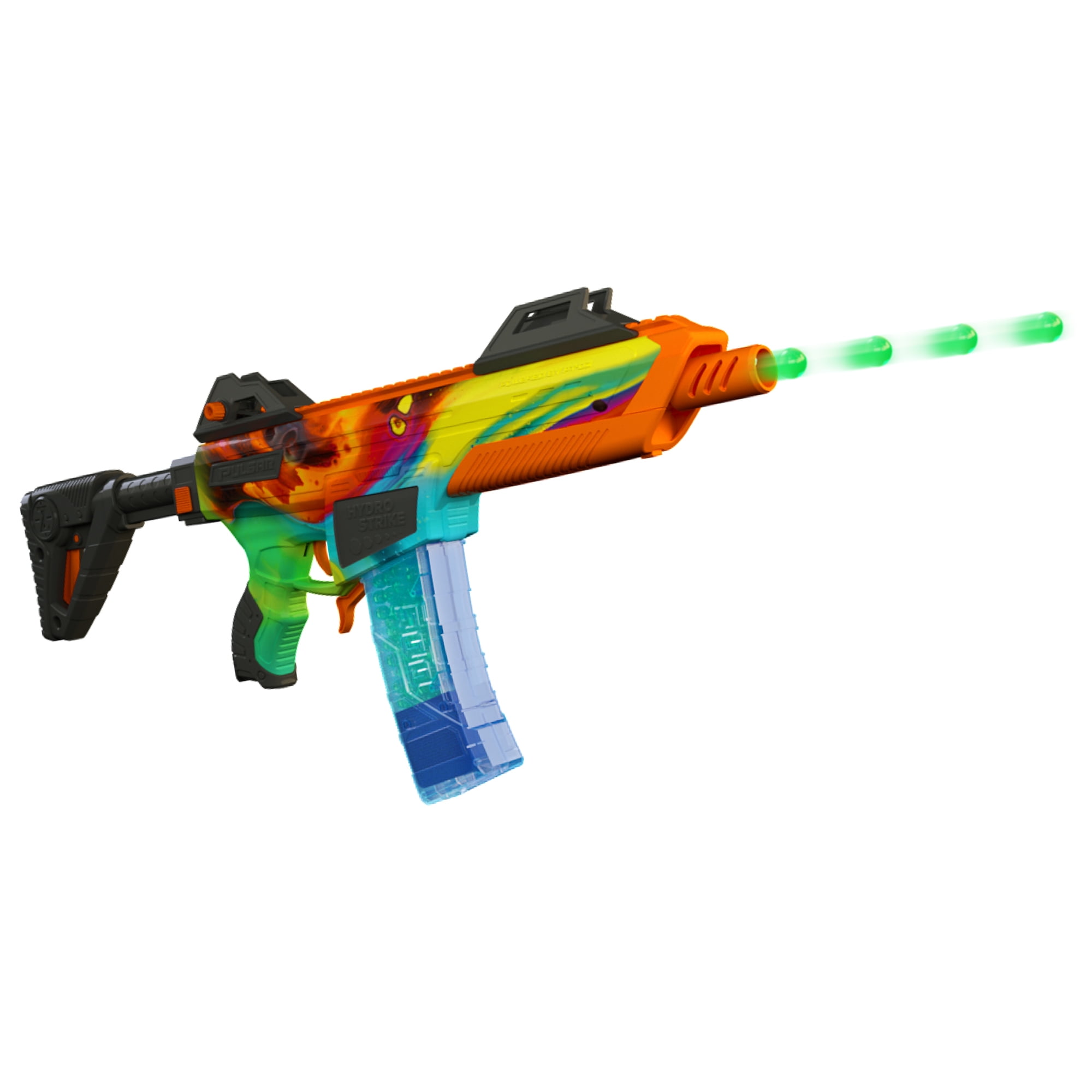 Includes 1 Hydro Strike Pulsar Pro Gel Bead Blaster, 5,000 Gel-Tek beads, Hydro Strike protective eyewear, and a Gel-Tek bead storage container. Gel-Tek beads splash on impact for blaster action without the cleanup. Hydrate Gel-Tek beads in water for 4 hours for optimum results. Features full-auto and semi-auto modes, 2 sights, and an adjustable shoulder stock. The bright, neon design brings style to the gel bead blaster field. Gel-Tek beads are compatible with most standard water bead blasters. Recommended for ages 14 and up. Universal Gel-Tek Water Beads. Available exclusively at and .