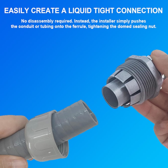 - No threading of conduit required to install, no disassembly required (just push tubing onto fitting)