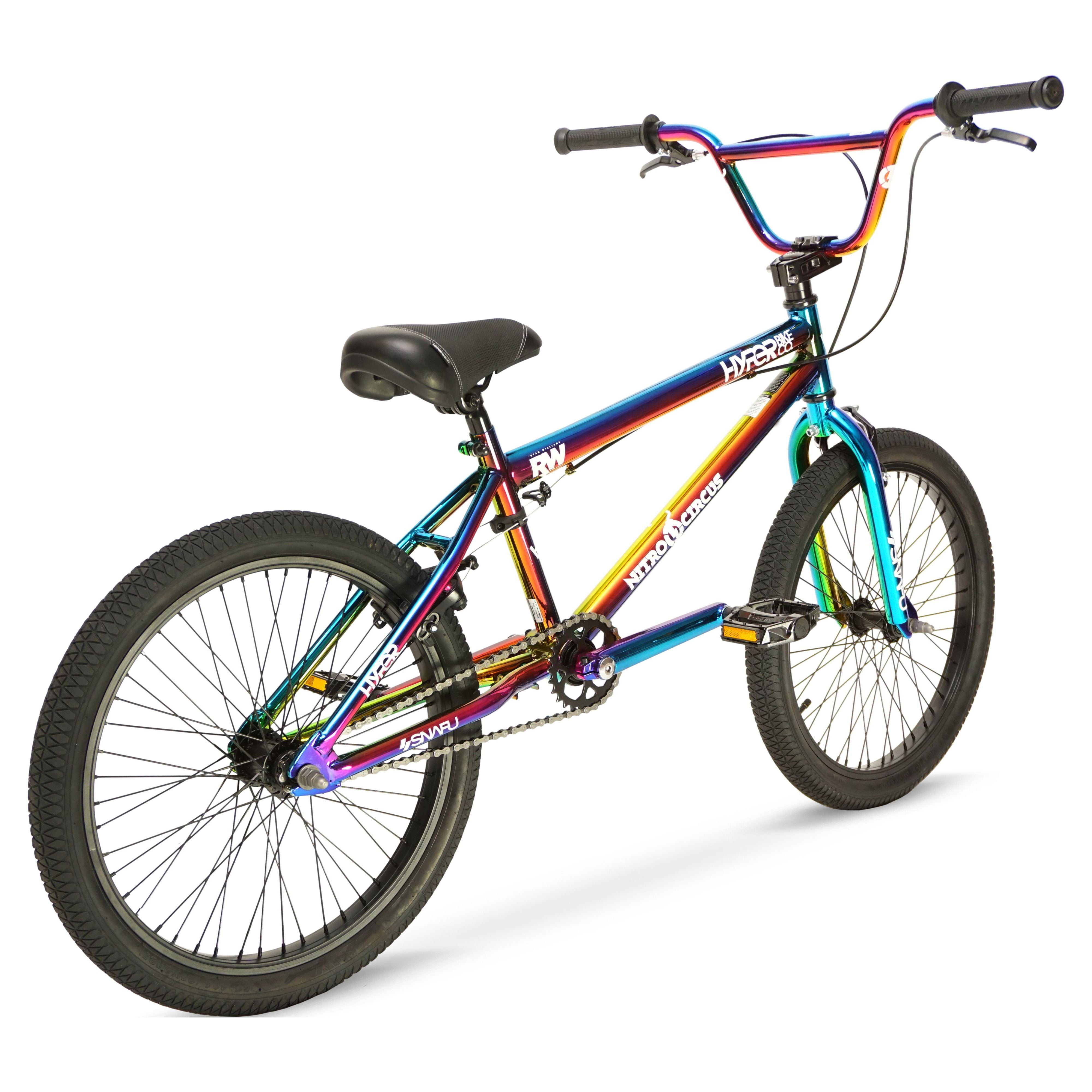 In collaboration with the Nitro Circus Tour Pro Rider Ryan Williams the 20 inch Hyper Nitro Circus “RWilly” Jet Fuel BMX Bike comes with our signature “Jet Fuel” finish and quality BMX parts. Great for intermediate riders ready to improve their skills and have fun riding with friends. This BMX bike has a Thread-less top-load stem, Front caliper and rear U-brakes, and has a max weight of 220 lbs. You can ride just like RWilly himself on this amazing BMX bike!
