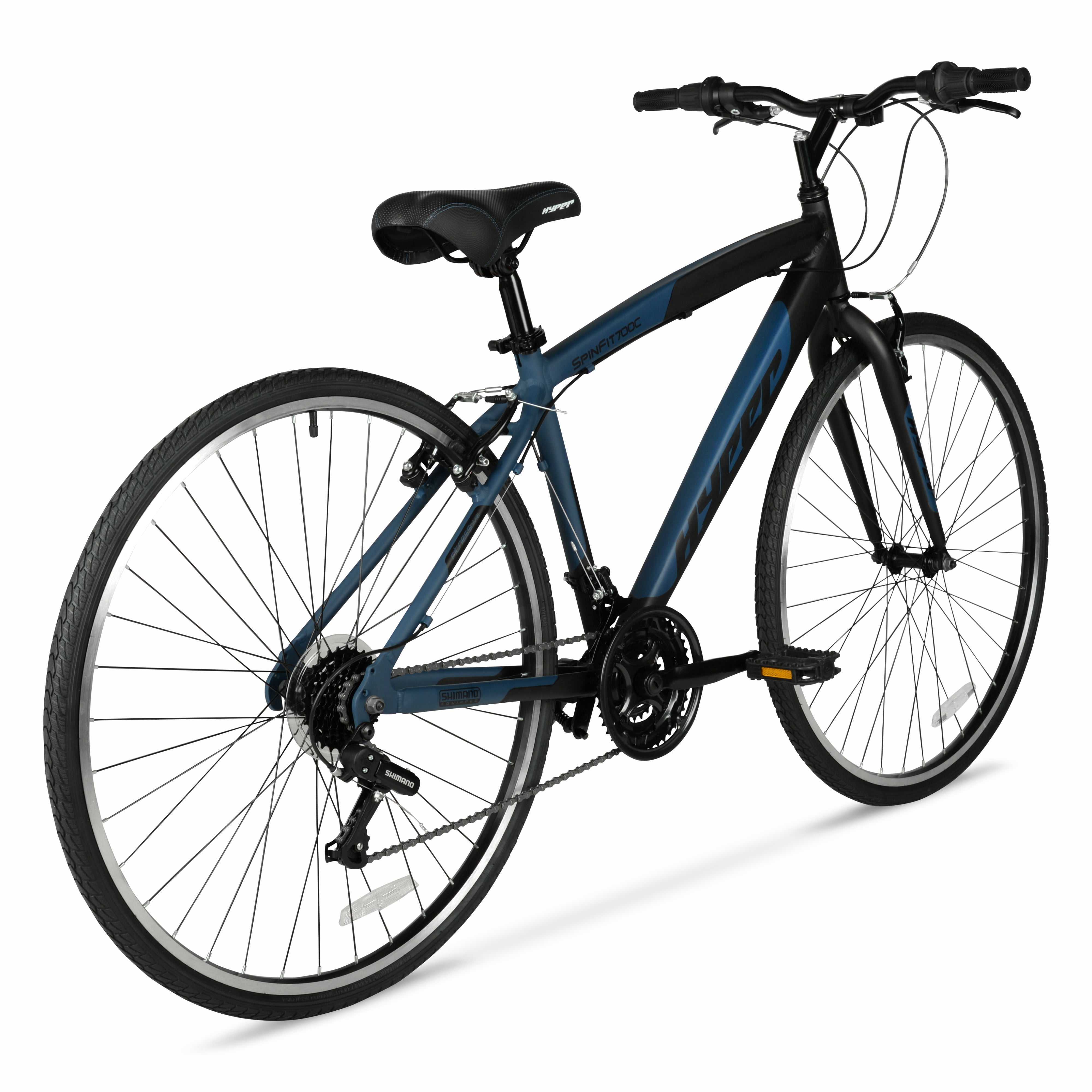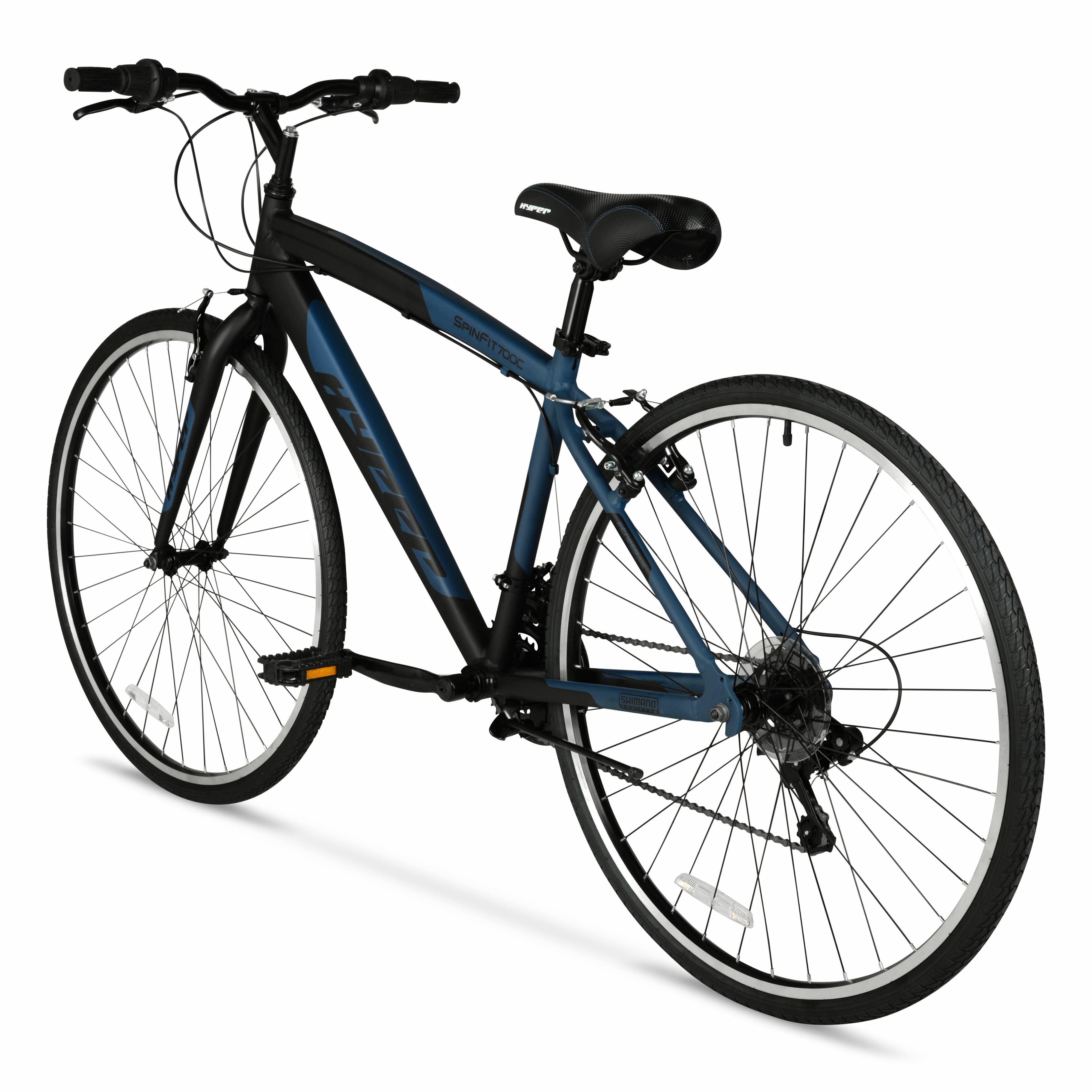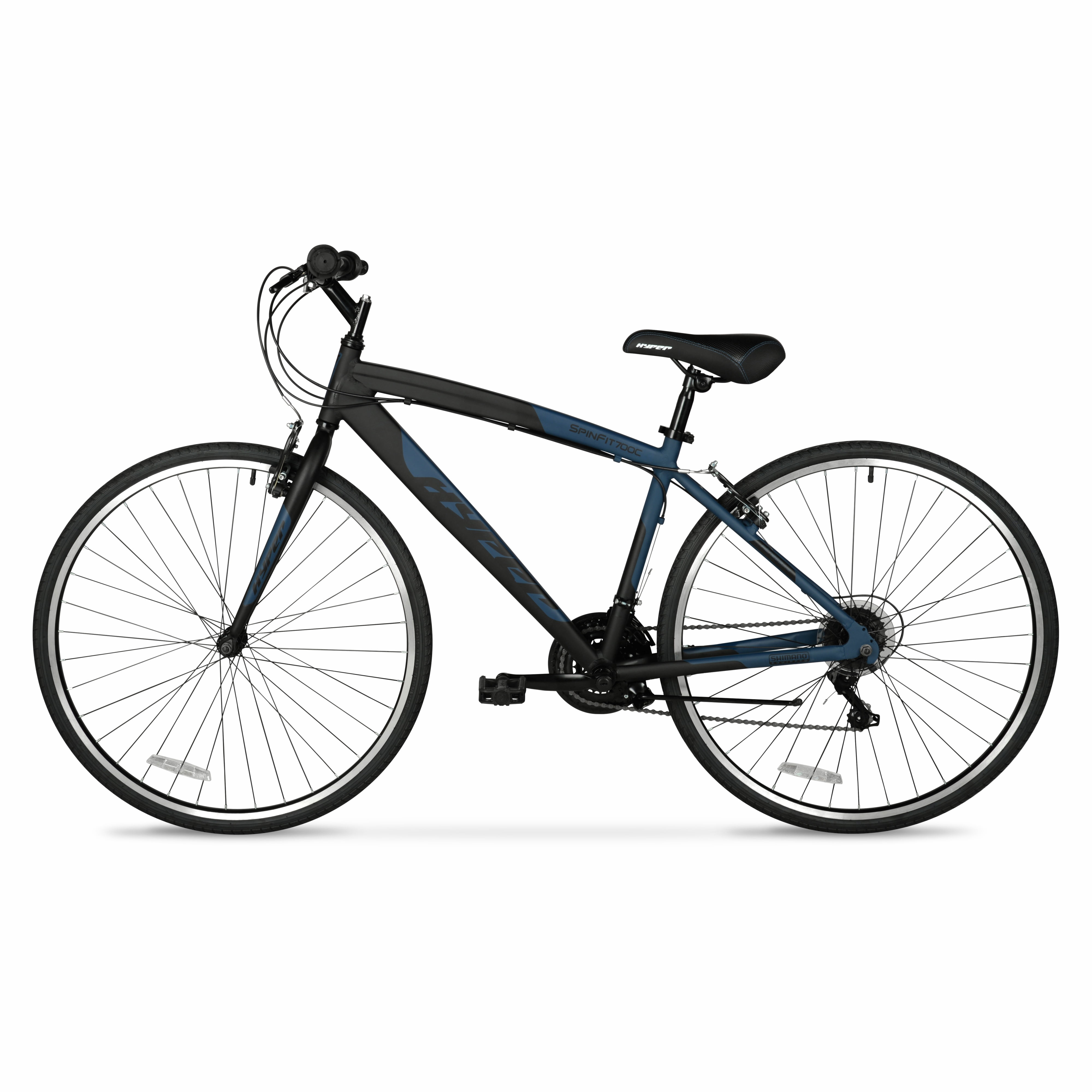 Get ready to amp up your riding experience with the adrenaline-pumping 700c Hyper Spin Fit Men’s Hybrid Bike. This bike is the ultimate fusion of mountain bike versatility and speed-hungry road bike performance, allowing you to conquer any terrain with effortless ease. Crafted with a lightweight yet sturdy aluminum frame, this hybrid bike is built to withstand the toughest challenges and deliver a smooth, responsive ride. The Shimano drive train delivers unbeatable power and precision, offering a 21-speed shifter set and rear derailleur for seamless gear transitions and maximum control over your ride. No matter where your adventure takes you, the low-profile, high-performance tires ensure optimal traction and stability, guaranteeing a safe and exhilarating ride every time. Whether you’re tackling steep hills, zipping through urban streets, or cruising along scenic trails, this hybrid bike effortlessly adapts to your every whim. When it comes to stopping on a dime, you can rely on the front and rear caliper brakes to provide the ultimate stopping power. Strap on your helmet, tighten your grip on the handlebars, and get ready to unleash your inner daredevil. The road is calling, and it’s time to answer with a roar!