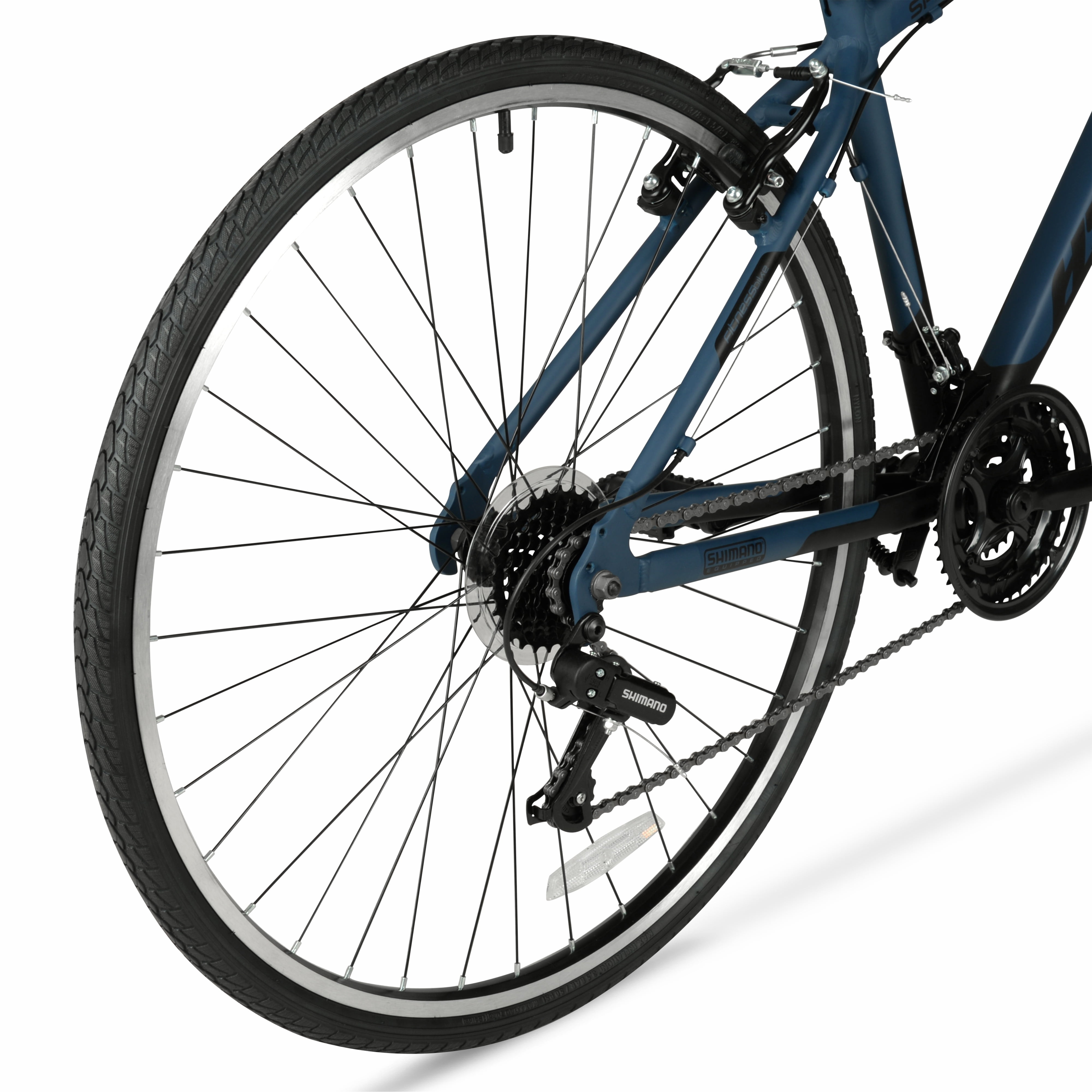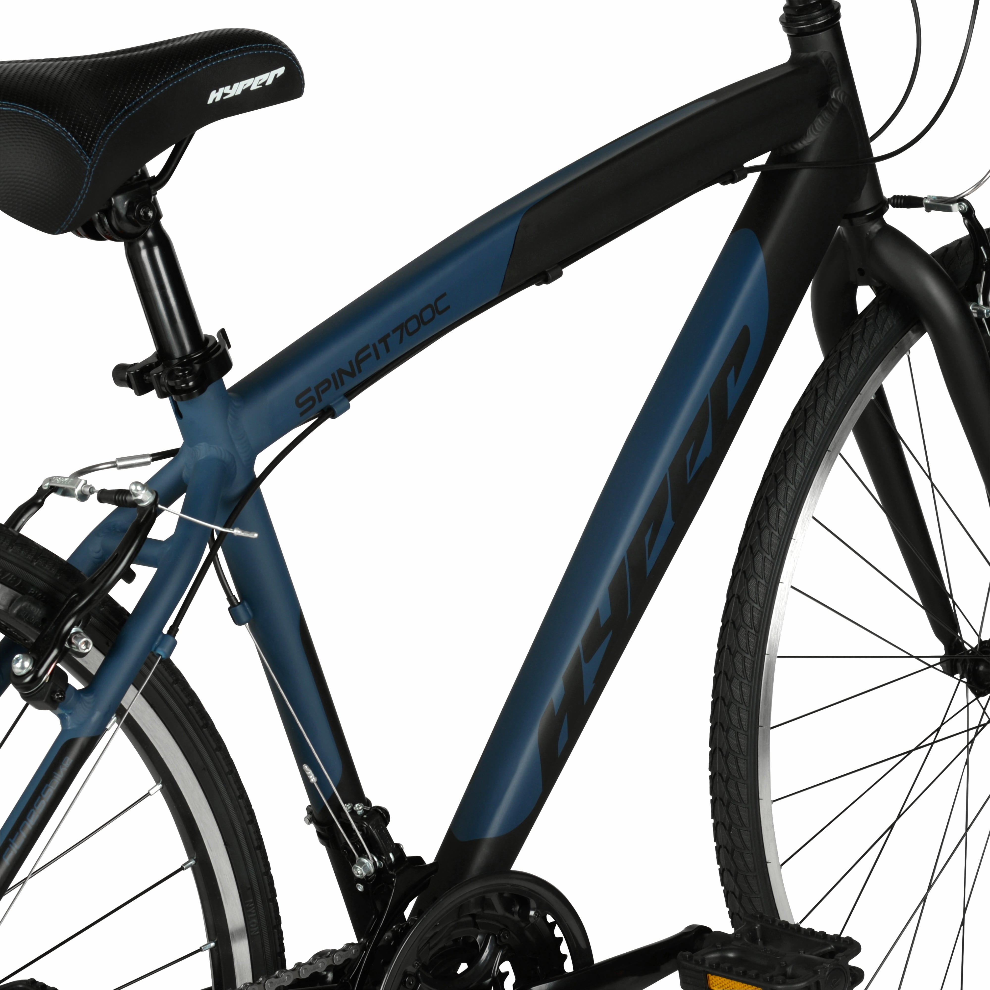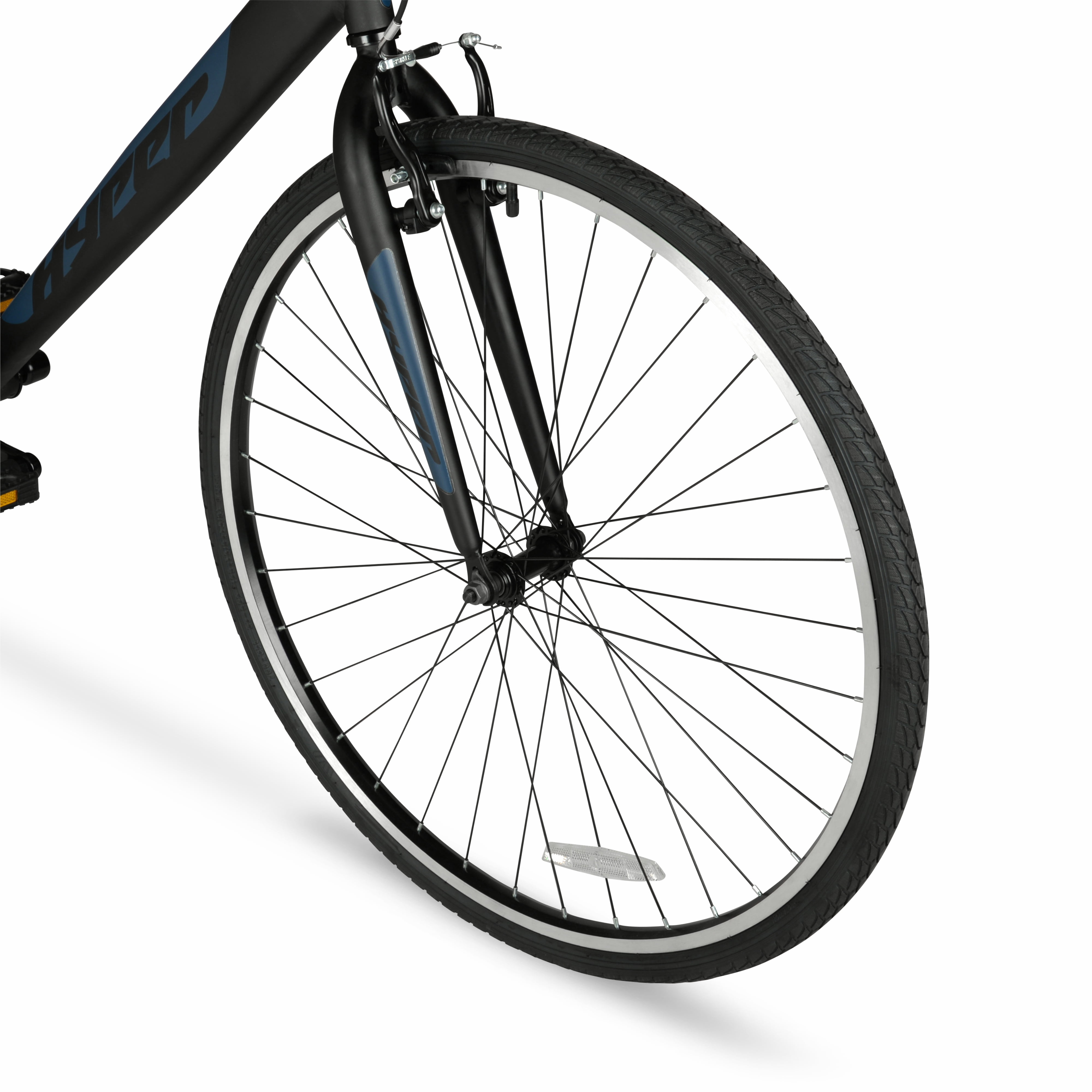 Get ready to amp up your riding experience with the adrenaline-pumping 700c Hyper Spin Fit Men’s Hybrid Bike. This bike is the ultimate fusion of mountain bike versatility and speed-hungry road bike performance, allowing you to conquer any terrain with effortless ease. Crafted with a lightweight yet sturdy aluminum frame, this hybrid bike is built to withstand the toughest challenges and deliver a smooth, responsive ride. The Shimano drive train delivers unbeatable power and precision, offering a 21-speed shifter set and rear derailleur for seamless gear transitions and maximum control over your ride. No matter where your adventure takes you, the low-profile, high-performance tires ensure optimal traction and stability, guaranteeing a safe and exhilarating ride every time. Whether you’re tackling steep hills, zipping through urban streets, or cruising along scenic trails, this hybrid bike effortlessly adapts to your every whim. When it comes to stopping on a dime, you can rely on the front and rear caliper brakes to provide the ultimate stopping power. Strap on your helmet, tighten your grip on the handlebars, and get ready to unleash your inner daredevil. The road is calling, and it’s time to answer with a roar!