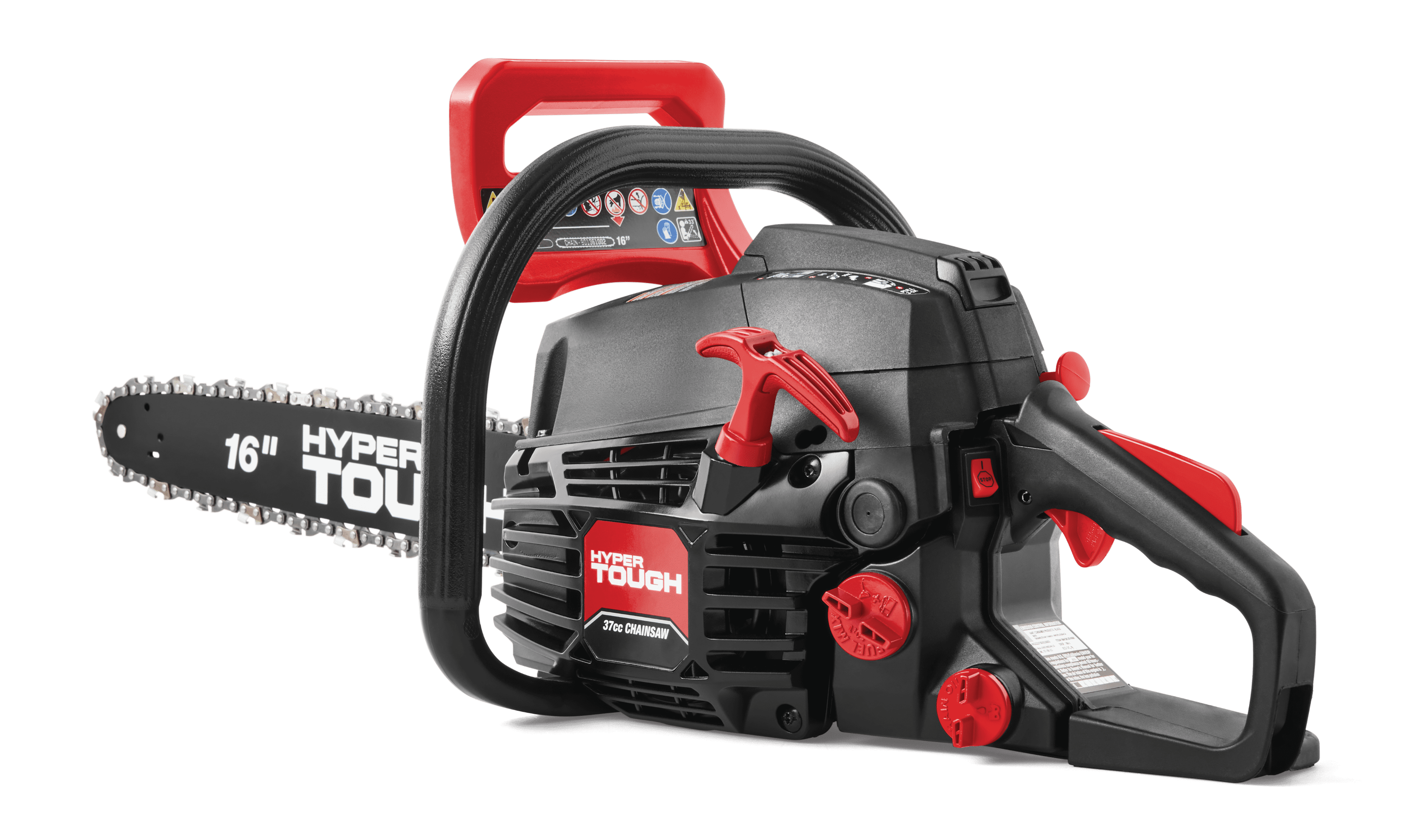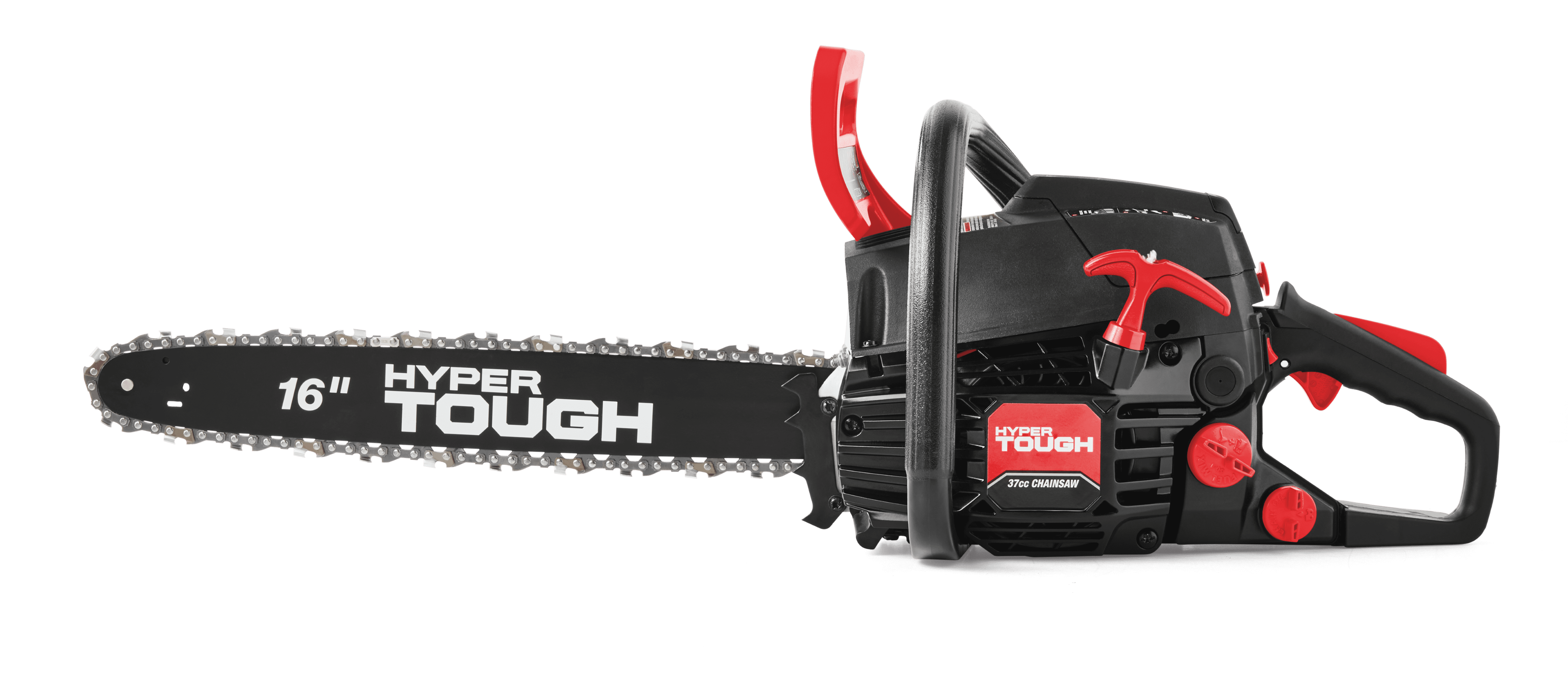 Cut with ease using this 16-inch 2-cycle chainsaw. Its 38cc engine provides powerful performance for quick and efficient work. The automatic oiler helps prolong the lifespan of the bar and chain. The chainsaw comes fully assembled for immediate use and is lightweight with an anti-vibe system for added user comfort. Safety features include a chain brake and tip guard, along with side access chain tensioning for easy adjustments. The package includes a 16-inch fully assembled chainsaw, 2-cycle engine lubricant, deluxe carry case, combination wrench, scabbard, and operator manual.