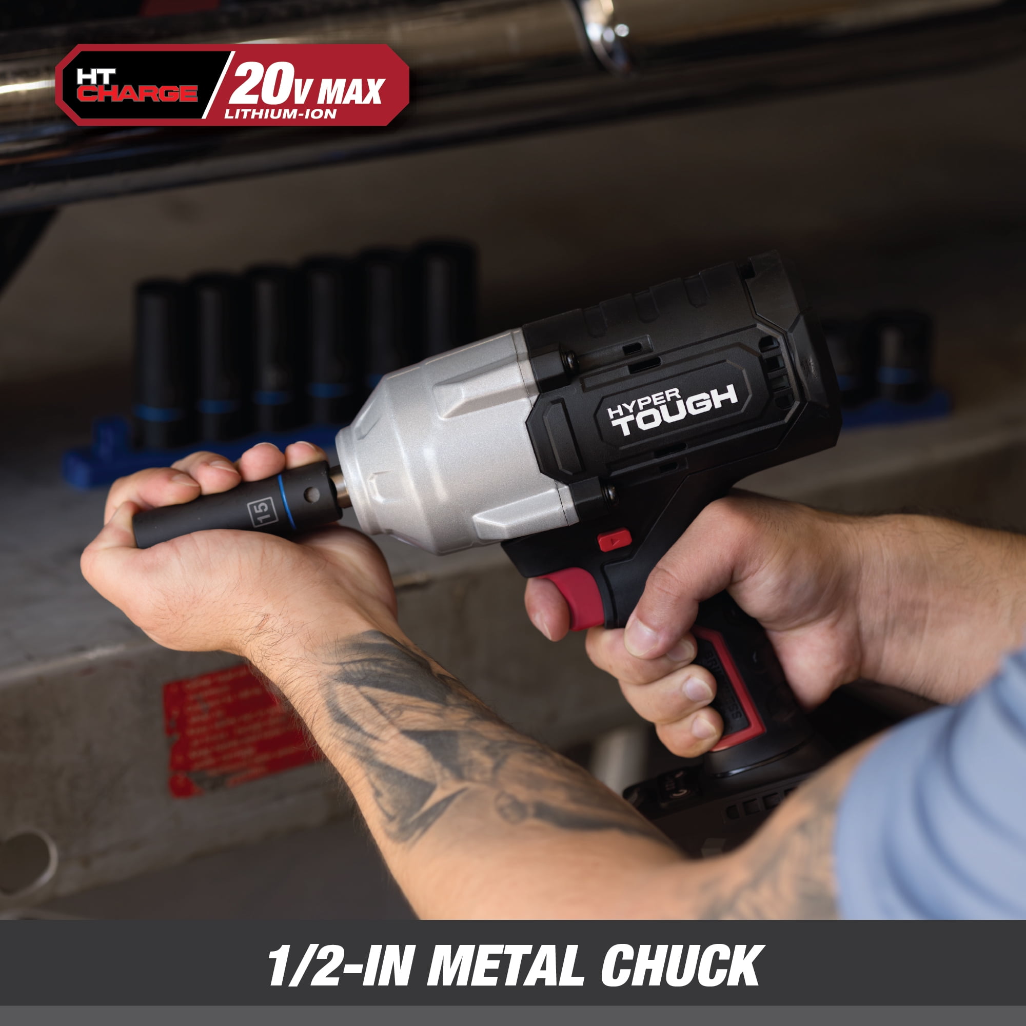 The Hyper Tough 20V Max Brushless High-Torque Cordless Impact Wrench is built for heavy-duty jobs, delivering up to 900 ft-lbs of breakaway torque and 826 ft-lbs of max torque. Equipped with a 1/2-inch chuck and 3-speed control, it offers versatility for various tasks. The built-in LED work light improves visibility in dark spaces, while the belt clip adds convenience during use. Weighing 7.05 lbs, this powerful tool includes a 4.0Ah lithium-ion battery and charger, ensuring long-lasting performance for demanding projects. Ideal for professionals and DIY enthusiasts alike.