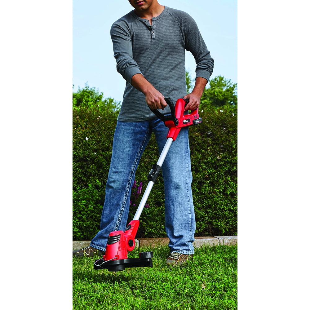Hyper Tough 20V MAX Cordless 12″ String Trimmer: Wheel for easy edging Telescoping shaft 0.065″ line diameter Rated voltage: 20V MAX Line diameter: 0.065″ Cutting width: 12″ Line length: 1×16.4′ Weight: 5.2 lbs Trimmer guard to protect flowers and other plants Includes: 20V max 12″ string trimmer, 20V max 2.0 Ah Lithium-ion battery, 20V max battery charger, spool Model# HT19-401-003-06