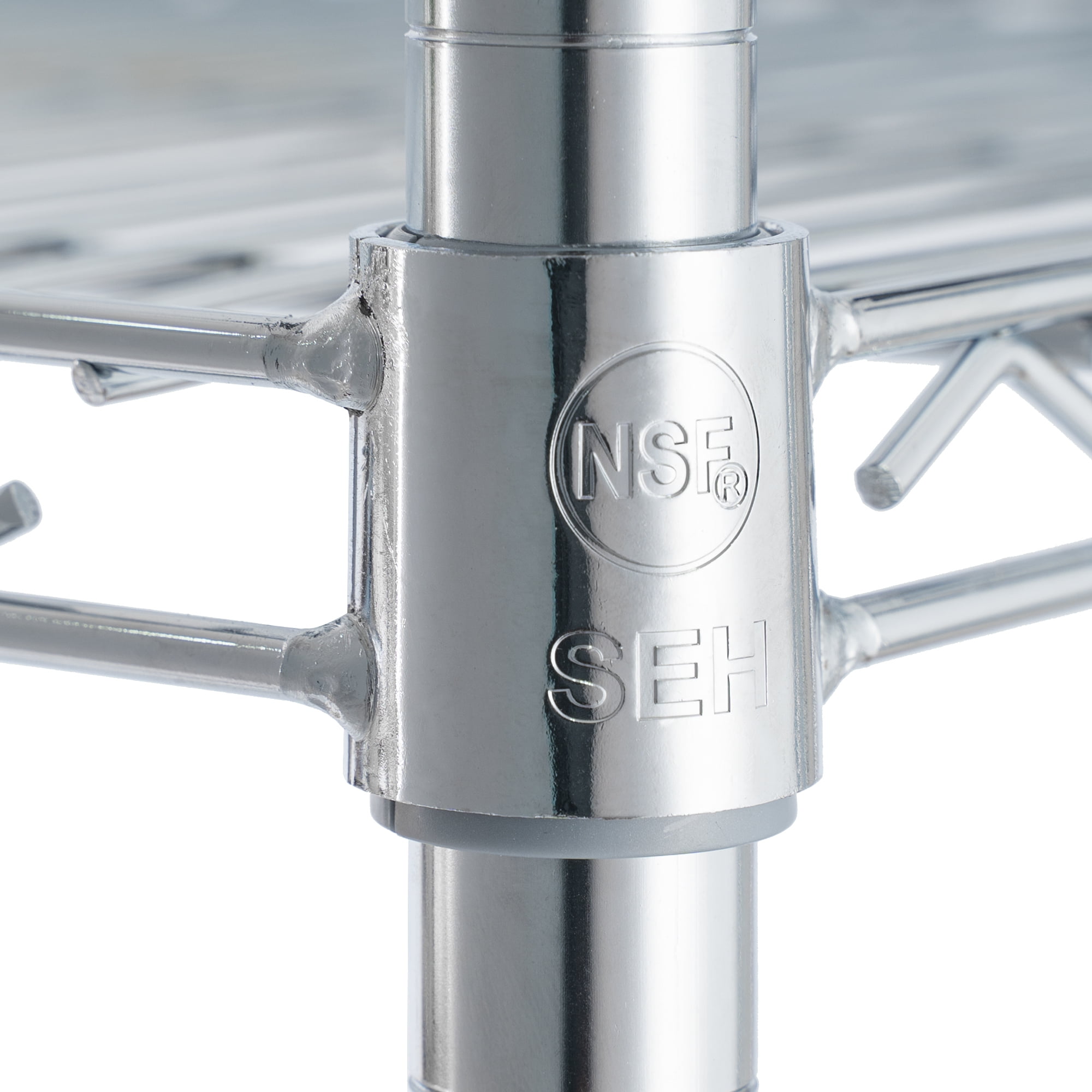 Heavy-duty, steel, wire, freestanding storage shelf unit makes excellent storage solution for home or business kitchen, laundry room, garage, or office Features 5 stable, spacious shelves that adjust in 1″ increments Ideal for storing and organizing kitchenware, tools, and laundry or office supplies Frame and wire shelves are constructed of durable steel for years of reliable use, and the adjustable, plastic feet levelers help with uneven floors Total unit capacity: 3,000 lbs evenly distributed Easy assembly with no tools required, please refer to instruction manual Materials: Steel, polypropylene Dimensions: 16″D x 48″W x 72″H Weight: 56 lbs NSF certified for dry storage application For customer service needs, our free hotline number is 833-908-2024 available 7:00 a.m.–9:00 p.m. PST, Sunday–Saturday 5-YEAR LIMITED WARRANTY: For 5 years from the date of purchase, this product is warranted for the original purchaser to be free from defects in materials and workmanship through normal use. To obtain this service, please return this item to the place of purchase with valid proof of purchase and the defective product will be replaced at no charge. This guarantee gives you specific legal rights, and you may have other rights that vary from state to state. For customer service, please call 833-908-2024.