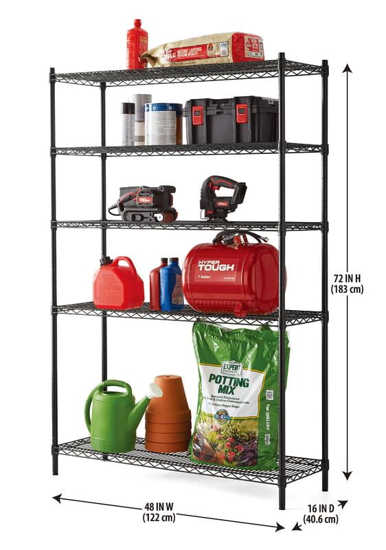 Hyper Tough Black Wire Shelf 5-Tier Heavy Duty 72″H x 48″W x 16″D, 3000lb Total Capacity