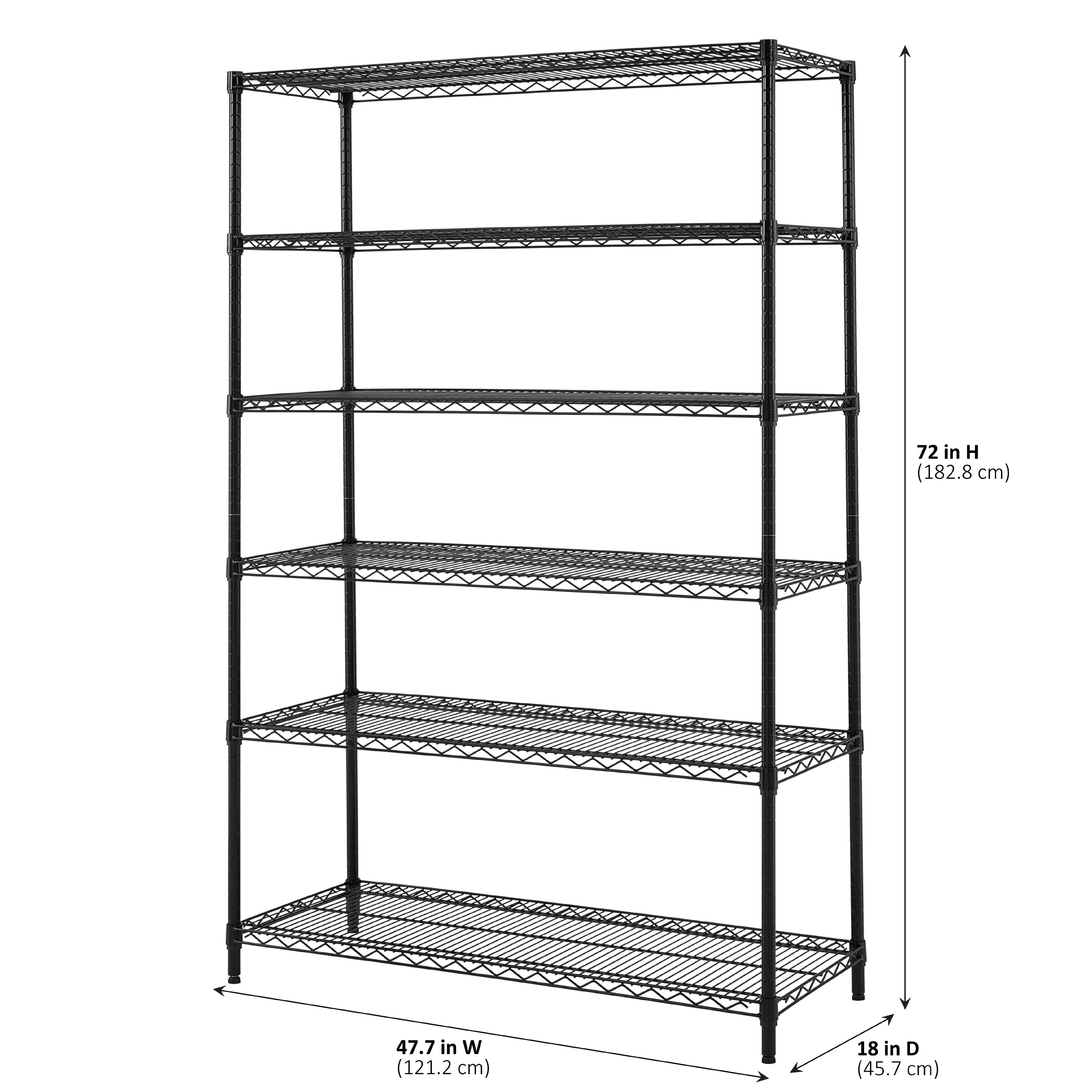 Hyper Tough Black Wire Shelf 6-Tier 72″H x 47.7″W x 18″D, 3600lbs Total Capacity