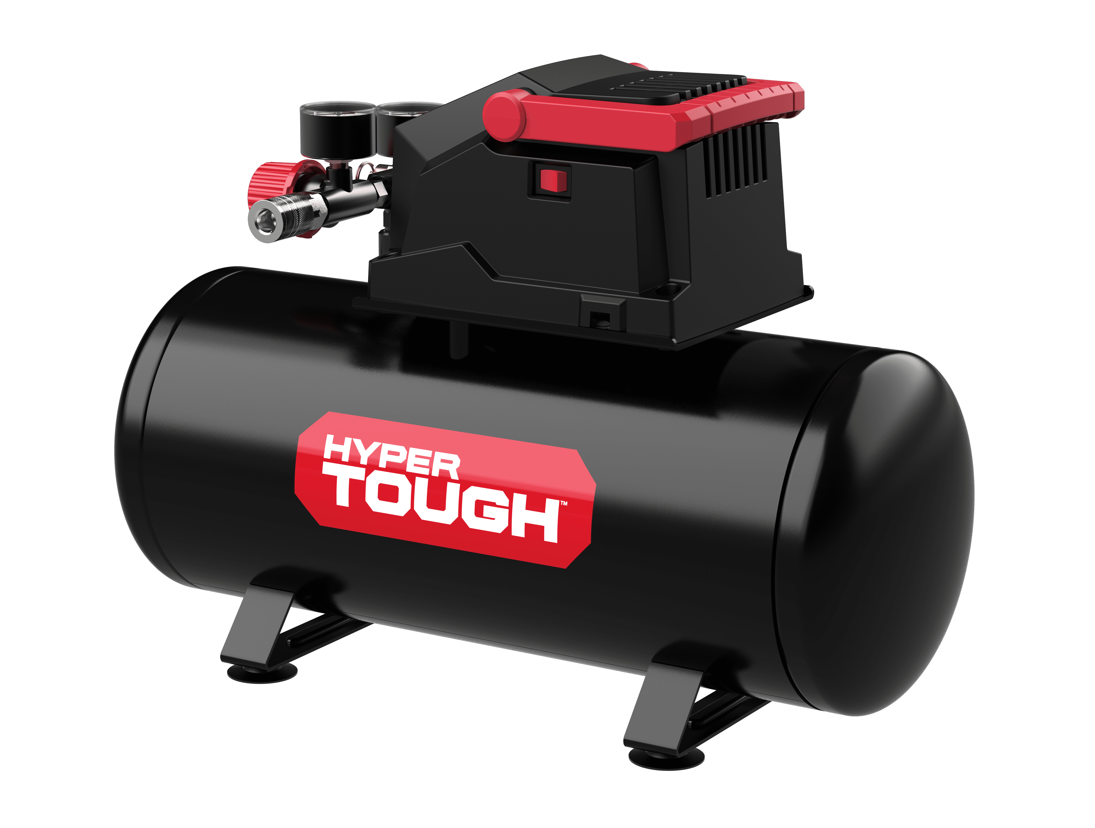 Hyper Tough Ht Portable Black 3 Gallon Air Compressor Compact design for easy portability and storage 3-gallon tank capacity for efficient air supply Ideal for inflating tires, sports equipment, and more Features a maximum pressure of 100 PSI Lightweight construction for easy handling Equipped with a built-in pressure gauge for accurate readings