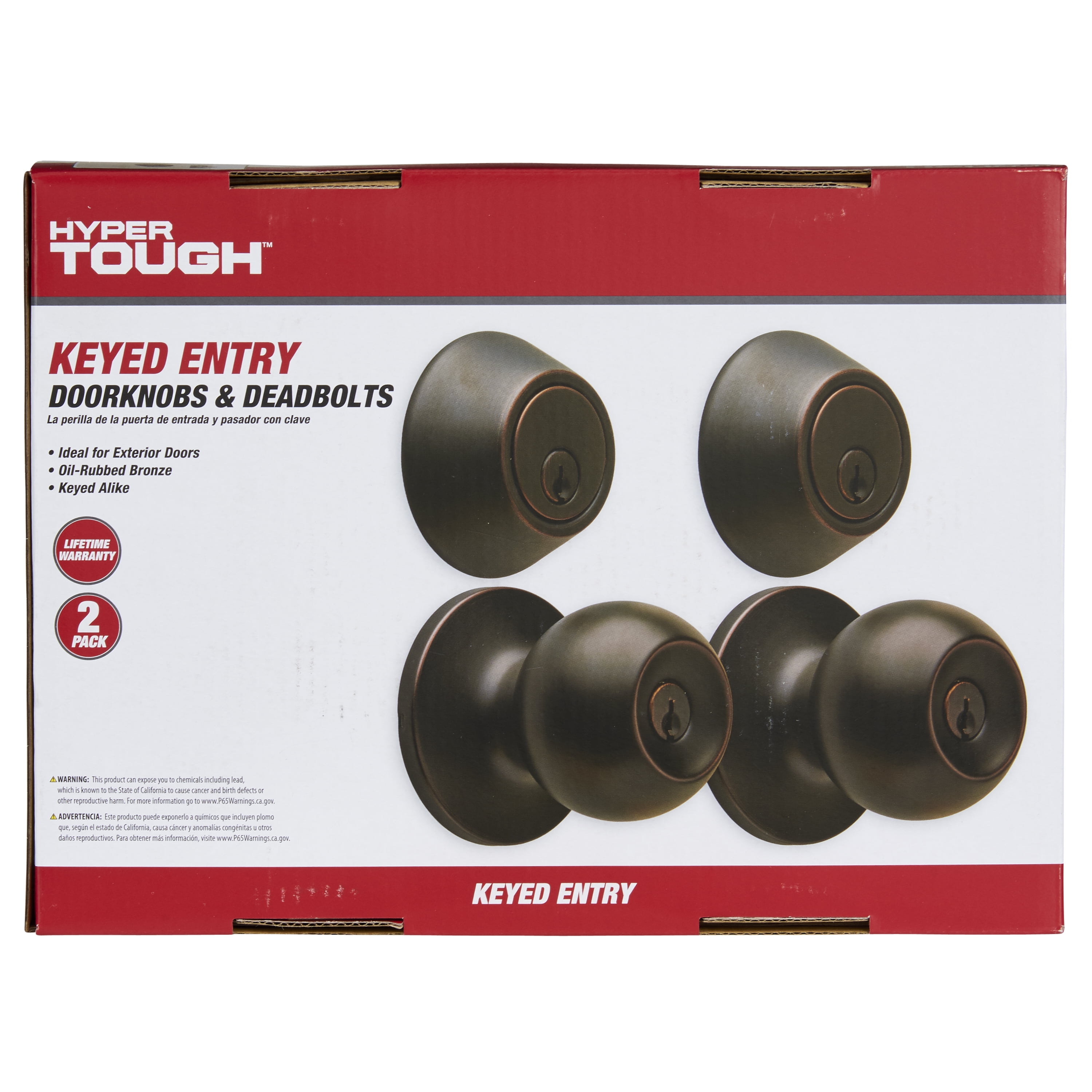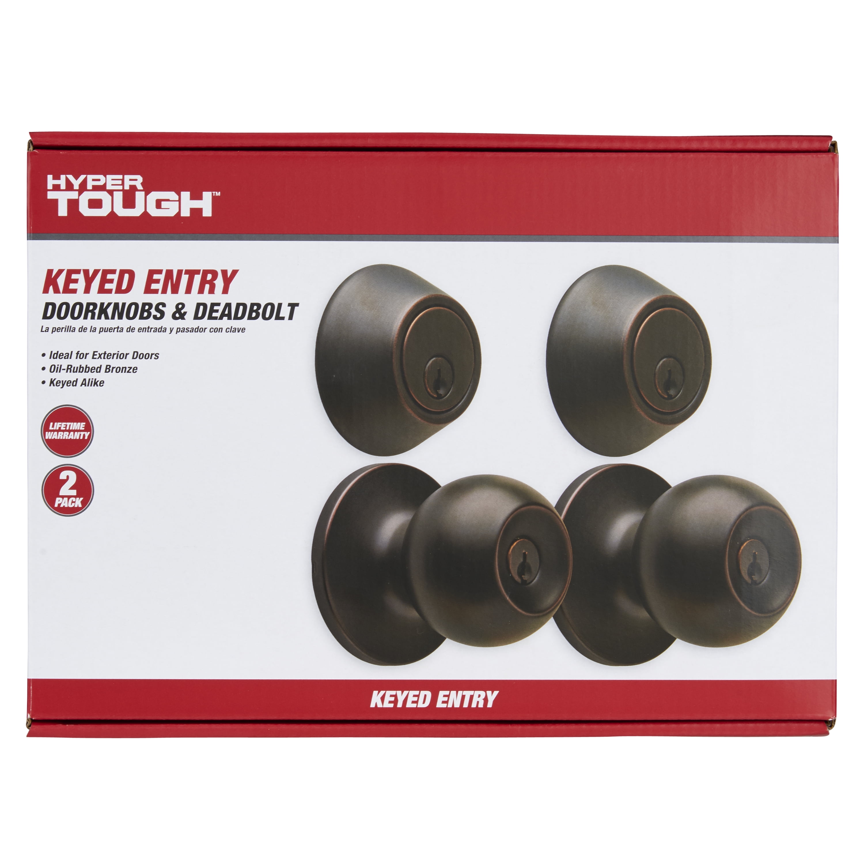 Hyper Tough Keyed Entry Ball Doorknob and Deadbolt Combo in Oil-Rubbed Bronze Finish, Twin Pack