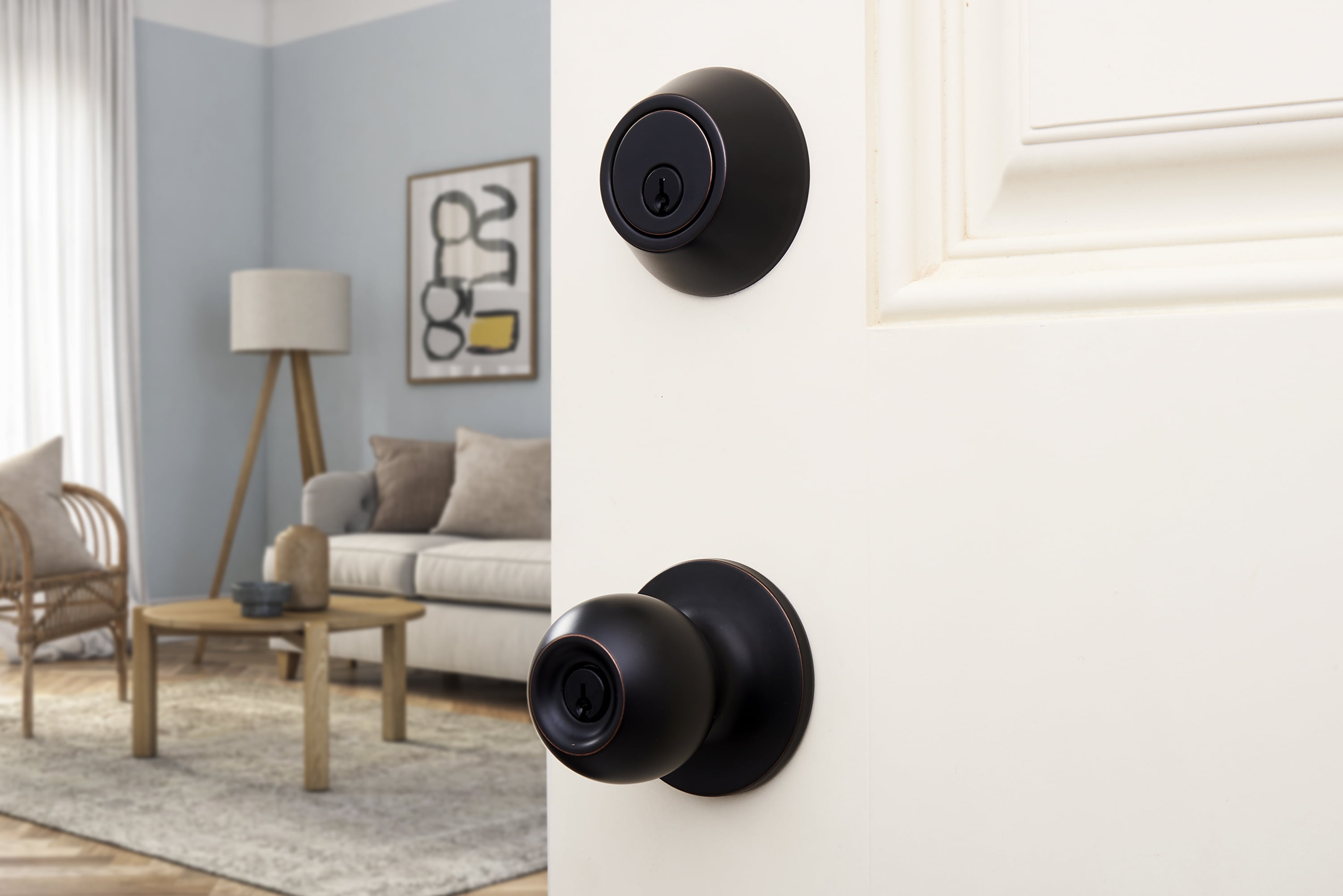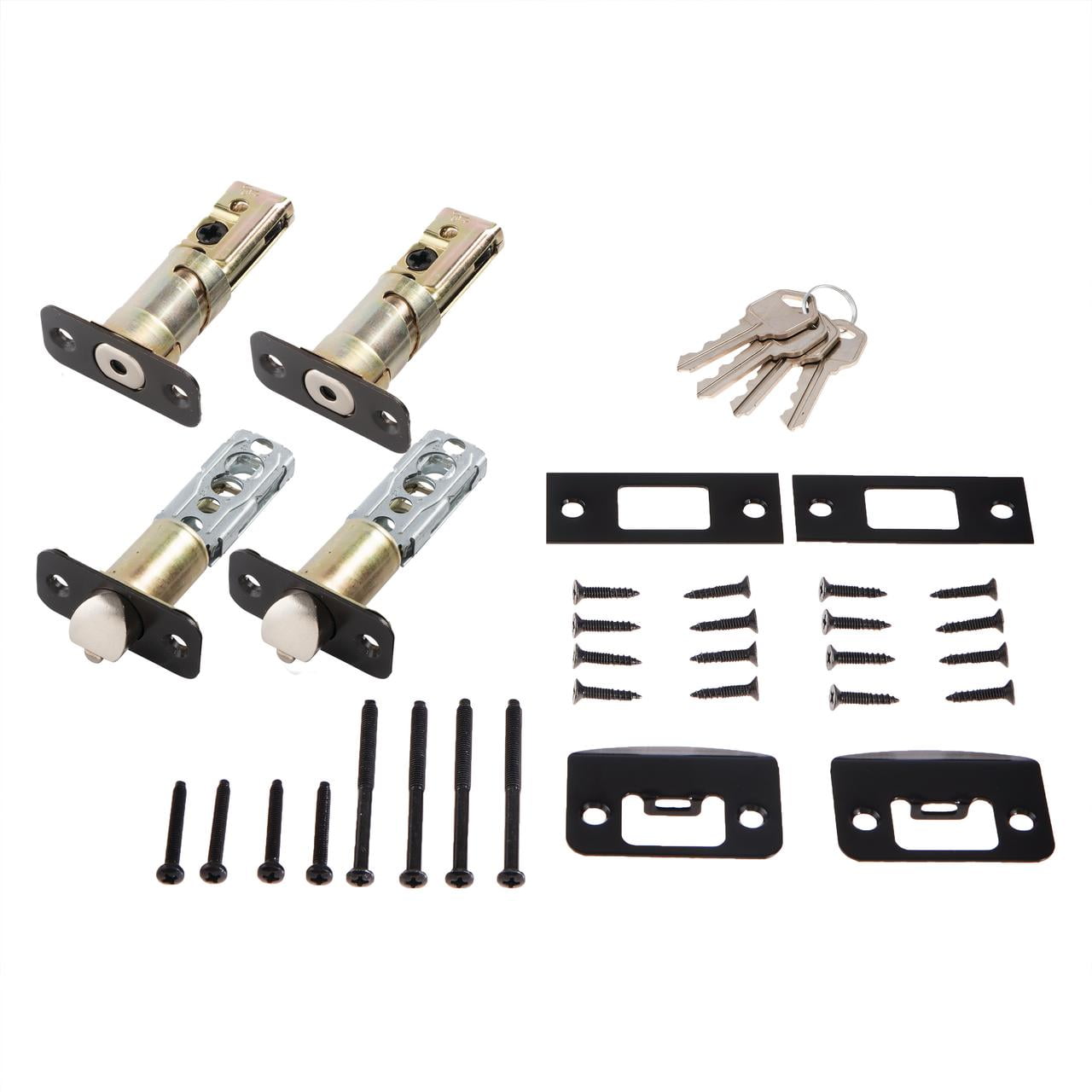 The combo pack includes two (2) ball doorknobs and two (2) deadbolts Doorknobs and deadbolts keyed alike Adjustable latch for 2-3/8″ or 2-3/4″ backsets Fits standard doors 1-3/8″ to 1-3/4″ thick Reversible, install on left or right-handed doors Keyed alike ANSI Grade 3 Standard Ideal for installation on exterior doors Easy to install, requires only a Philip screwdriver Reversible, install on left or right-handed doors Keyed alike ANSI Grade 3 Standard Ideal for installation on exterior doors Easy to install, requires only a Philip screwdriver Keyed alike ANSI Grade 3 Standard Ideal for installation on exterior doors Easy to install, requires only a Philip screwdriver ANSI Grade 3 Standard Ideal for installation on exterior doors Easy to install, requires only a Philip screwdriver Ideal for installation on exterior doors Easy to install, requires only a Philips screwdriver