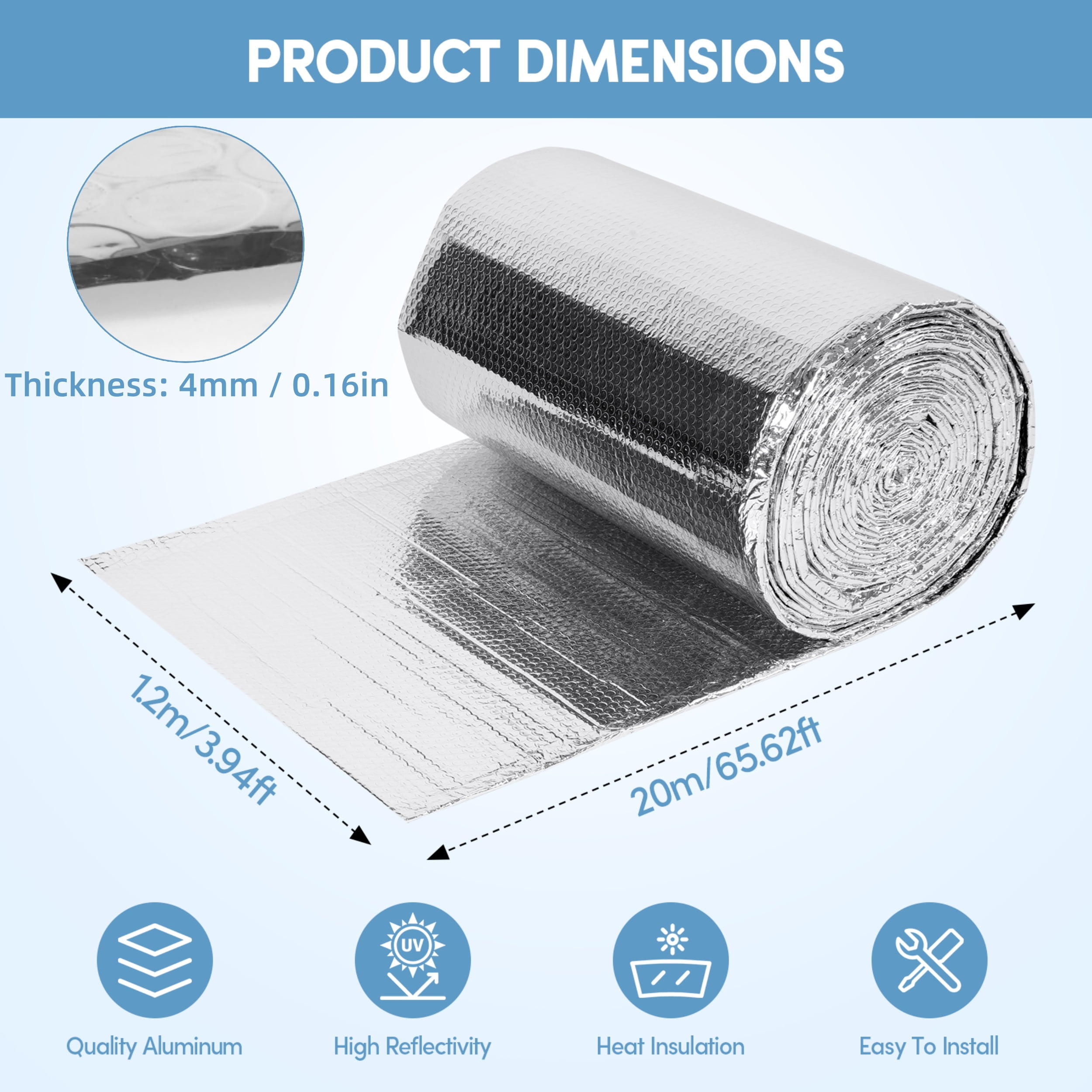 IAJXWI 65.6 x 3.94 ft Bubble Reflective Insulation Roll, Radiant Barrier Cover (258sqft) with Aluminum Foil for Attic, Roof, RV, Car