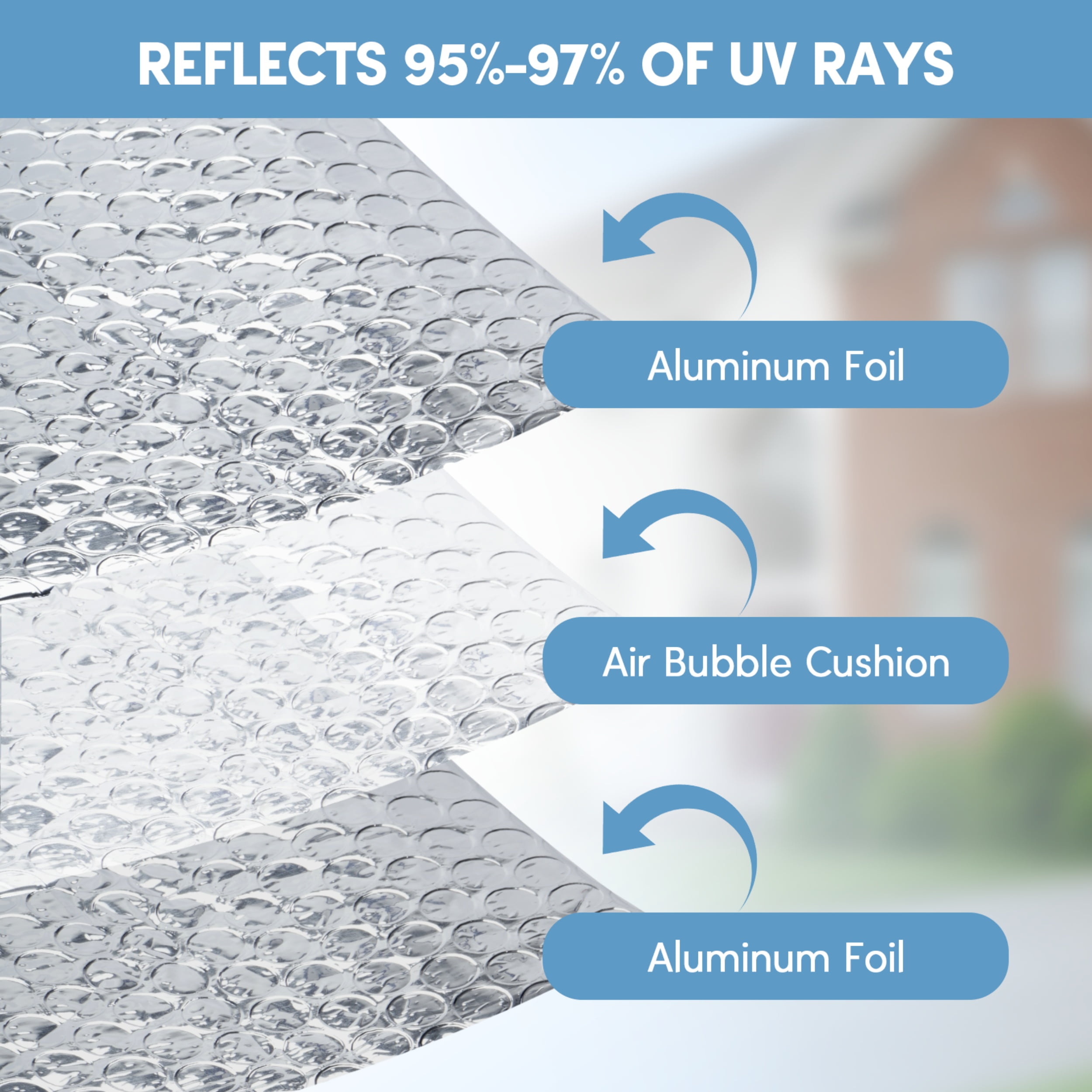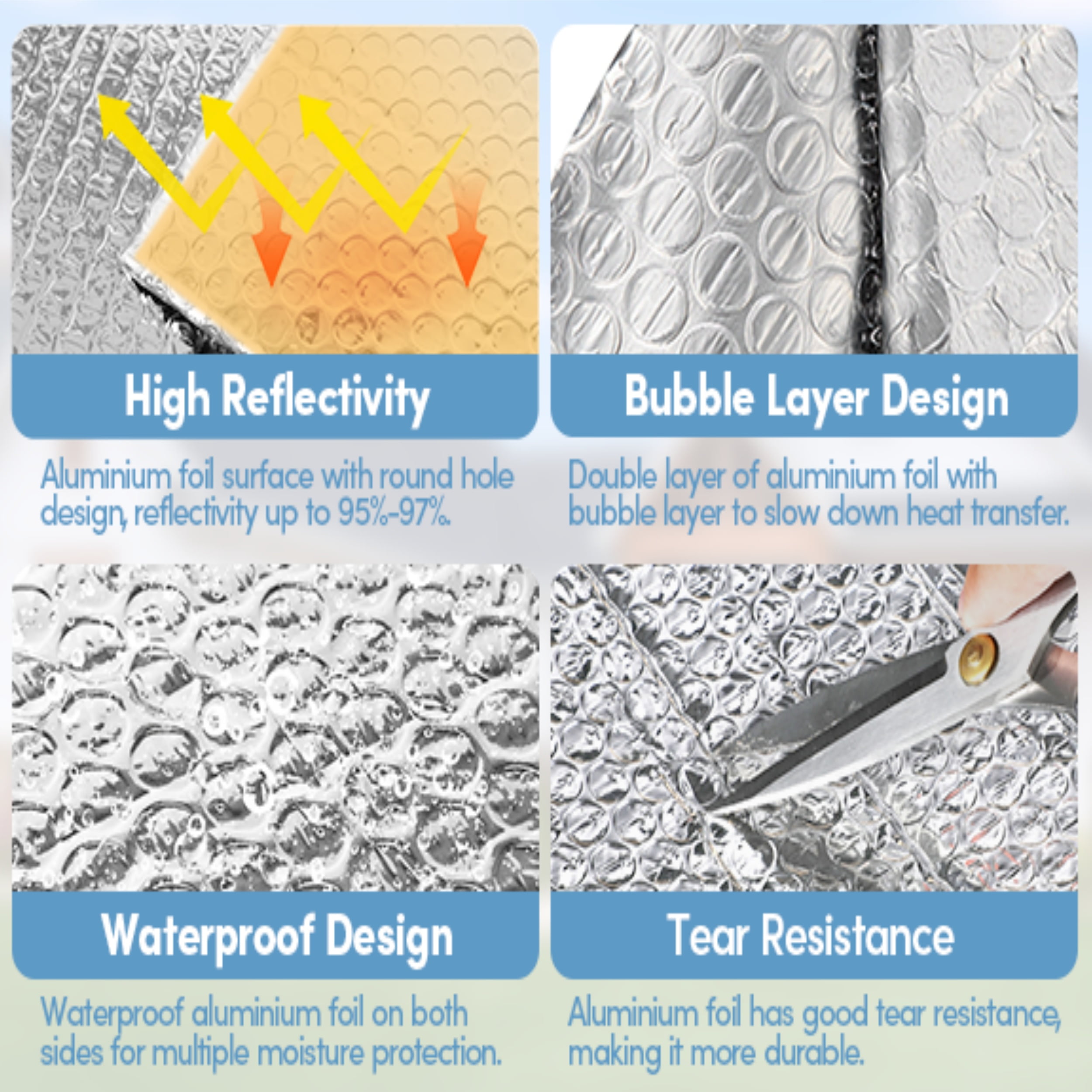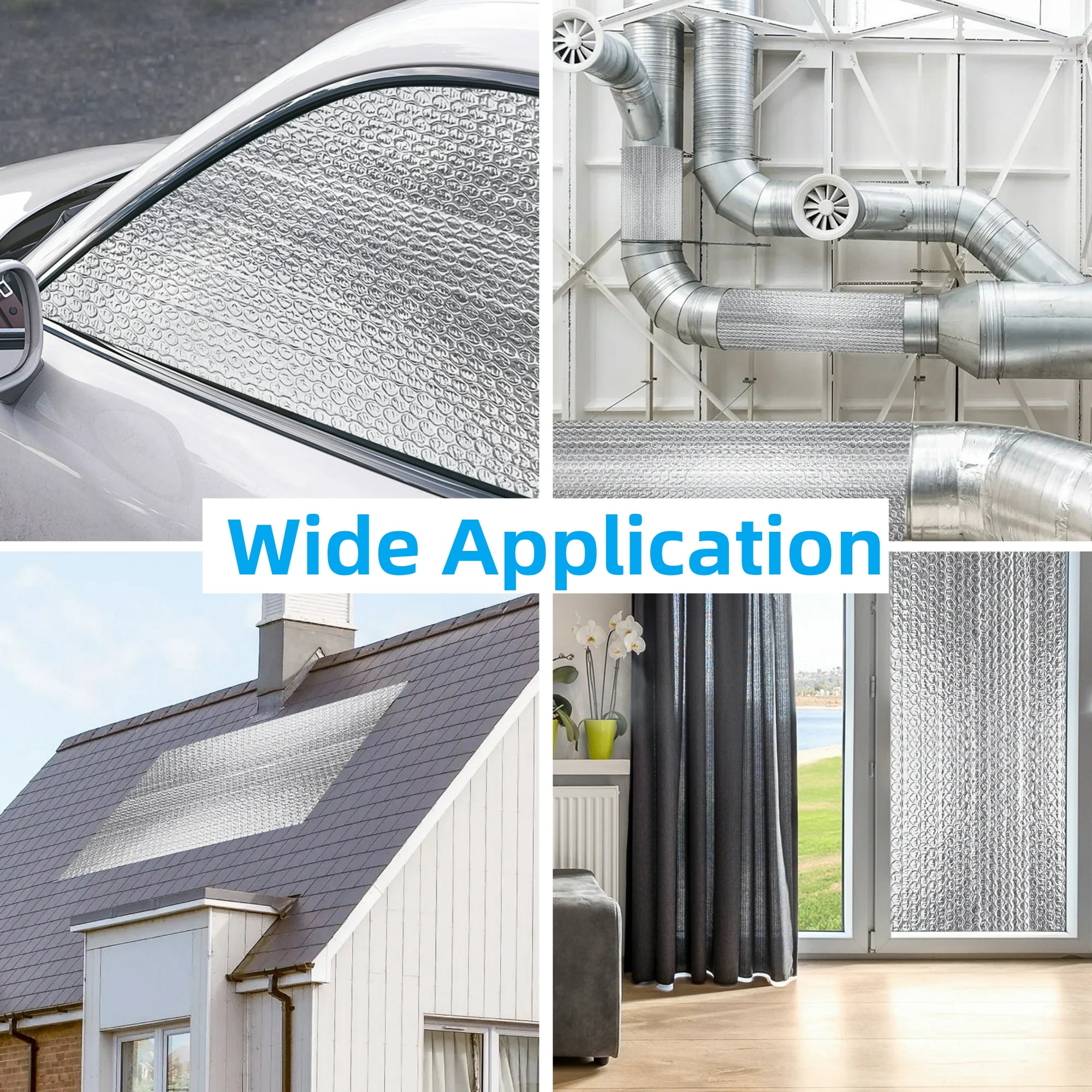 【Large Size & Wide Coverage】The size of the double – reflective insulation roll is 65.5 feet x 48 inches, with a super – large coverage area of 258 square feet. The aluminum – foil insulation can meet the needs of large – scale insulation and thermal – insulation at once, providing comprehensive protection for roofs, attics, and RVs. 【3 – Layer Design】The double – sided insulation roll is designed with two layers of reflective aluminum film and a polyethylene bubble pad. These layers are durable, resist breakage and deformation, offer great heat and sound insulation, and are reusable for a long time. 【Year – Round Thermal Comfort Shield】 The IAJXWI insulation material provides year – round comfort for your space with its excellent reflective performance, making it an ideal choice for you all year round. In summer, the thermal barrier reflects heat to lower indoor temperature. In winter, the insulation cover stops heat loss, keeping the indoors warm for year – round comfort. 【Excellent Energy – Saving Performance】The bubble insulation roll boasts excellent sealing performance. Its surface is designed with round holes to enhance reflectivity, effectively preventing heat loss. In winter, it keeps the cold out, while in summer, it blocks heat from entering. This significantly reduces the stress on heating and cooling systems, improving the efficiency of HVAC systems. As a result, it helps lower energy consumption and energy – usage costs, offering you a cost – effective insulation experience. 【Easy To Cut & Install】Reflective insulation rolls can be easily cut to your desired size as needed. They are easy to install and use. Just use a stapler or double – sided tape to easily install them in the garage, on windows, or other required places.