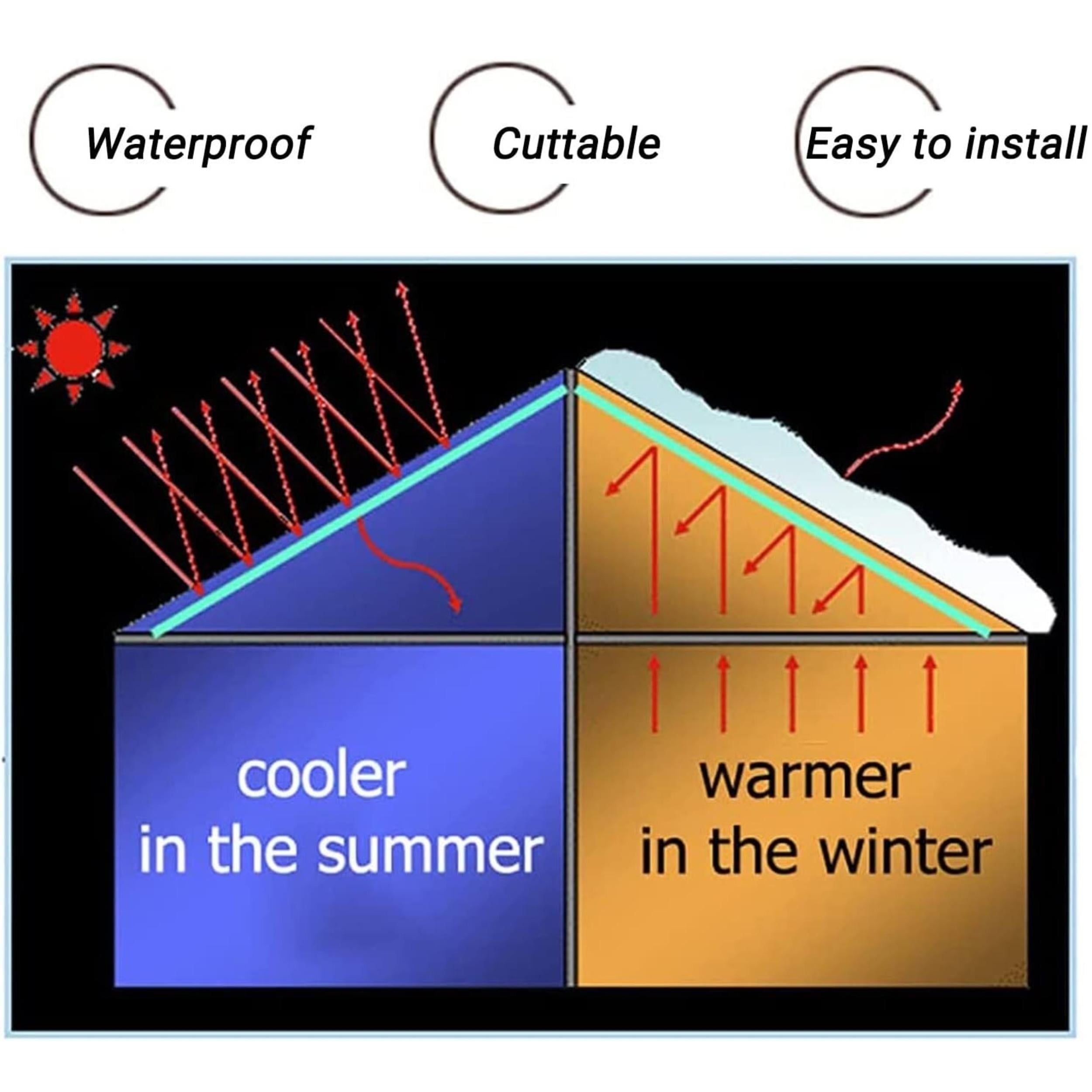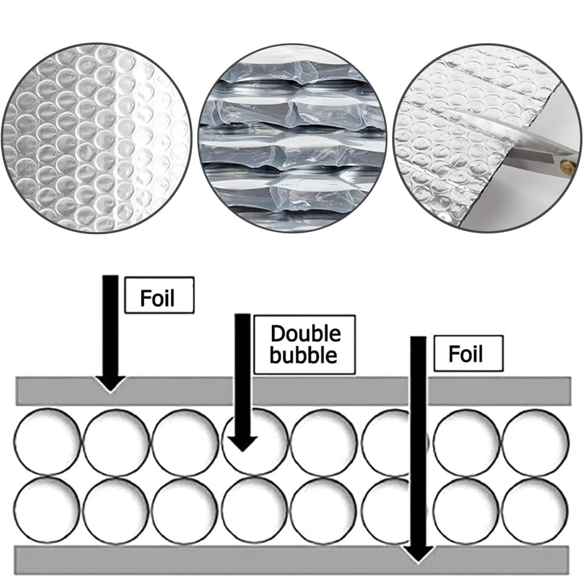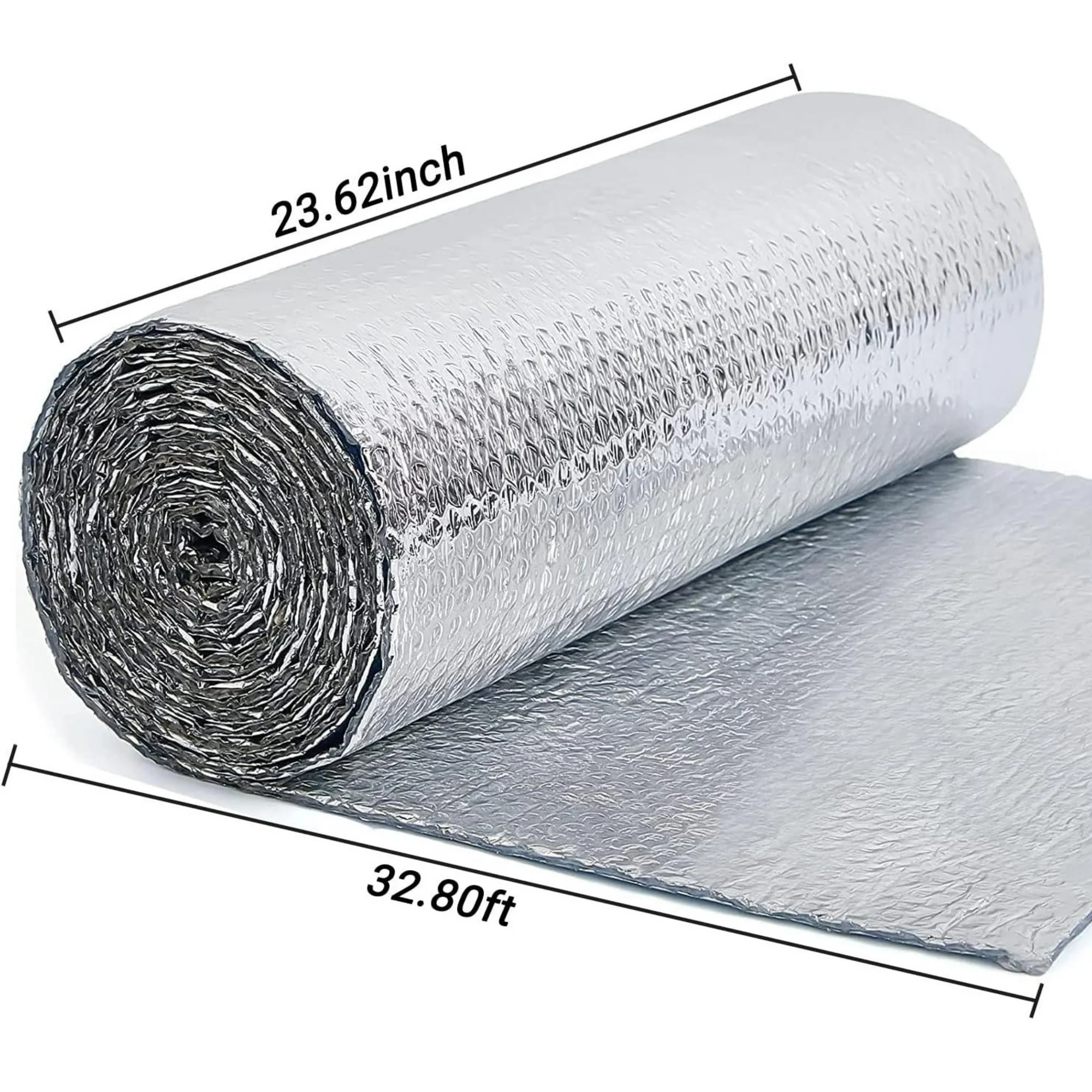 Material – This Reflective Foil Insulation is made of double-sided aluminized film with a double layer of polyethylene bubbles in the middle. Lightweight and durable insulation material, the perfect reflective bubble wrap insulation thermal barrier. Size – The size of this insulation roll is 0.6x10m(23.6inx32.8ft) and the thickness is 5mm(3/16inch). Easy to cut with hobby knife or scissors. Easy to install and maintenance free, just fix with nails or tape staples. Thermal Insulation – 2 inner layers of insulation bubbles resist conductive heat flow, saving energy by reducing stress on heating and cooling systems, keeping your home warmer in the winter and cooler in the summer. Waterproof – Not affected by moisture or humidity. It can be used indoors/outdoors. The reflective insulation roll has a good insulating performance, which can reflect light, ultraviolet rays and heat efficiently. Widely used – This reflective bubble insulation can be used for garage door panels, window shading insulation, camper van insulation, attic ceiling insulation, cabin conversion, pet house, etc.