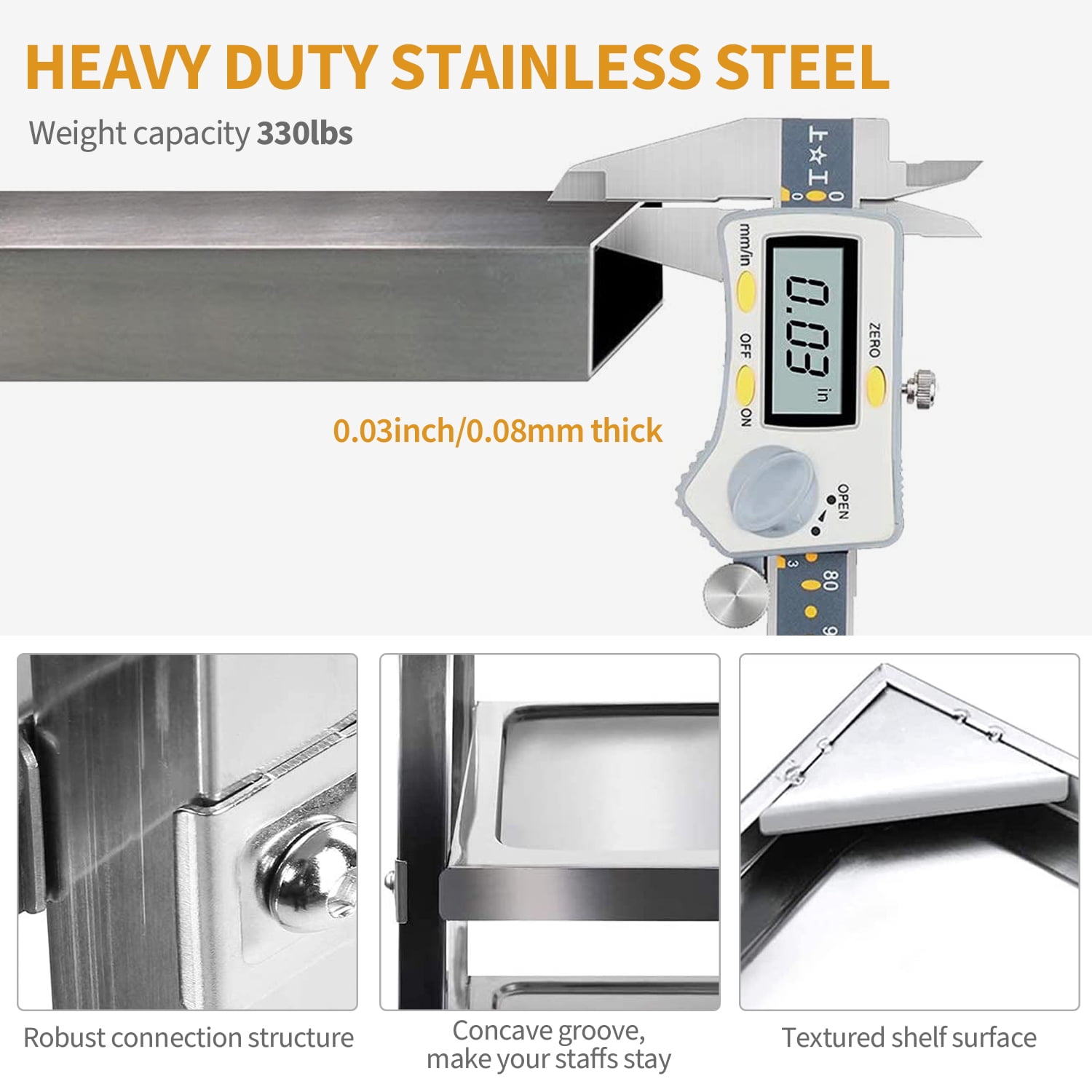 | Model | 3-Tier Stainless Steel Cart |