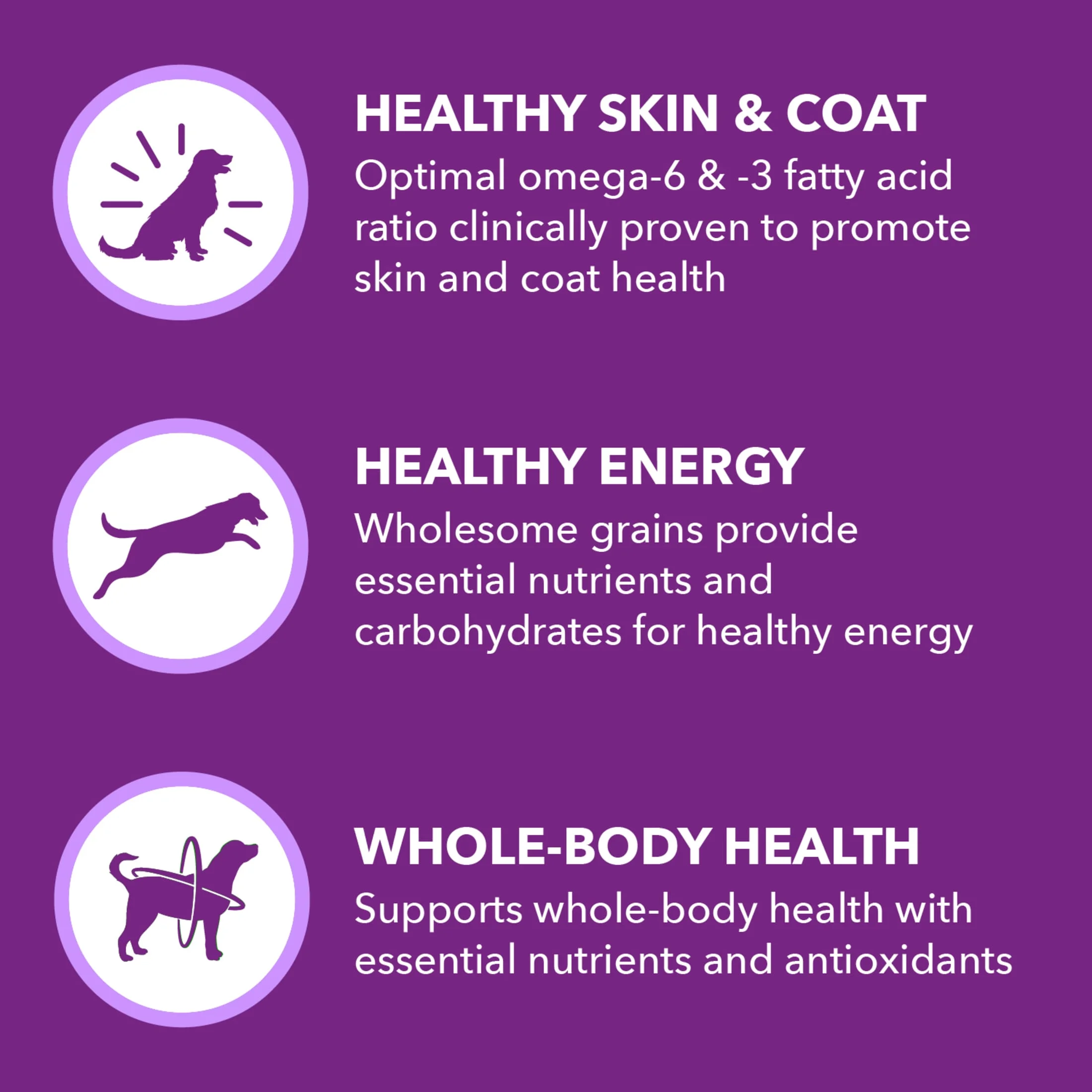 As pet parents, we want to feel confident that we are doing the best for our pets. IAMS Advanced Health Skin & Coat Dry Dog Food is formulated to support your dog’s whole-body health. Our IAMS Smartcoat Blend with Omega fatty acids, zinc, and vitamin E promotes skin health and coat luster. Your dog will enjoy a kibble that’s made with real chicken and salmon to maintain strong, healthy muscles. Omega-3 fatty acids from fish oil and salmon support healthy skin and a soft, vibrant coat. This premium-tailored recipe includes whole grains that provide your dog with essential nutrients and carbohydrates so they have healthy energy all day. Our chicken-first recipe is formulated without fillers, artificial flavors, or preservatives, although trace amounts may be present due to potential cross-contact during manufacturing. With IAMS Advanced Health, feel confident your dog will always be at their best – today and every day.