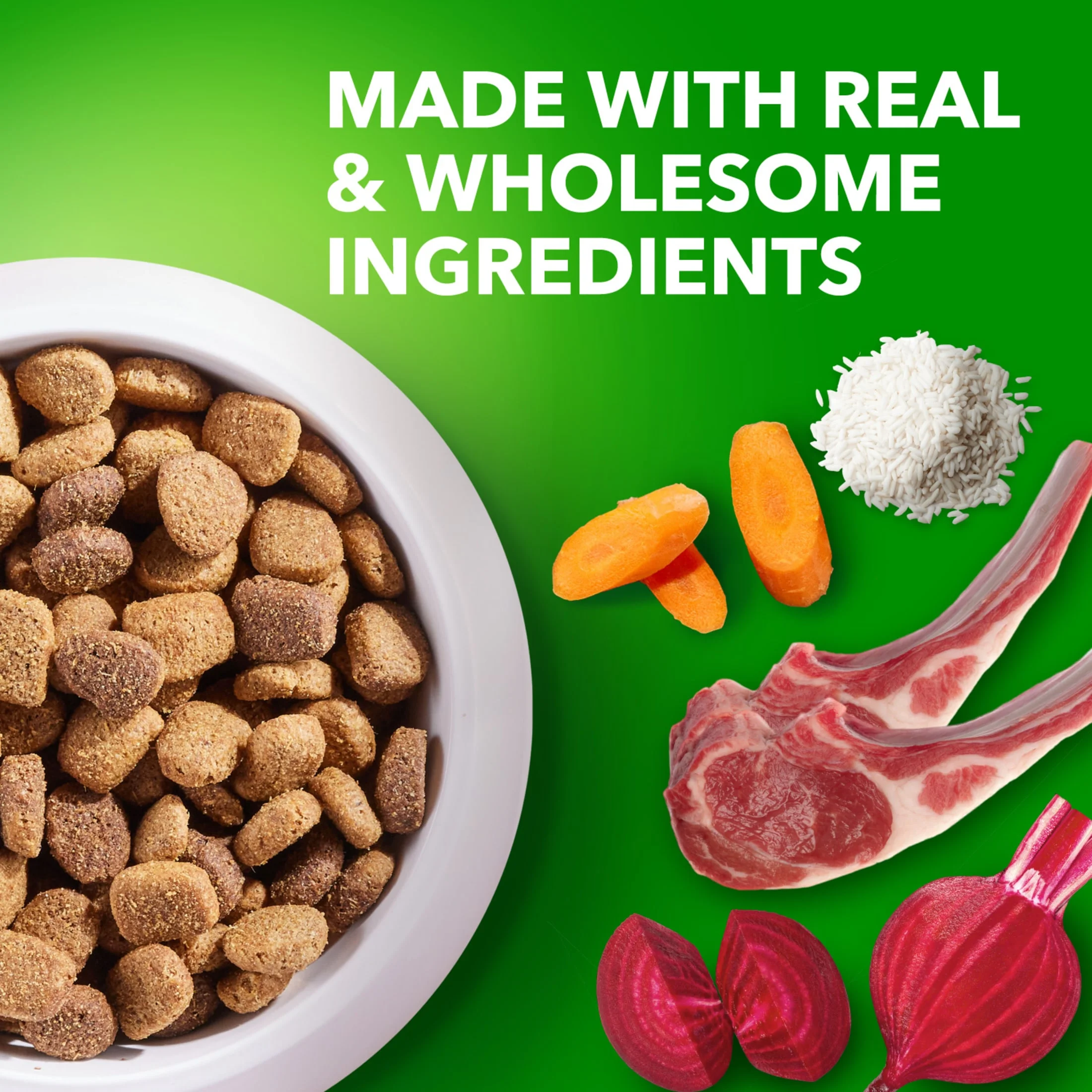 Iams Proactive Health Lamb And Rice Flavor for Large Breed Dry Dog Food, 40 lb Bag 100% complete & balanced adult dog food with 0% fillers Includes natural sources of glucosamine & chondroitin for strong bones and joints 7 Essential Nutrients to support a Healthy Heart Supports strong, firm muscles with protein sourced from chicken and egg Supports whole body health with essential nutrients & antioxidants