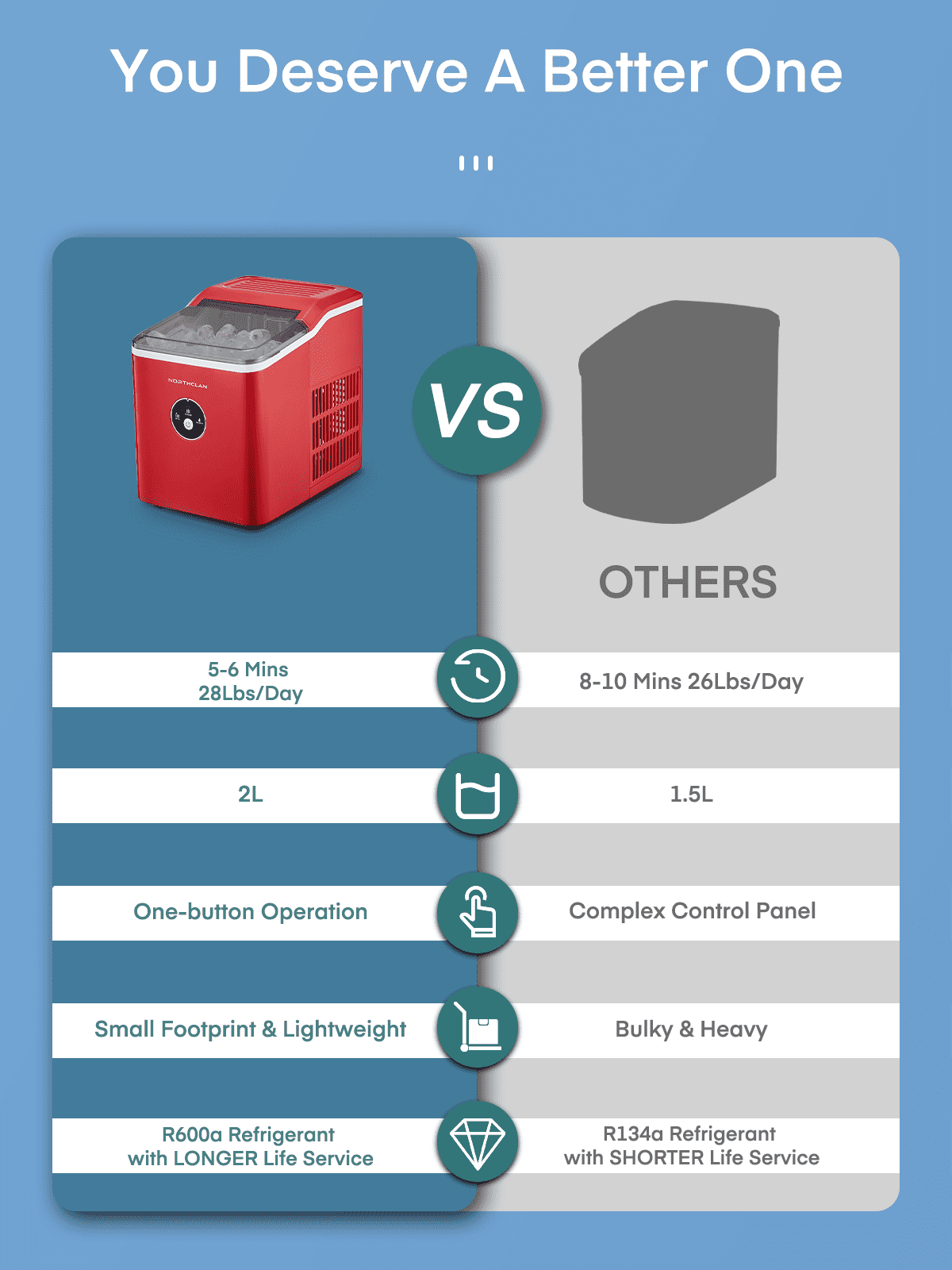Do you find yourself regularly running out of ice when you have guests over? Stocking up on extra bagged ice is a pain, and those bags will quickly fill up the freezing space you have and also regularly cost you about 100 bucks per month. Having to keep an eye on the amount of ice your freezing appliance makes is inconvenient. This brand new sleek countertop bullet ice maker churns out enough ice for parties and ice-loving families. Whether you?re drinking cocktails, sodas, soft drinks, or water, a NORTHCLAN ice maker is an important sidekick. Maximum_output: 30lbs.