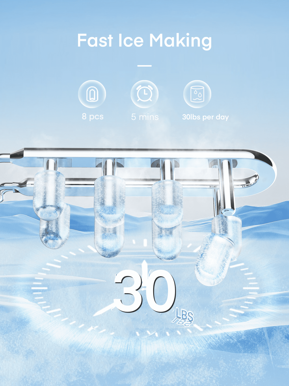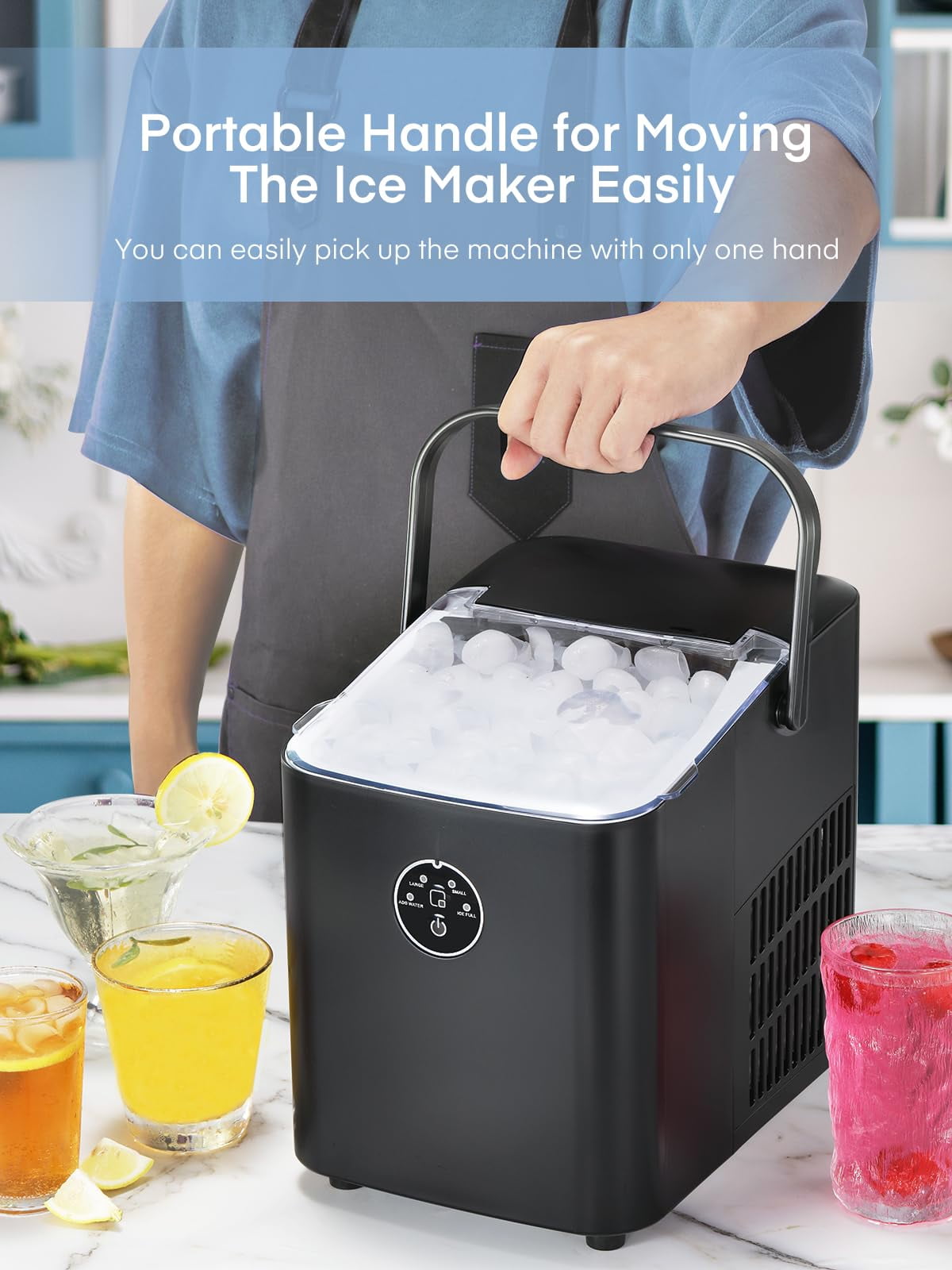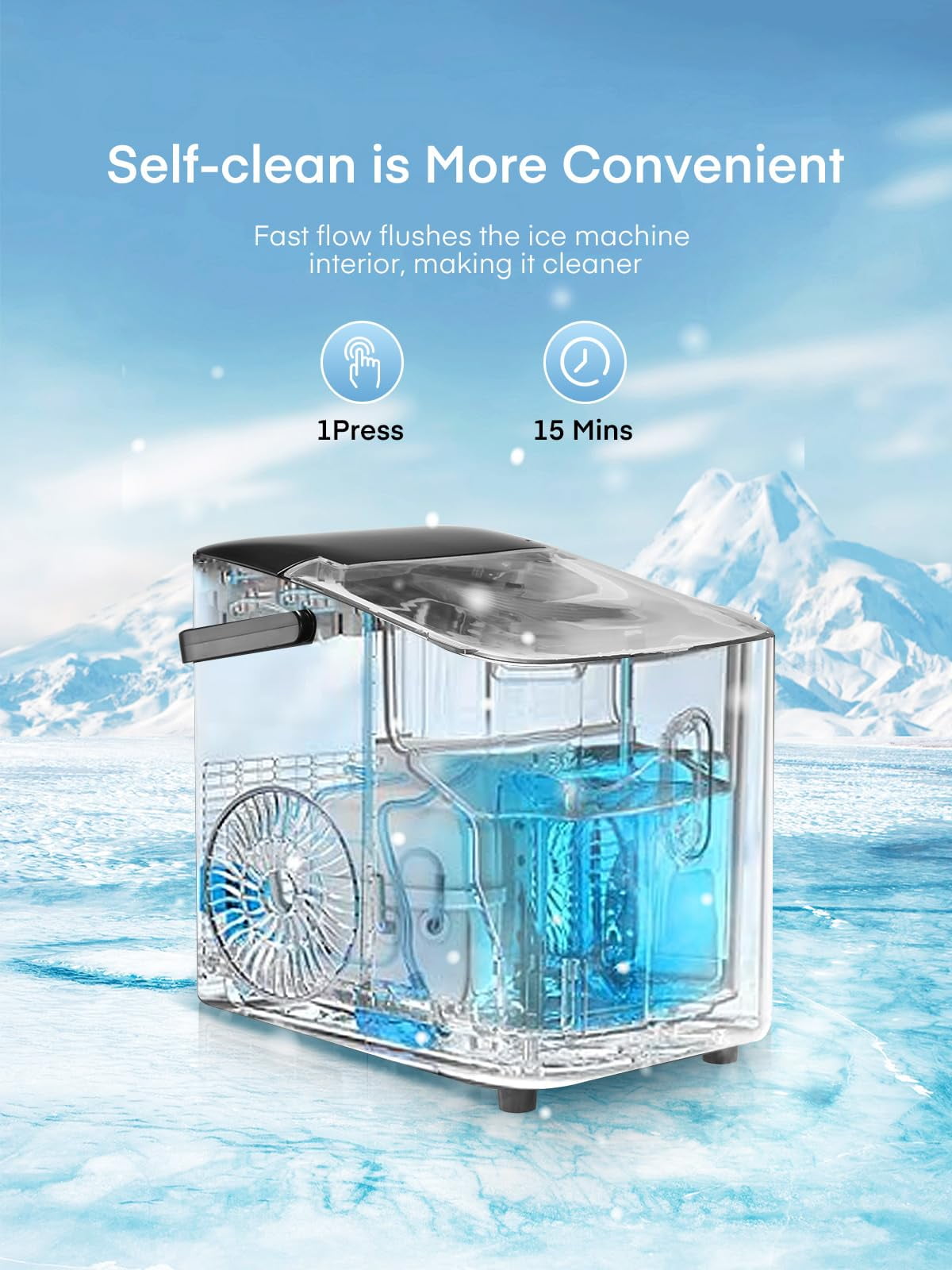 Ice Maker Machine Countertop with Handle, 30lbs in 24H, 2 Ice Sizes, Seflclean, Bullet Shaped Ice for Home Kitchen Office Bar, FOHERE