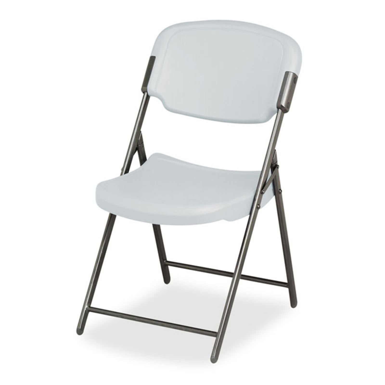 Iceberg folding chairs are ideal for indoor or outdoor use. Seat pan and back are contoured for ergonomic comfort and resist dents and scratches. Tough and extremely durable, yet lightweight and easy to transport and store. Chairs nest for simple, compact storage. Low maintenance and easily wipes clean. Seat pan and back are made with blow-molded high-density polyethylene. Heavy-gauge oval steel tubing construction provides extreme durability. Arms Included: No; Asynchronous Control: No; Back Color: Platinum; Back Height Adjustment: No; Back Height Maximum: 20.25″; Back Surface Material: Blow Molded High-Density Polyethylene; Back Surface Material Family: Plastic; Back Width Maximum: 18.75″; Base/Frame Color: Black; Base/Frame Material: Steel; Caster/Glide Details: Four Plastic Non-Marring Glides; Color Family: Gray; Dual-Action Tilt: No; Dual-Clutch Posture Control: No; Integral Lumbar Support: No; Knee Tilt: No; Multi-Task Control: No; Overall Depth Maximum: 21.5″; Overall Height Maximum: 35.5″; Overall Width Maximum: 18.75″; Pneumatic Seat Height Adjustment: No; Posture Lock: No; Recommended Application Area(s): Breakroom & Foodservice; Conference & Meeting; Seat Color: Platinum; Seat Depth Maximum: 21.5″; Seat Glide Mechanism: No; Seat Height Maximum: 15.25″; Seat Surface Material: Blow-Molded High-Density Polyethylene; Seat Surface Material Family: Plastic; Seat Width Maximum: 18.75″; Synchronized Knee Tilt: No; Tilt Tension/Tilt Lock: No; Variable Synchro-Tilt: No; Weight Capacity (text): Supports Up to 350 lb Compliance Standards: Meets or Exceeds ANSI/BIFMA Standards. Warranty: Manufacturer’s limited 15-year warranty. Post-Consumer Recycled Content Percent: 0%. Pre-Consumer Recycled Content Percent: 35%. Recycled Comments: Contains 35% total recycled content.