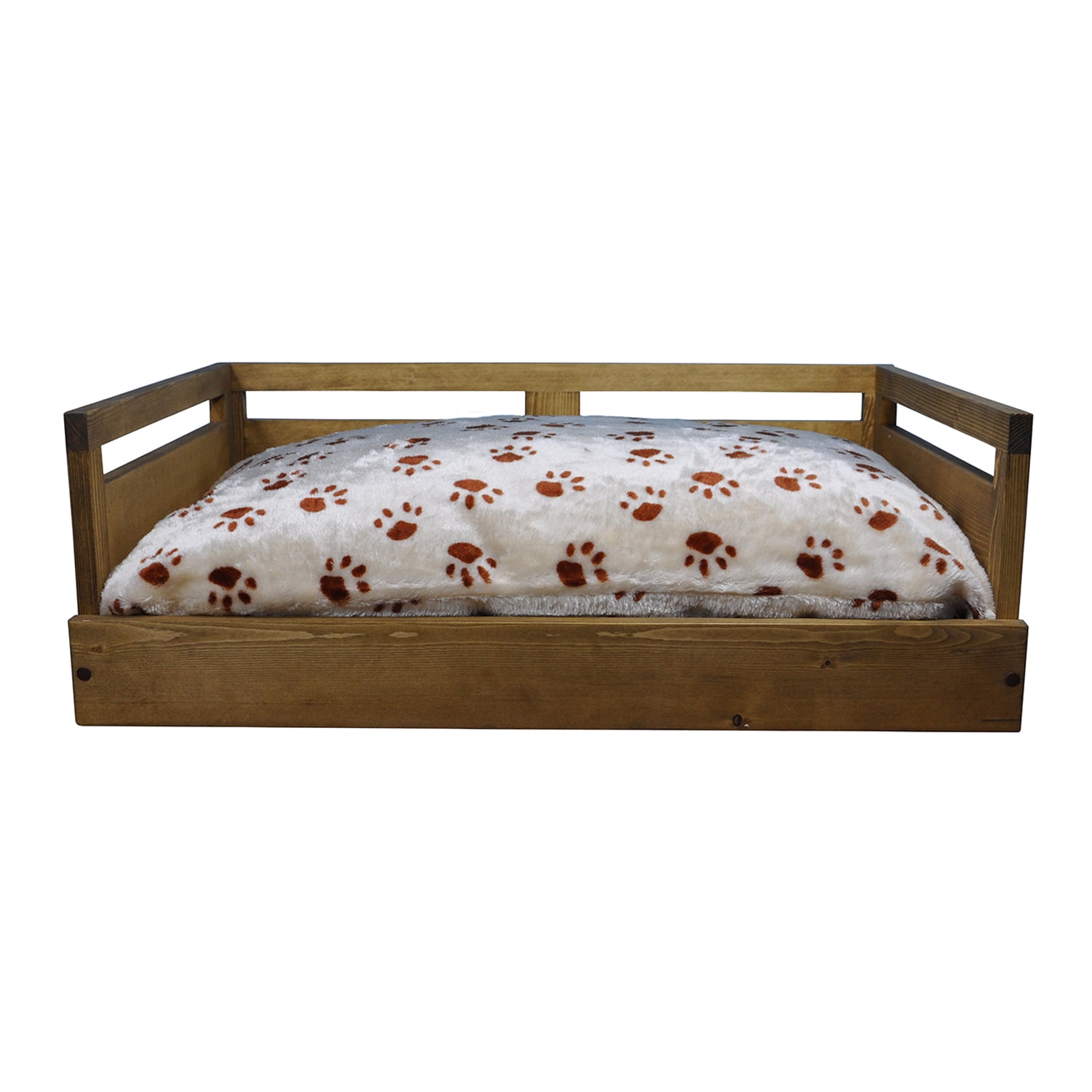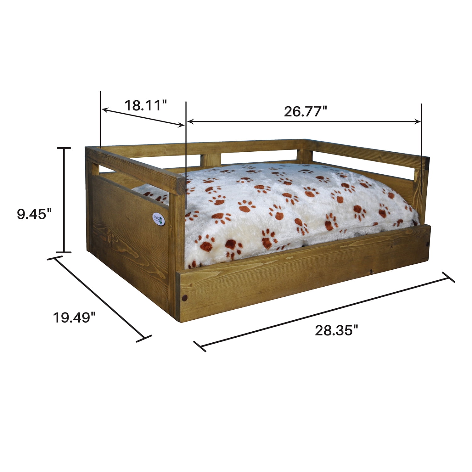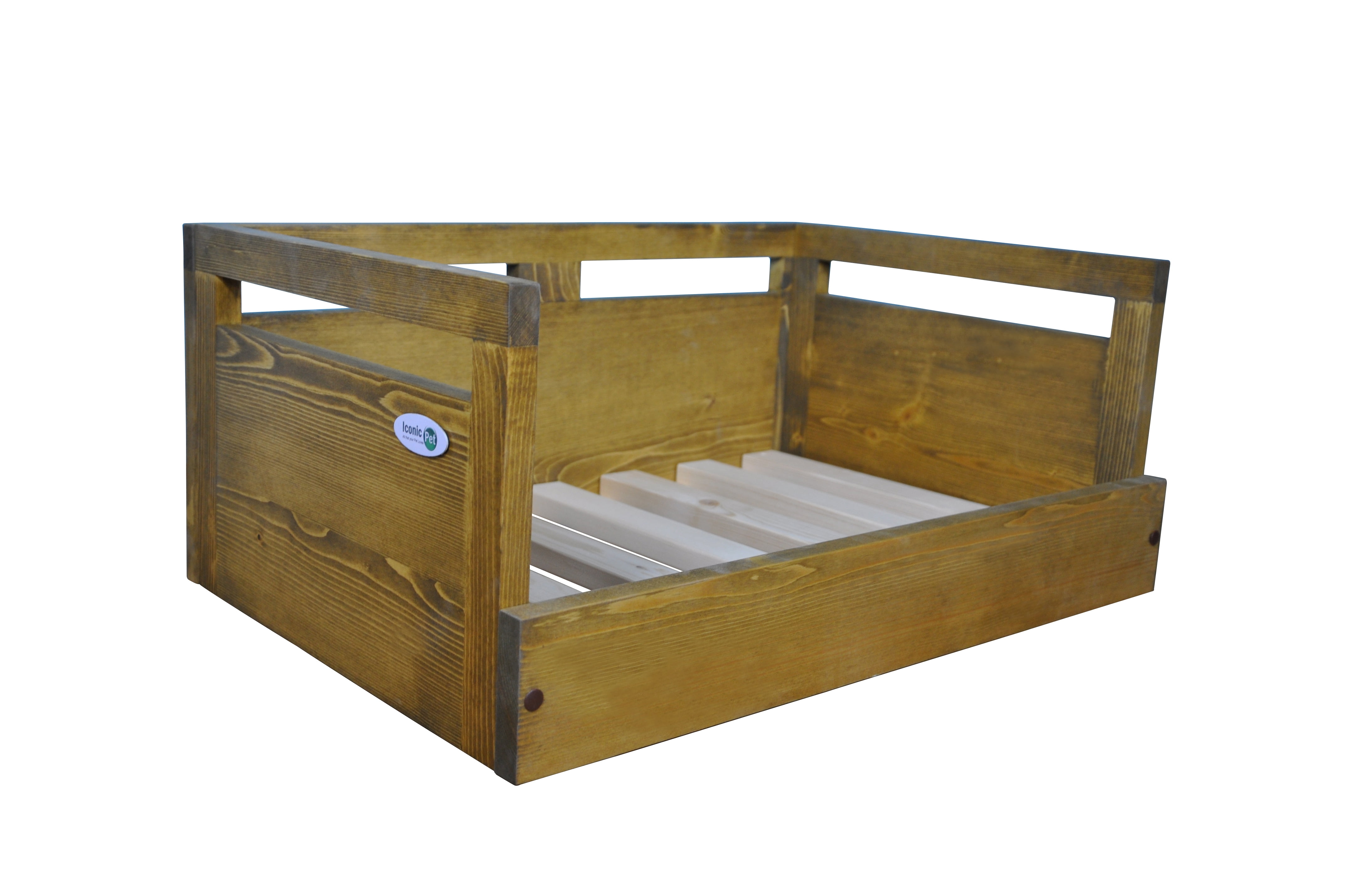 Iconic Pet Medium Wooden Pet Bed with Removable Cushion, Rustic Brown