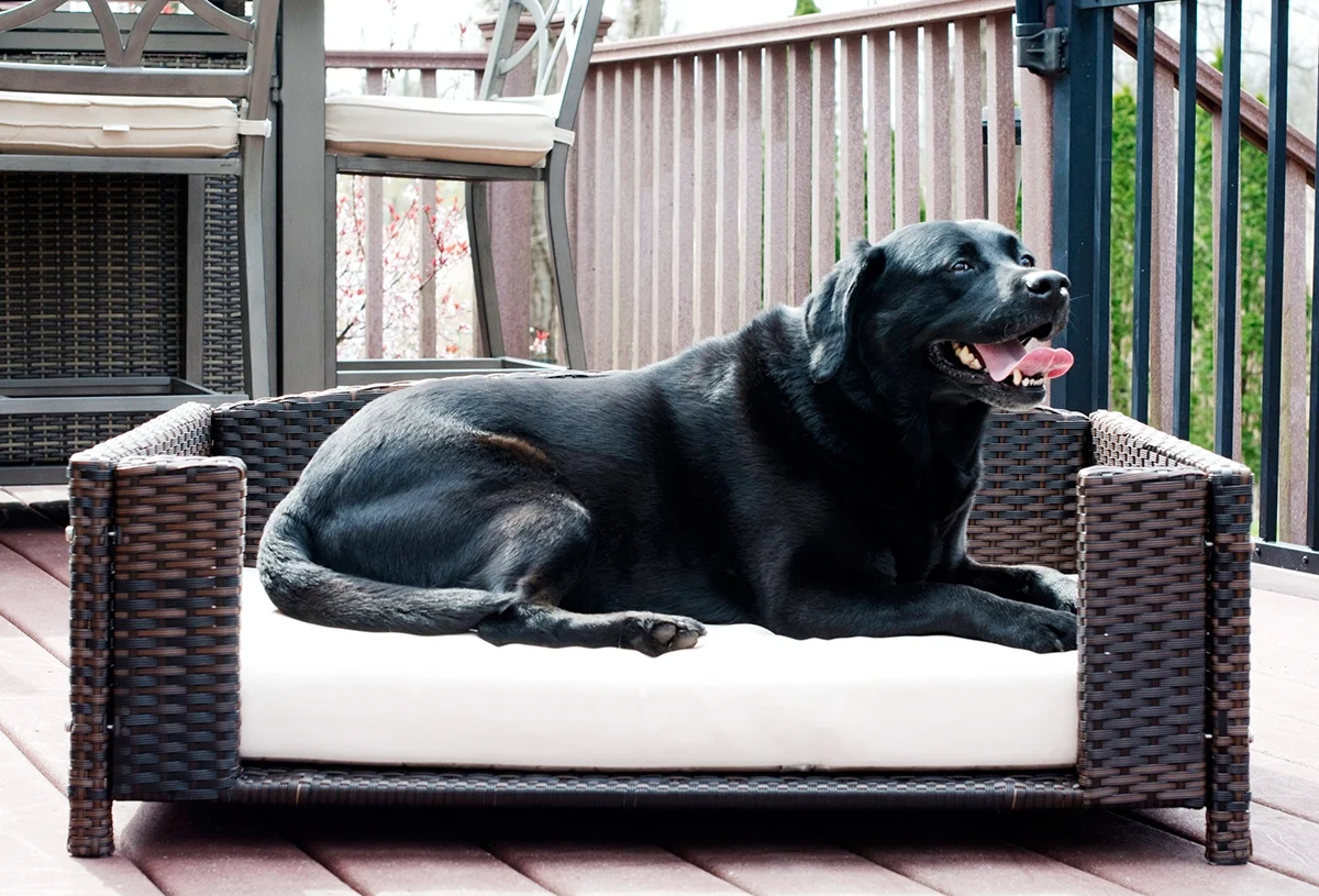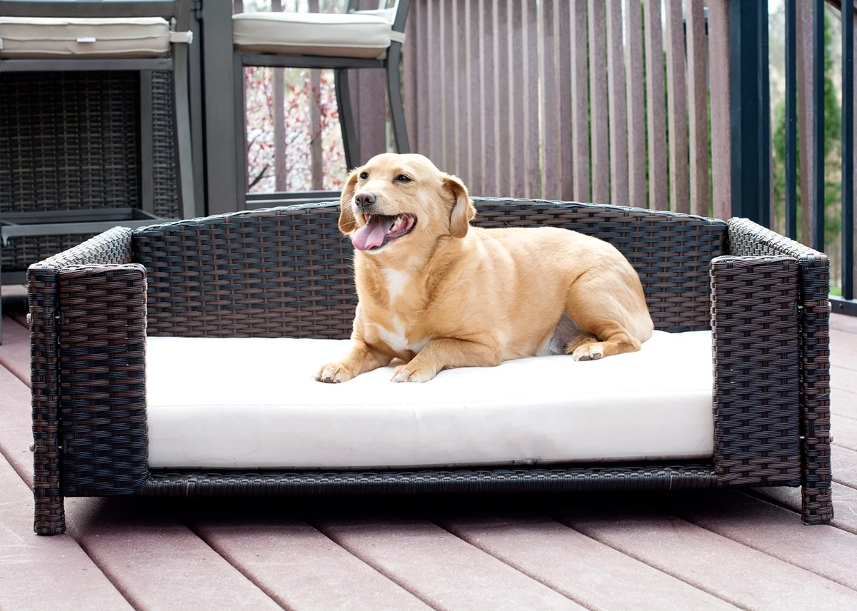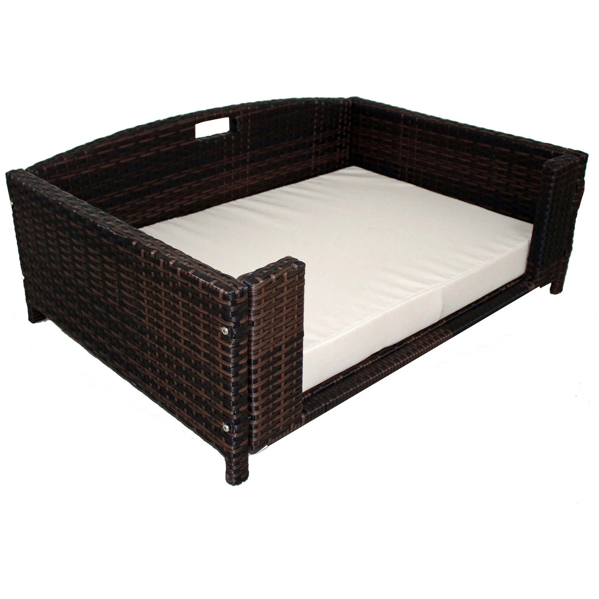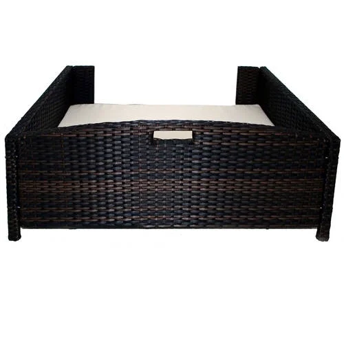 Chew resistant raised pet furniture for dogs and cats Pet bed which works as an indoor and outdoor sofa. Ideal for Patio, Deck, Lawn and Garden for outdoors and Living Room, Bed Room or Family Room for indoors Rattan pet bed with espresso color, available in three sizes – Small, Medium and Large Corrosion free and durable luxury rattan (wicker look) dog / cat sofa Available in three sizes to accommodate large, medium and small dogs. Small and medium size is ideal for cats