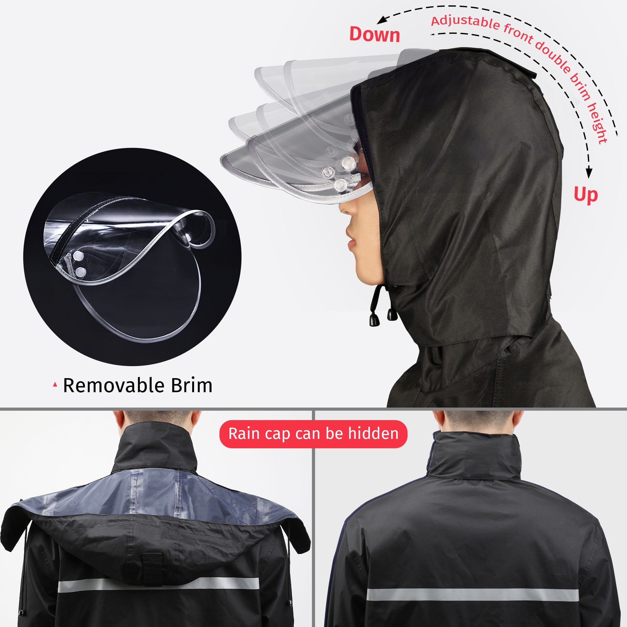 【100% Waterproof】Our raincoat is made with high-tech waterproof materials that are both durable and soft to the touch. These materials provide excellent water resistance, ensuring that you stay dry in any weather condition. They also have quick-drying properties, so you won’t be weighed down by a soggy raincoat. Our raincoat is designed for comfort and practicality, with a long-lasting construction that can withstand frequent use. 【Customized Fabric】This raincoat is crafted using high-tech Nano polyester pongee 240T fabric with a lotus leaf style waterproof coating. The fabric has been treated with anti-oxidation agents to prevent the growth of stains, making it not only waterproof but also soft, comfortable, and resistant to odor. Additionally, the fabric will not peel or stick together. 【Special design】On the back of the raincoat, we have designed ventilation holes.At the top of the raincoat hood (transparent sunshade), we have incorporated a Velcro strap to adjust the height of the dual brims. The brims are detachable.The design of high-visibility reflective stripes on the raincoat enhances the wearer’s visibility and safety in low-light conditions. 【Applicable Scenarios】This iCreek raincoat, suitable for both men and women, can be used in a variety of outdoor activities such as sports, travel, hiking, camping, and exploring. It is also suitable for other professional industries as needed. 【Quality and Durability】At iCreek, we prioritize quality and durability. Our raincoat is meticulously crafted using premium materials and reinforced stitching to ensure long-lasting performance. It is designed to withstand the rigors of outdoor activities, providing reliable protection from rain while maintaining its shape and integrity. 【Note】Please refer to our sizing chart to determine the appropriate size before placing your order. Kindly note that our raincoats are available in various regular sizes and are designed to be suitable for unisex.For maintenance, it is important to follow the care instructions and only hand wash the raincoat. We recommend gently washing it by hand for optimal longevity. Thank you for choosing our product!