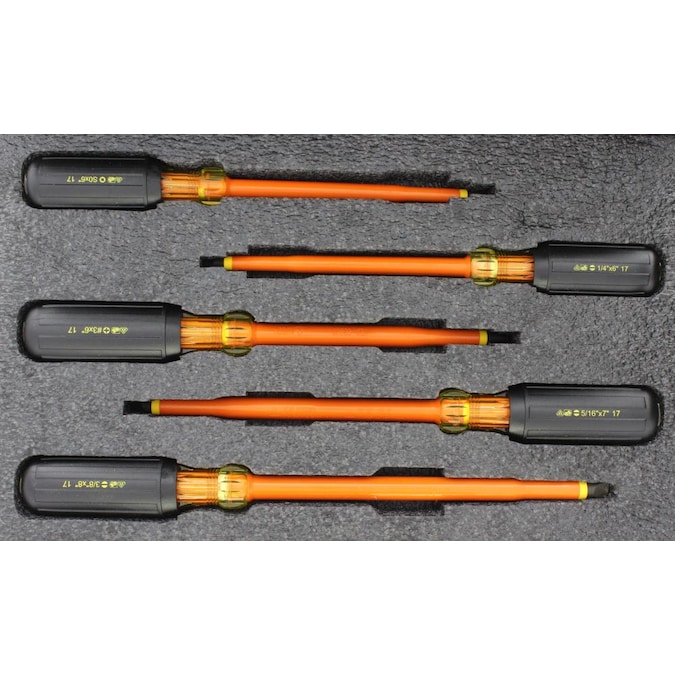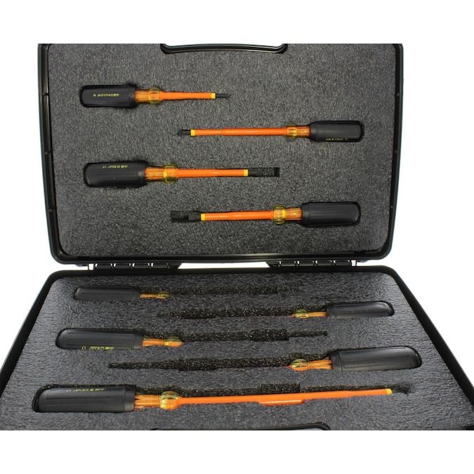 9-Piece insulated screwdriver set includes all of these great IDEAL screwdrivers in 1 convenient set. The IDEAL insulated tool line creates a perfect blend of safety, comfort and precision functionality. Each tool features double insulated neoprene handles with a soft, easy-to-grip outer surface. In addition to the ergonomic qualities found in our tools, the safety check. If the orange outer coating reveals any of the inner yellow surface, an electrician will know that this tool needs to be replaced. Set also comes with hard case.
