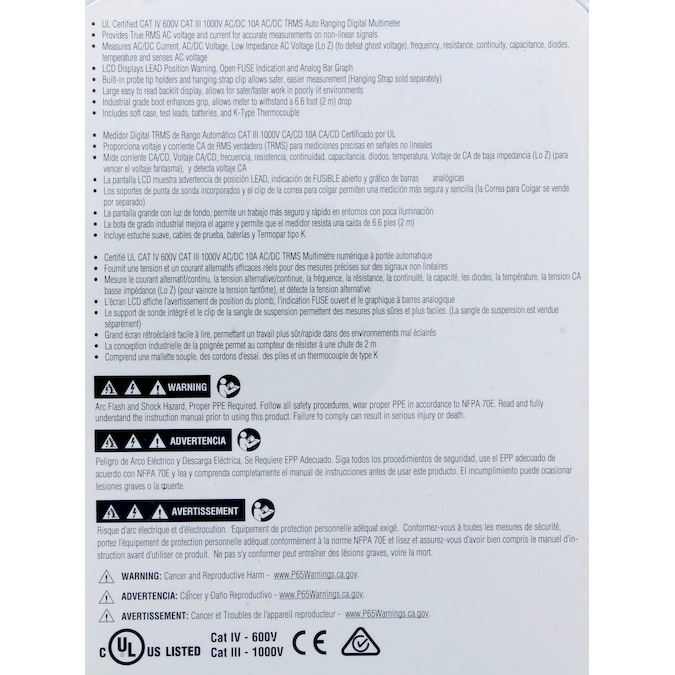 - UL certified CAT IV 600V CAT III 1000V AC/DC 10A AC/DC TRMS auto ranging digital multimeter with analog bar graph on display