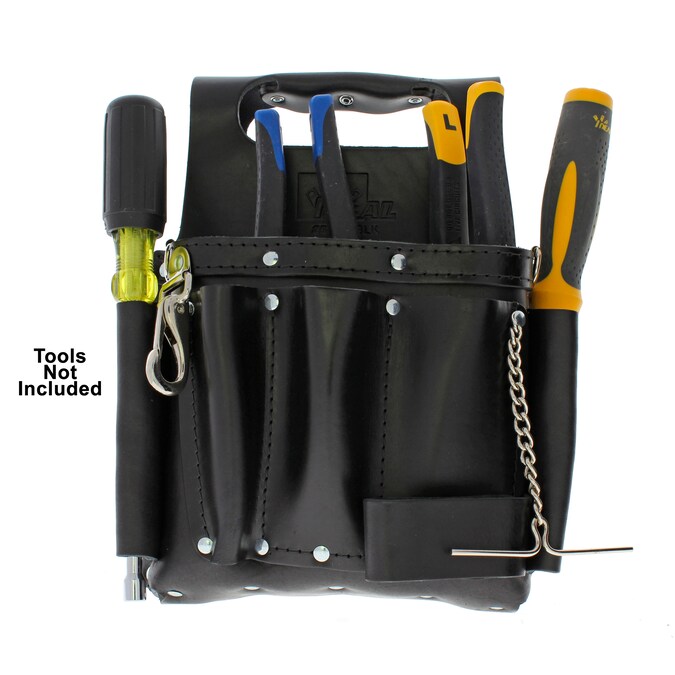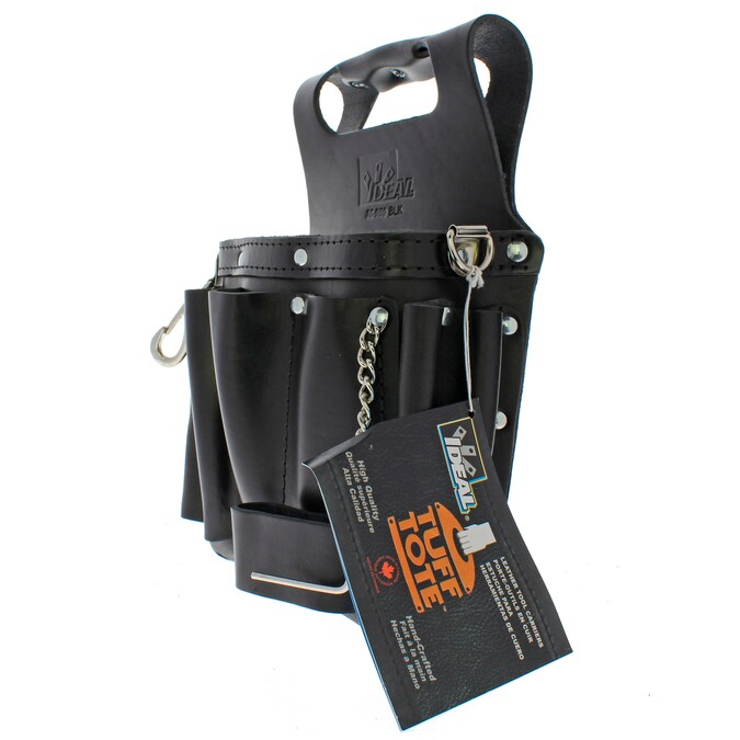 Tuff-Tote tool pouches from IDEAL are made of leather and include eight pockets and a belt-mounted pouch for vast storage. The pockets include a large utility compartment with two dividers and seven outer pockets. The Tuff-Tote tool pouches feature release snaps and tape chain, in addition to a leather grab handle for carrying comfort.
