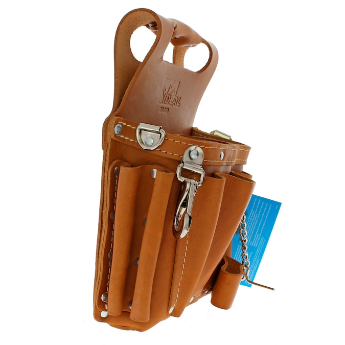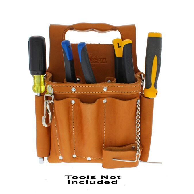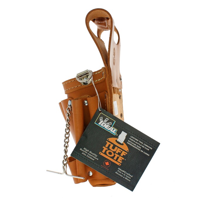 Tuff-Tote tool pouches from IDEAL are made of leather and include eight pockets and a belt-mounted pouch for vast storage. The pockets include a large utility compartment with two dividers and seven outer pockets. The Tuff-Tote® tool pouches feature release snaps and tape chain, in addition to a leather grab handle for carrying comfort.