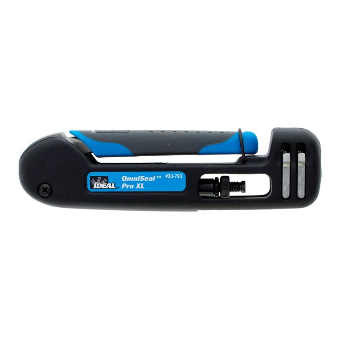 Our best-selling coax compression tool kit for the professional installer. Our flagship OmniSeal Pro XL compression tool is compatible with and terminates all IDEAL compression connectors. Patented dual spring clips and fixed top ledge enable this tool to compress more connectors than any other tool on the market. Unlike most compression tools which require adjustments and adapters for each type of connector, this compact 6-3/4 In. length tool compresses all straight IDEAL compression connectors with no adjustments to the tool. F/BNC/RCA/RG-11 F connectors can all be terminated one after another with no setting changes. Only the 90° F and BNC connectors require a tool adjustment.