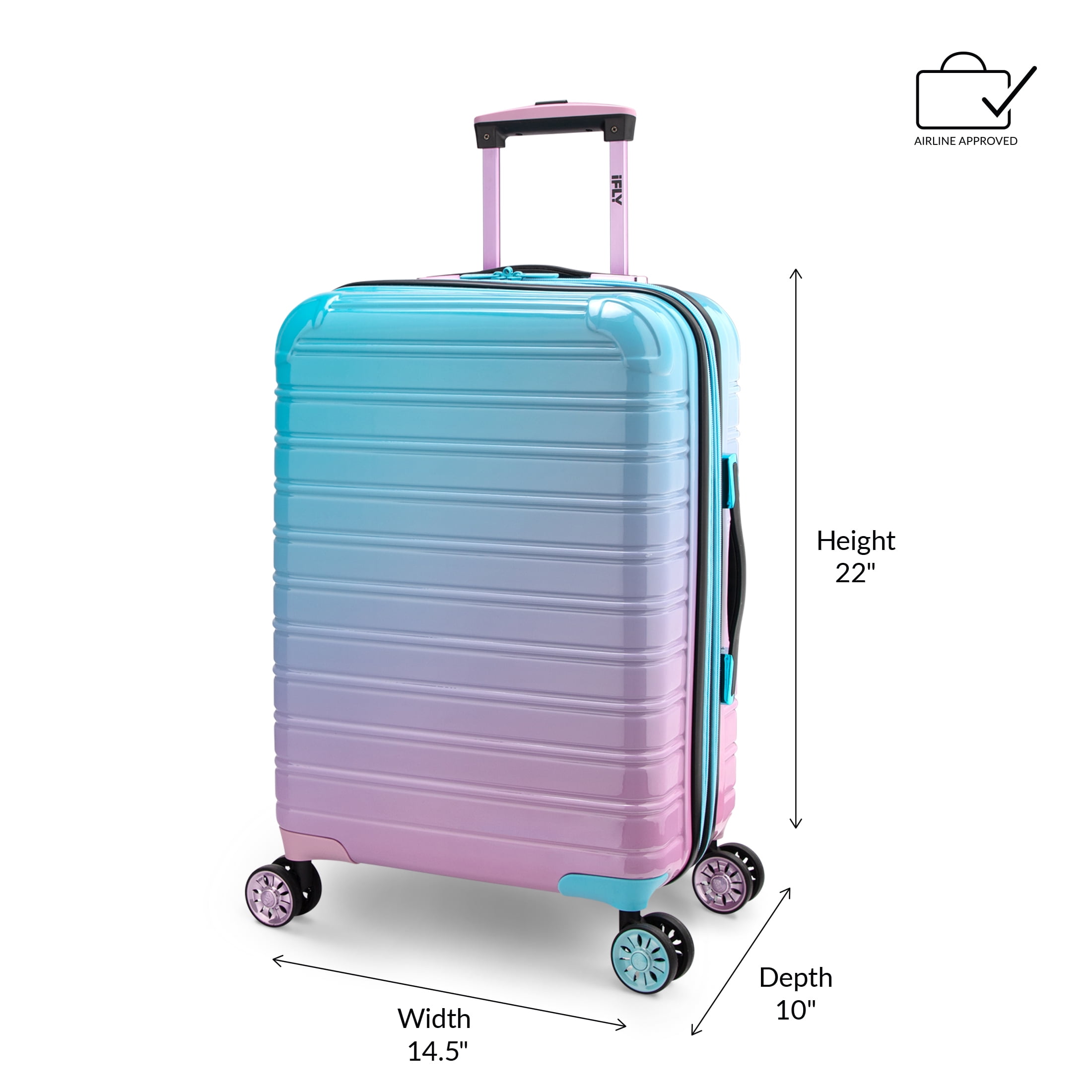 iFLY Hardside Fibertech 3 Piece Luggage Set, 20″ Carry-on, 24″ and 28″ Checked Luggage, Cotton Candy