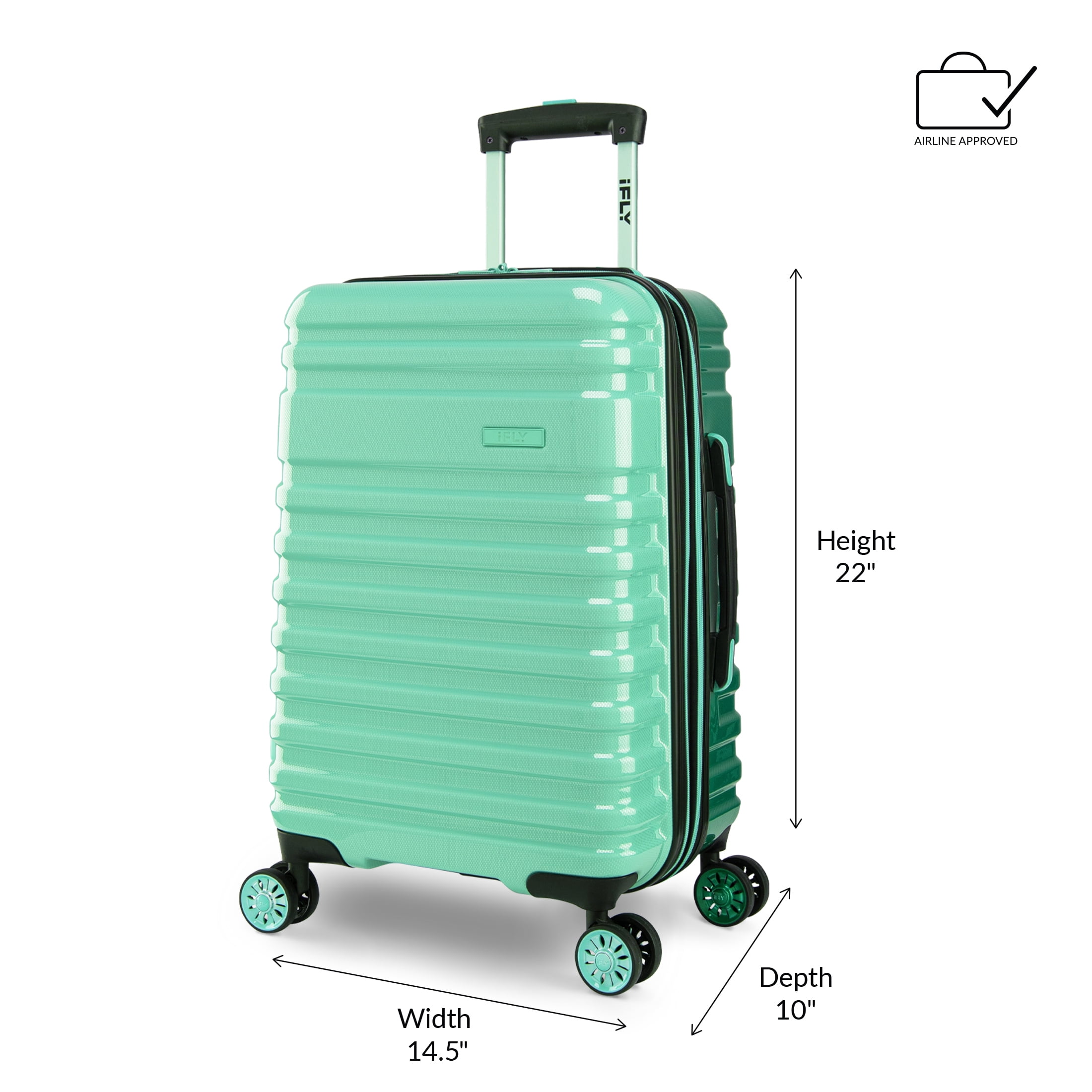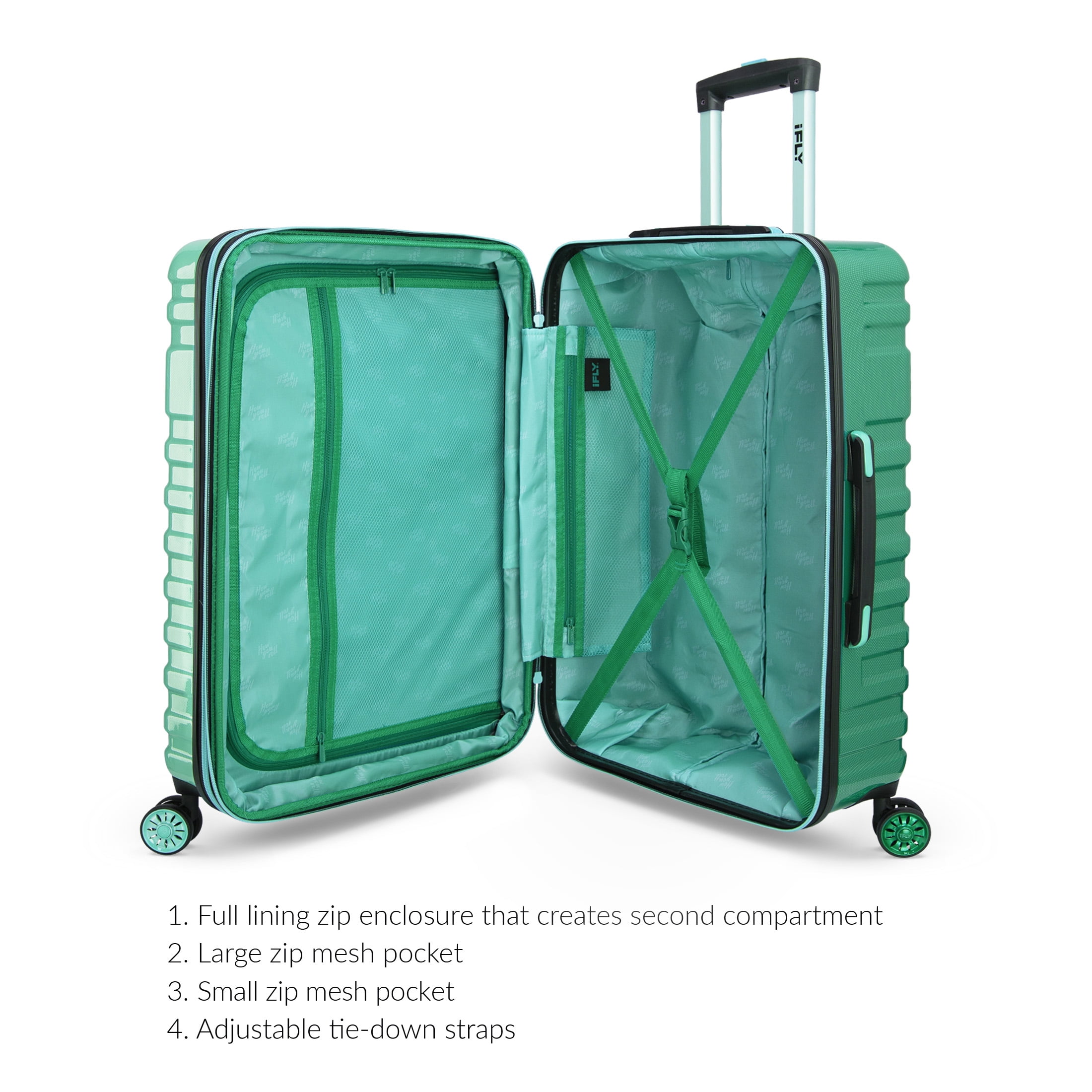 iFLY Hardside Luggage Spectre Versus 3 Piece Set, 20″ Carry-On Luggage, 24″ Checked Luggage and 28″ Checked Luggage, Rain Forest