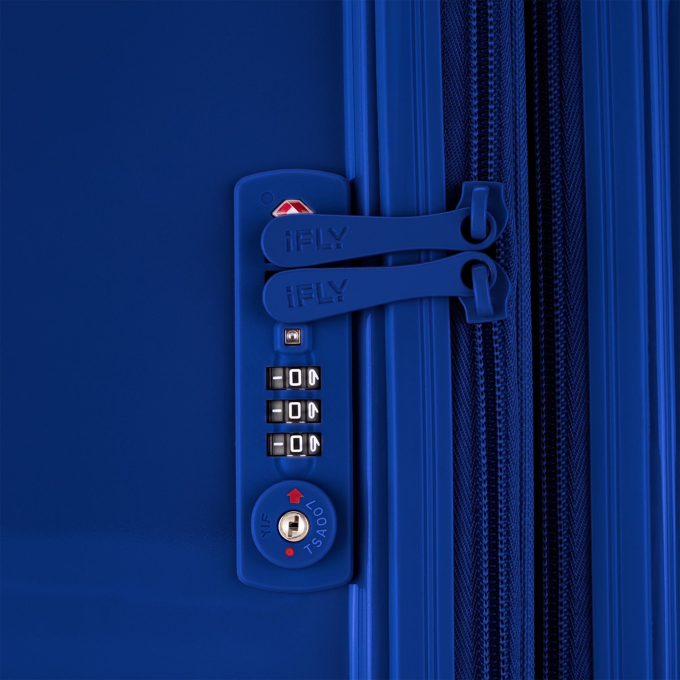 Travel smarter with the iFLY Odyssey Hardside Luggage Set. This carry-on and checked set features a durable, lightweight ABS/PC shell with a sleek glossy finish. Glide easily with 360° recessed spinner wheels and keep items secure with a TSA lock. The carry-on includes a front pocket for quick access to electronics. Both pieces expand for extra space and offer an organized interior with a wet pocket and shoe compartments in the large checked piece. Backed by a 20-year warranty and available in Navy and Gray.