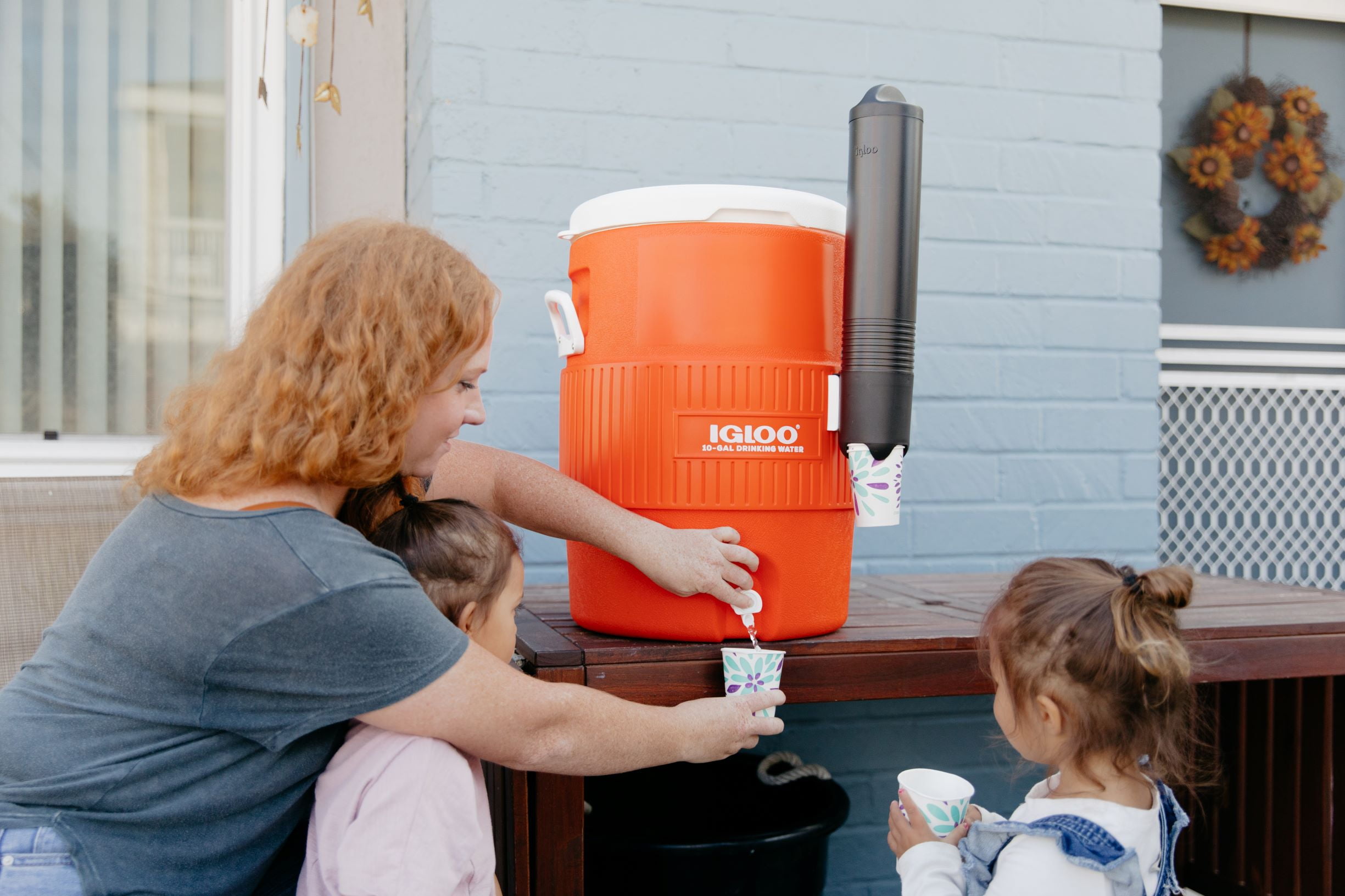 Igloo 10-Gallon Seat Top Water Jug with Cup Dispenser – Orange