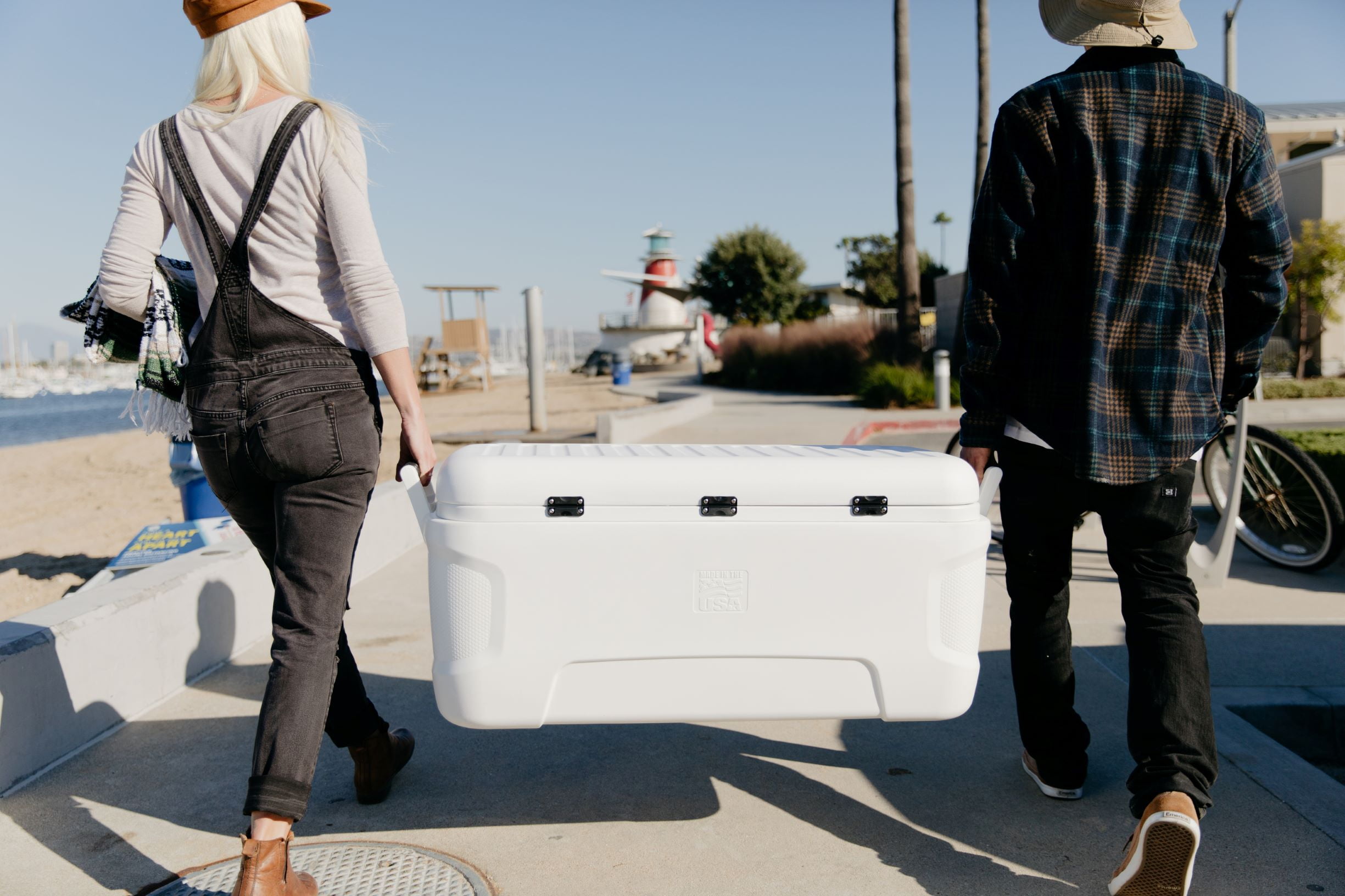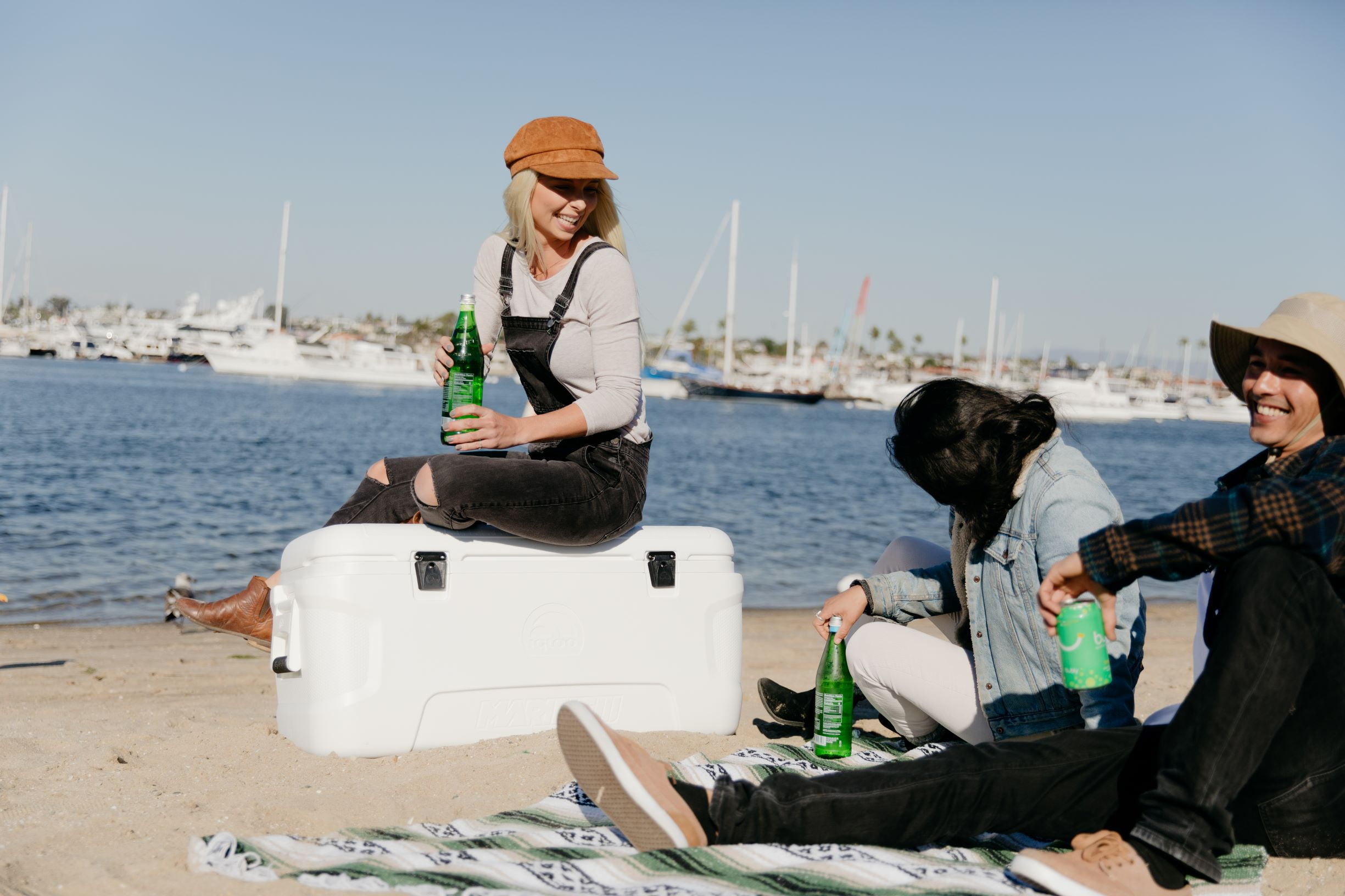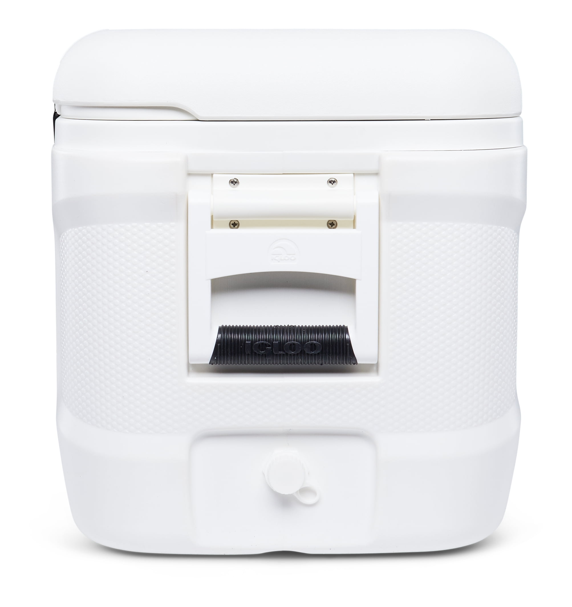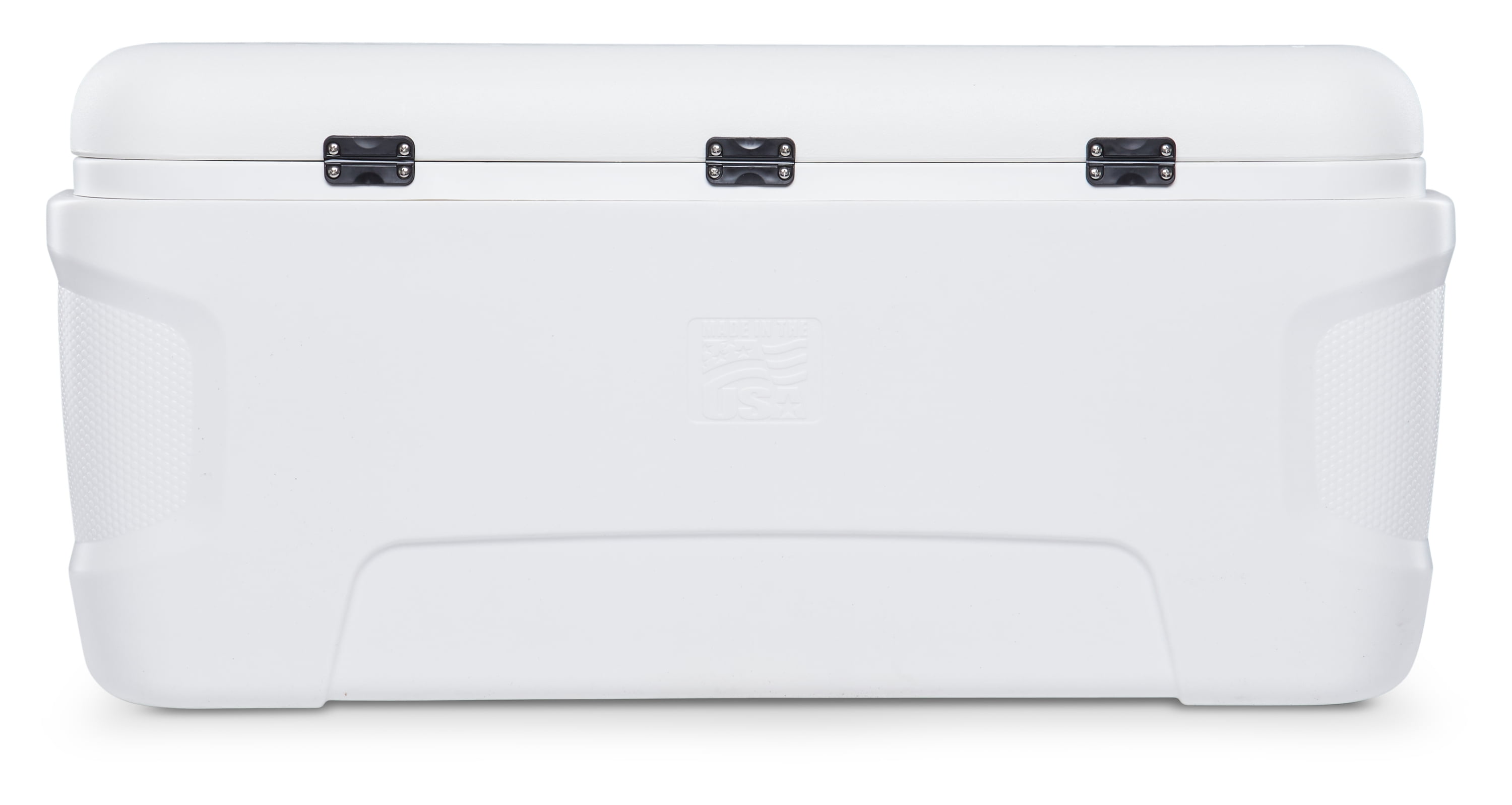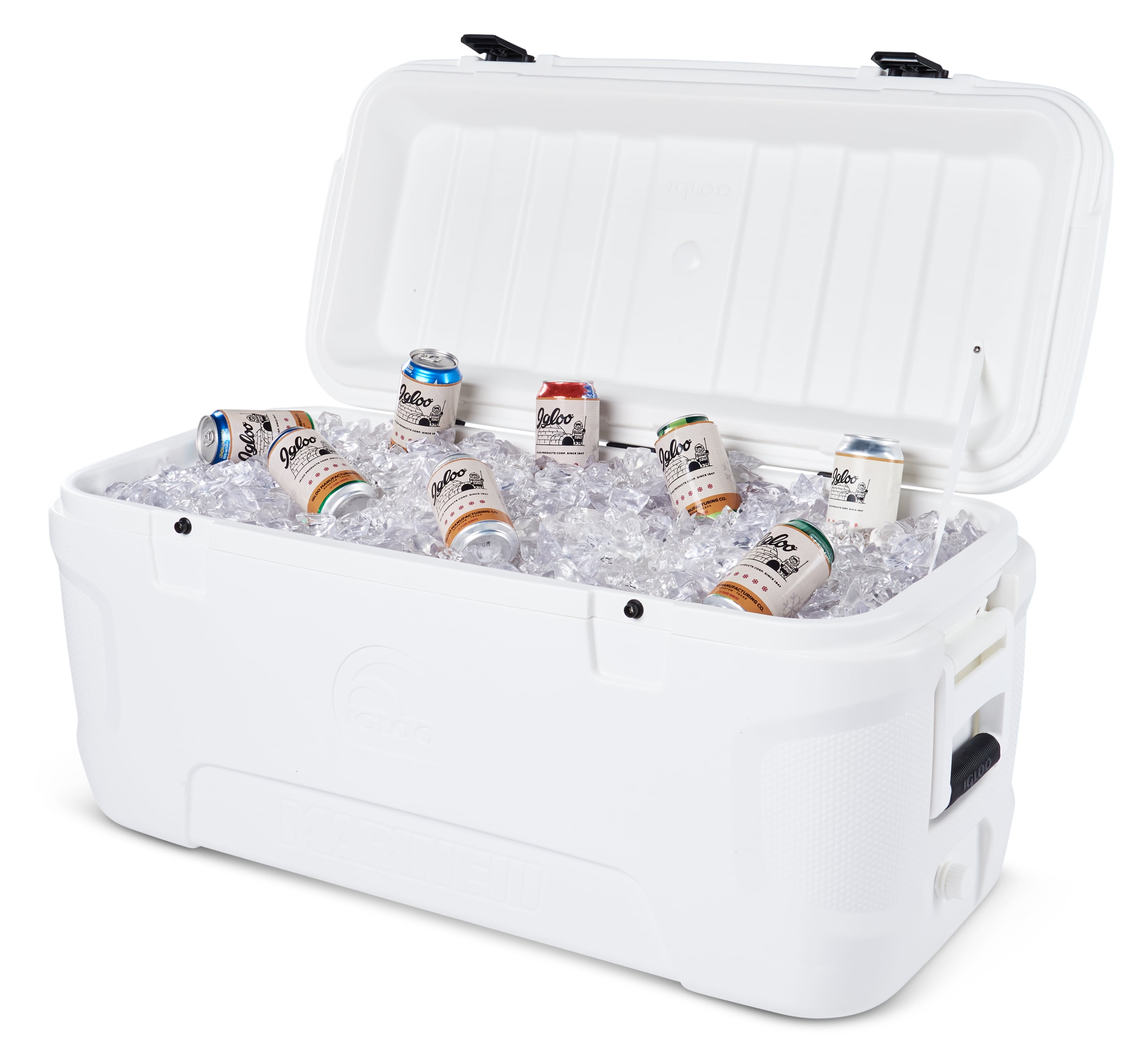 Igloo Marine 120 qt. Hard Sided Ice Chest Cooler – White Ultraviolet inhibitors protect against sun damage Stainless steel screws are rust resistant Extended life, plastic latches Marine-grade, extended life hinges Non-slip, comfort grip handles Integrated fish ruler on lid Ultratherm® insulation in body and lid holds ice up to 5 days Threaded drain plug lets you hook up a hose for ultimate easy to-drain performance 113 Liters, 188 cans Product Dimensions: 17.38X38.31X17.75