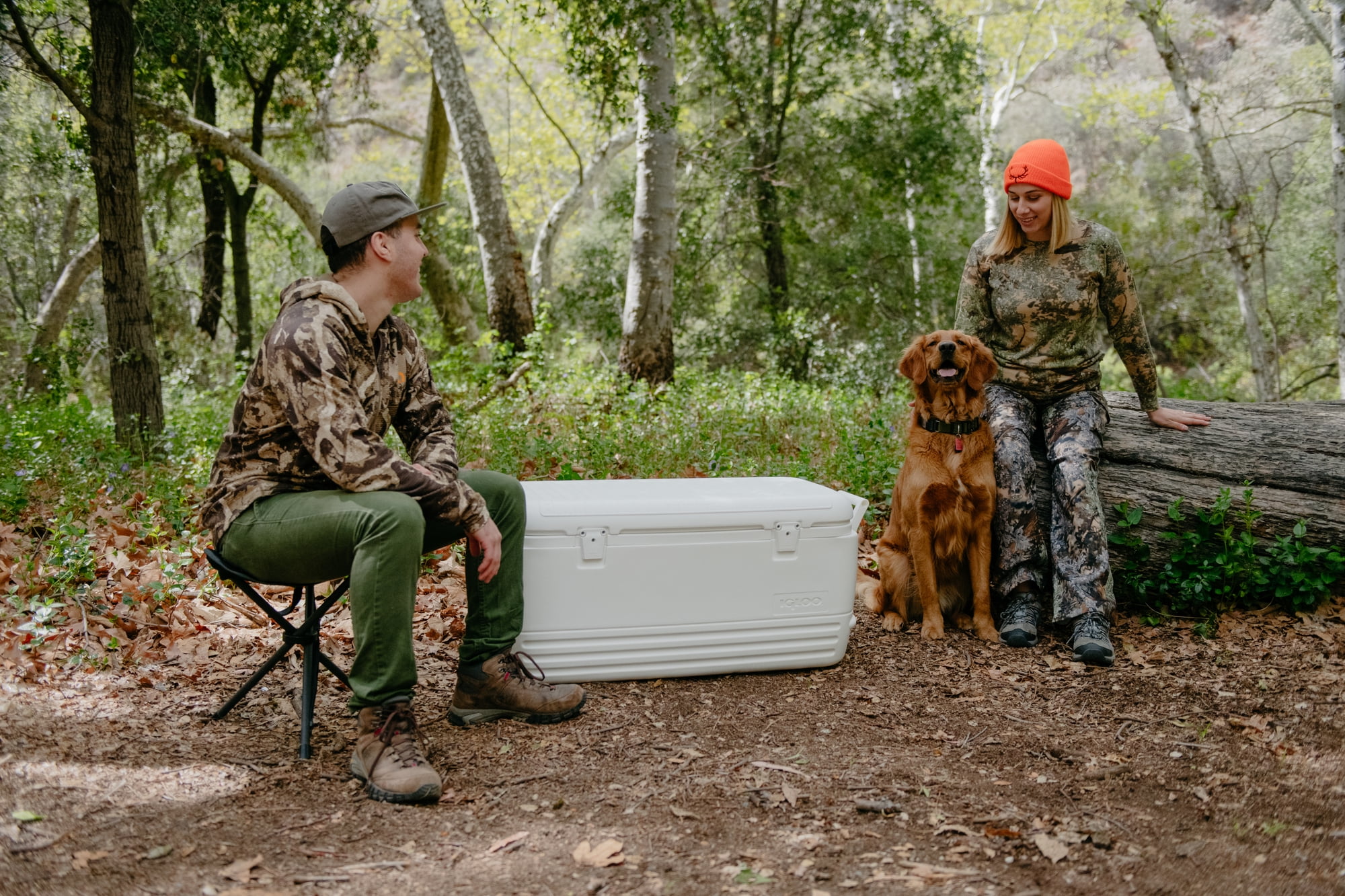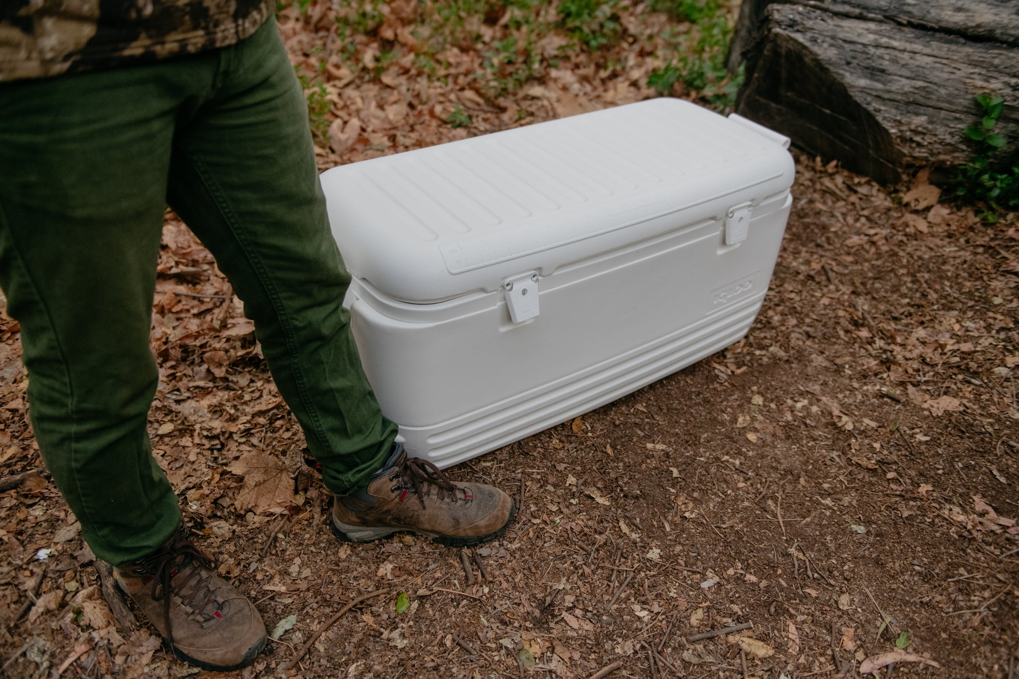 From the industry leader in extended cooling performance, comes this Igloo Polar Cooler in white. Its Ultratherm insulation in the body and lid provides maximum cooling, so your drinks will stay at the right temperature while it holds ice for up to five days. This Igloo 120-Quart cooler is ideal for camping, extended trips, going to the beach, all day fun at the ballpark or backyard parties. It features dual, snap-fit latches that are child-safe to secure the lid tightly and a tie-down loop offers additional security. There’s a liner that protects the interior of this Igloo Polar Cooler from odors and staining. A threaded drain plug makes it easy to fill it up with water by simply attaching a garden hose. The lid guard even has UV inhibitors to protect from damage caused by the sun. All together, it can hold up to 188 -2 oz cans. This camping gear from Igloo is just what you need to stay hydrated and refreshed while having a wonderful time outdoors.