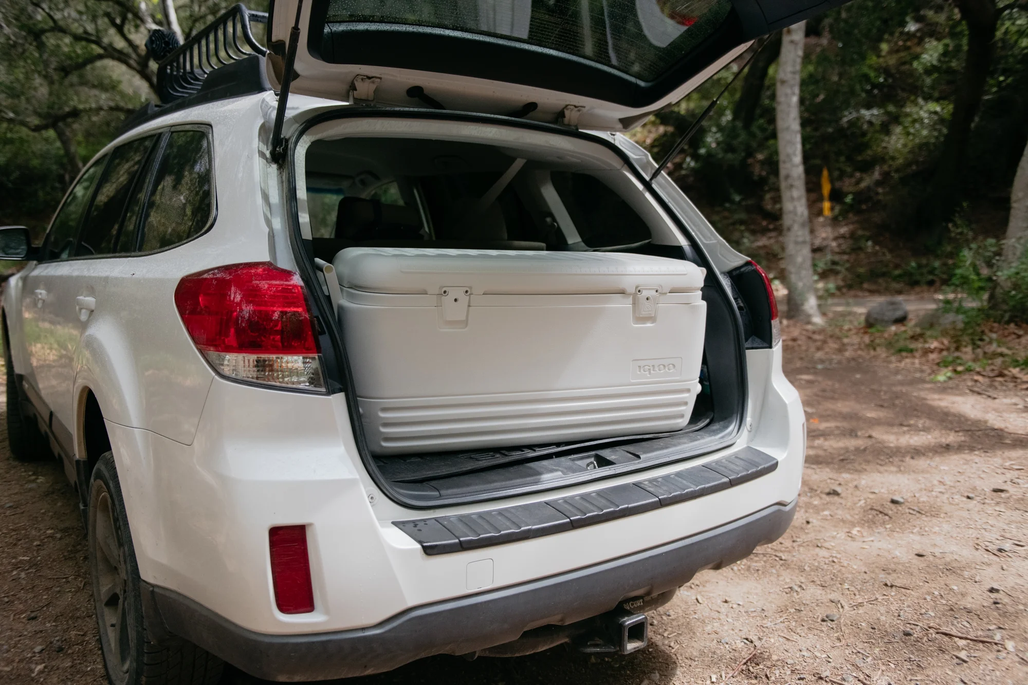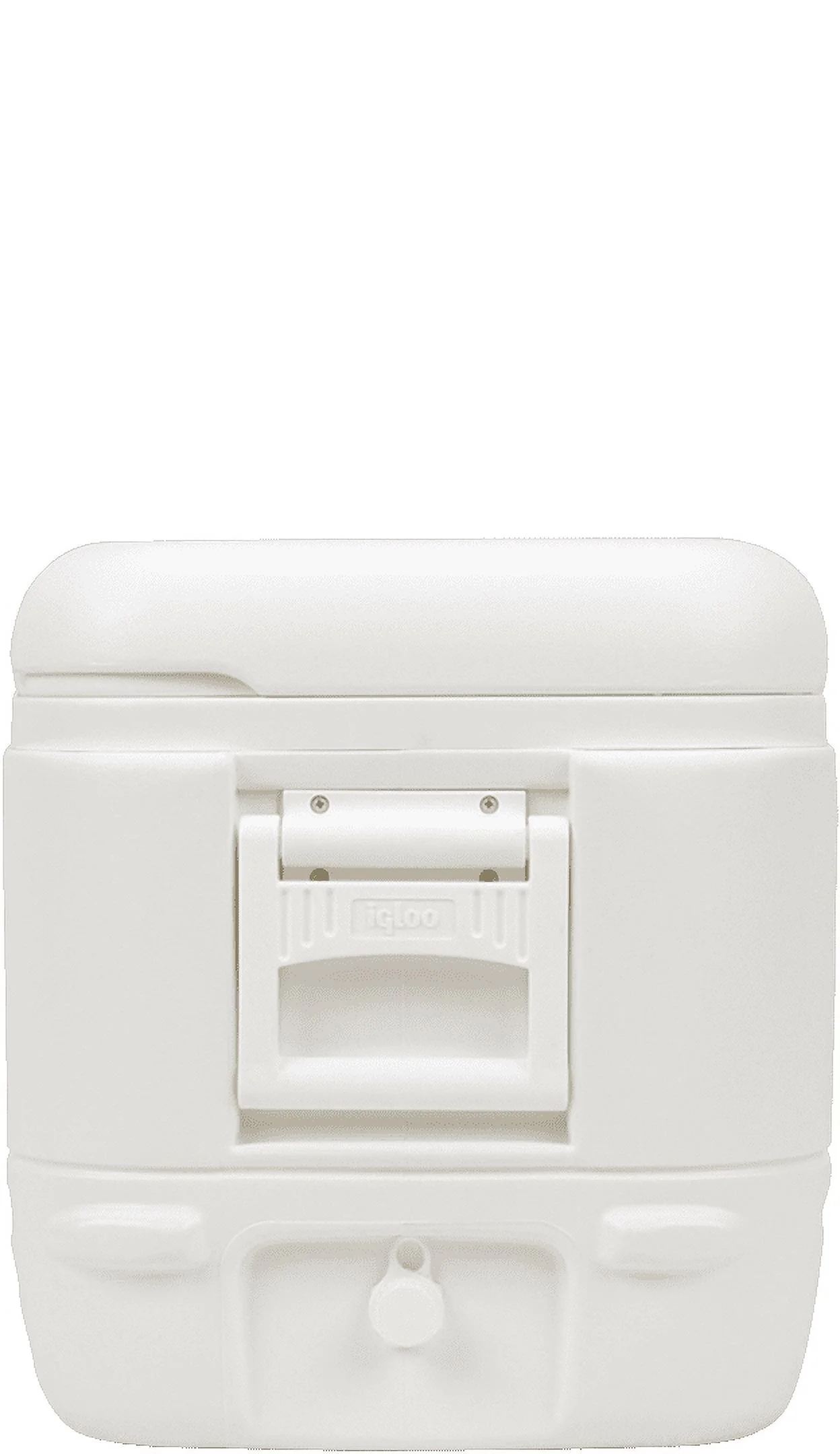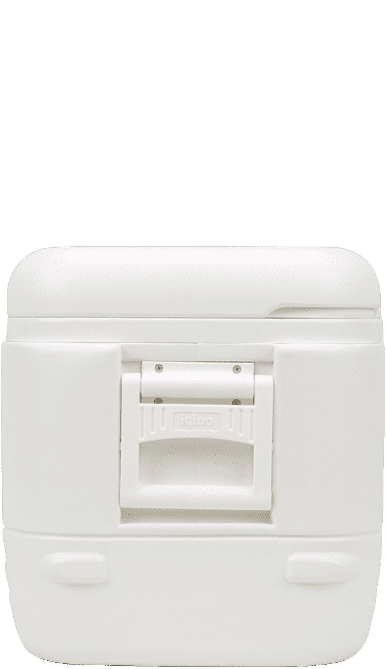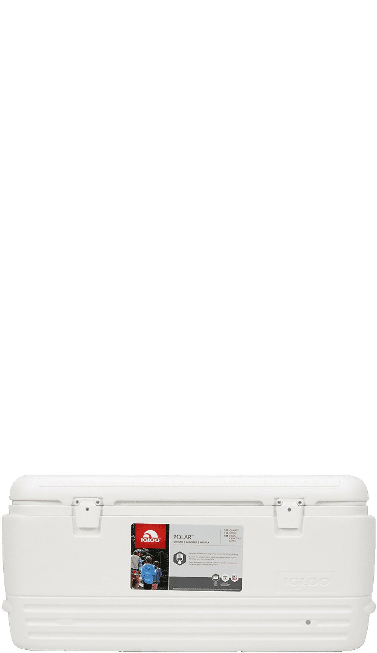Igloo 120-Quart Polar Cooler: UV inhibitors in lid guard against sun damage Stain- and odor-resistant liner Threaded drain plug for hose hook up Reinforced, swing-up handles with tie-down loop feature Dual, snap-fit latches secure lid closure Snap-lock, child safety latch Dimensions: 38.3″L x 17.4″W x 17.8″H Igloo 120-quart cooler comes in white Swing-up handles for easy carrying Lid holds ice for up to 5 days Can hold up to 188 12 oz cans Weight: 18.2 lbs