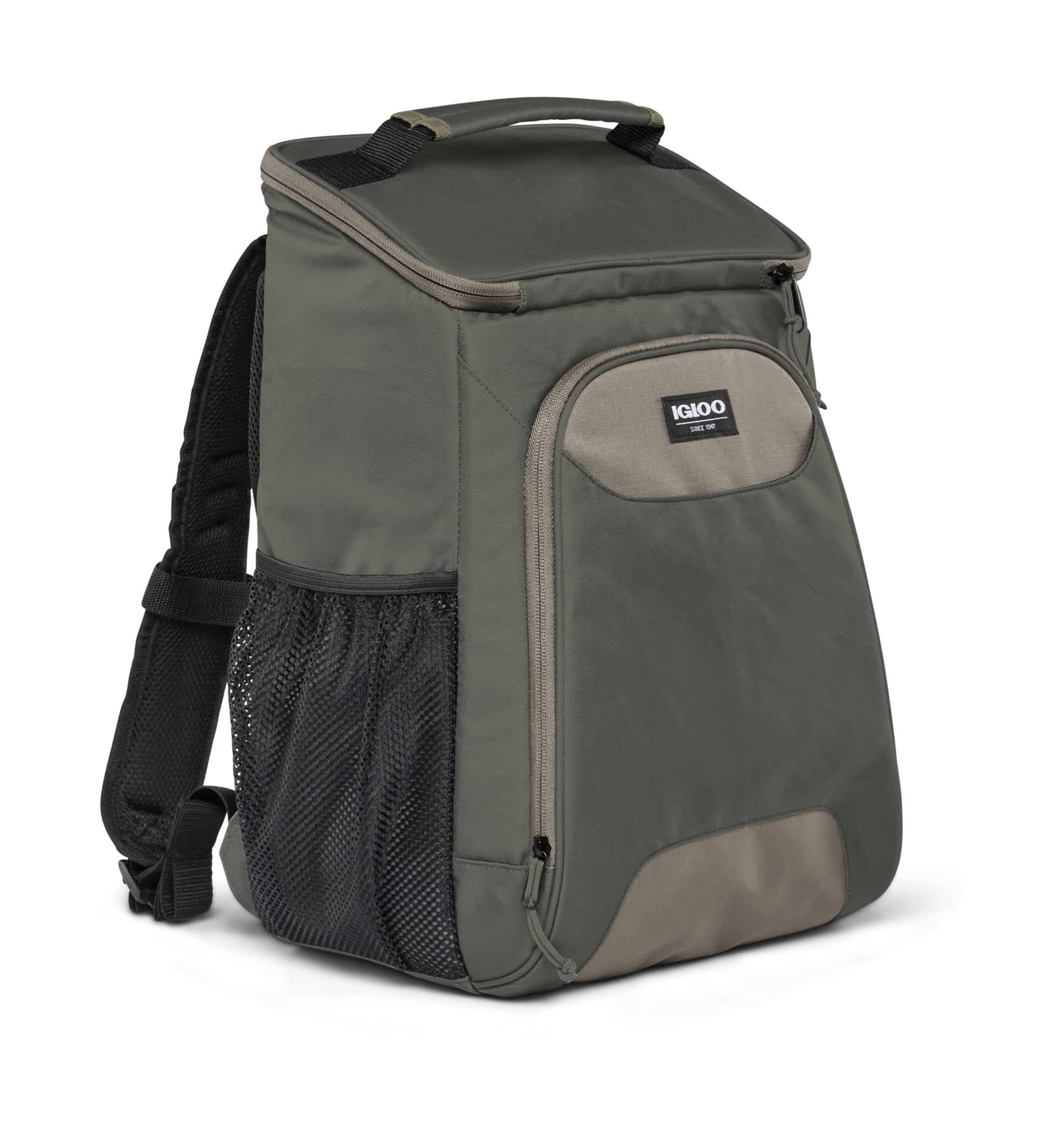 With the igloo laguna top-grip, 24 cans cooler backpack in olive-green, food to-go has never looked (or been) so cool. With its good-looking exterior and interior with advanced insulation, you are carrying around your beverages and food in style, and keeping it all chilled, wherever the day takes you. Igloo designed this backpack with advanced max cold insulation that keeps contents colder for way longer than the average backpack. And with its spacious interior (up to 24 cans fit inside!), additional storage pockets on the front and back, you won’t have to leave any food or drinks you want behind. And carrying it all is a cinch. The padded shoulder straps keep you comfortable as you’re hauling your goods from school to the campsite.