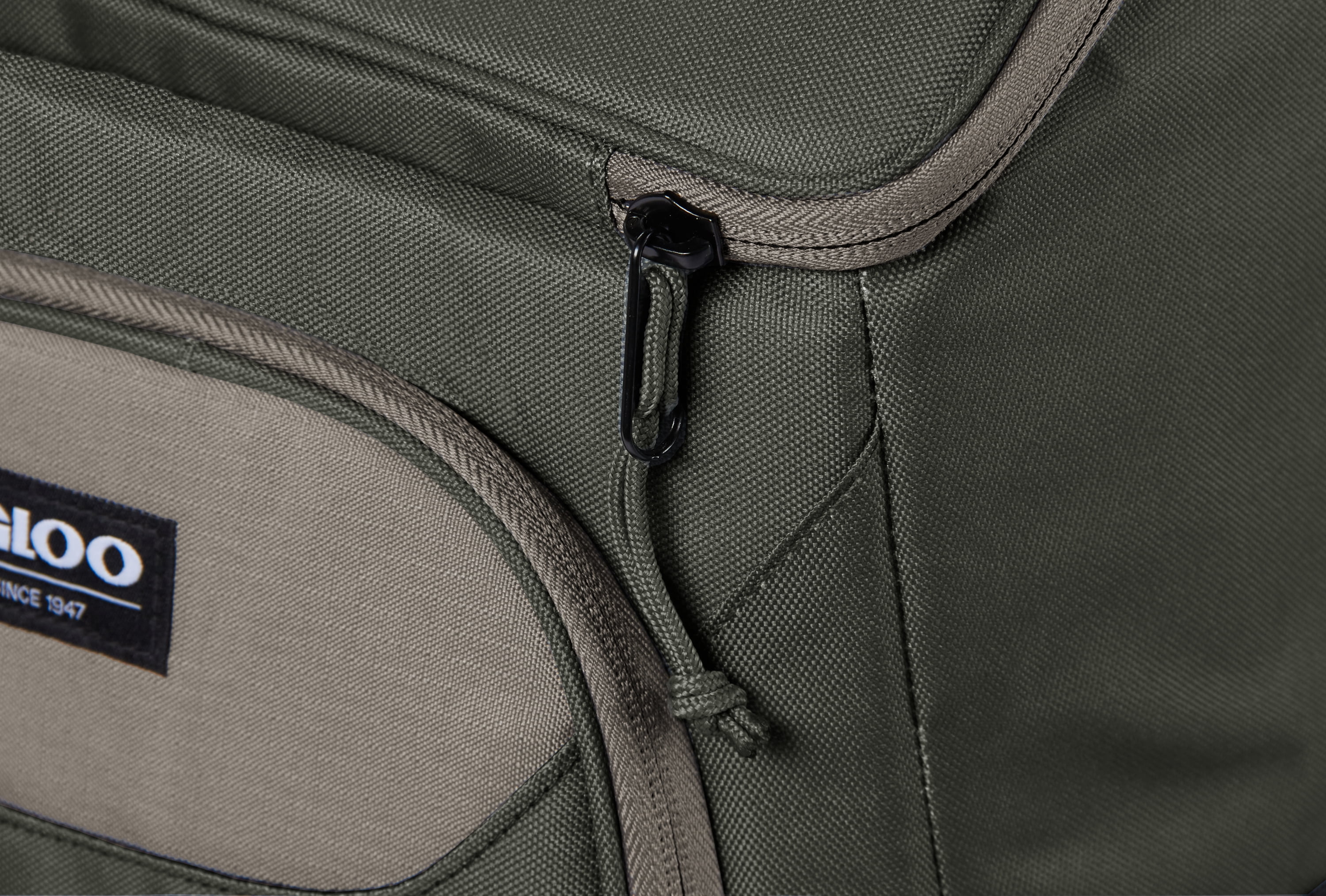Igloo 24 cans Soft Sided, Olive Green: Maxol insulation keeps your food & drinks fresh until it’s time to eat Spacious, insulated interior stores & chills your refreshments (even tall bottles!) Comfort features, like padded shoulder straps, allow for easy carrying Mesh side pockets are perfect for reusable water bottles Front pocket is insulated & deep for keeping other items cold Additional straps keep taller bottles in place Padded zip pocket on back stores flat items Gusseted front slip pocket provides extra storage Spacious enough to hold 24 cans 12.00″ x 9.00″ x 17.00″ Inches