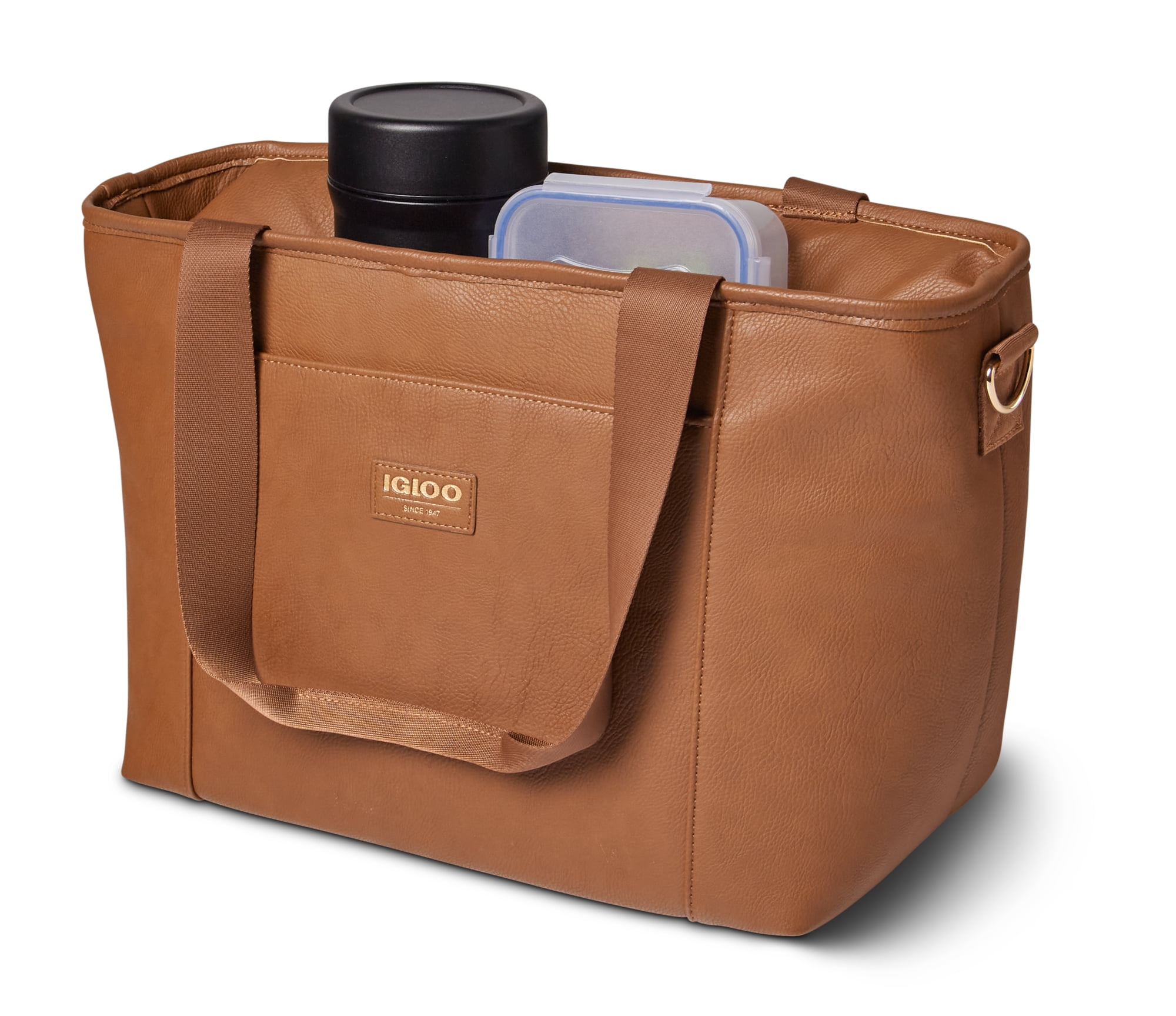 Elevate your look and everyday carry with the fashion-forward Igloo Luxe collection of cooler bags. With an insulated lining that’ll keep contents chilled, a vegan leather exterior, thoughtful compartments and other sophisticated design details. The “Pretty Cool” 24 cans Igloo Luxe Tote Bag in Cognac Brown, is more functional than your handbag, but equally as stylish and easy to carry (hands-free!).