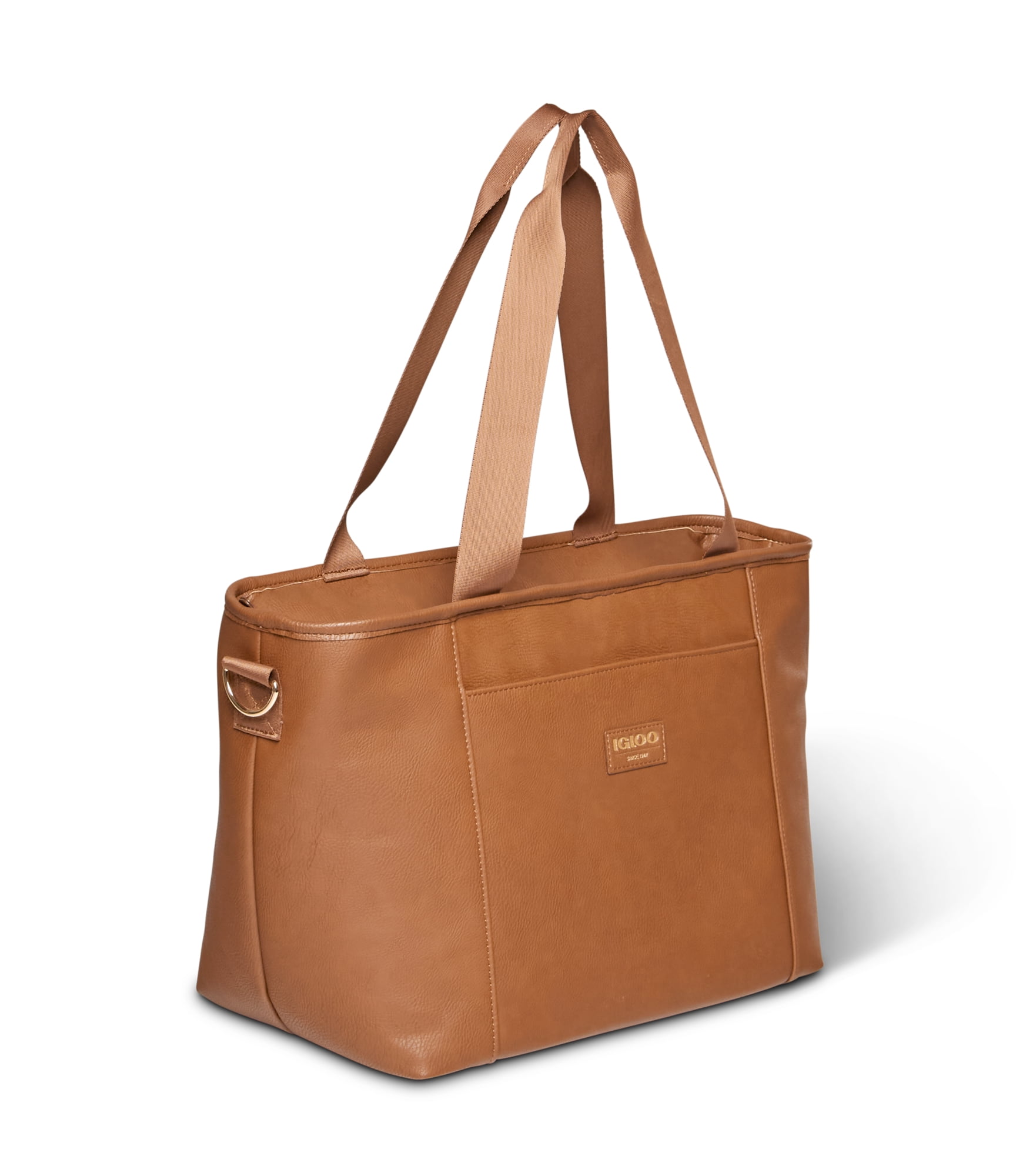 Igloo 25 cans Luxe Tote Soft Sided Vegan Leather Cooler, Cognac Brown