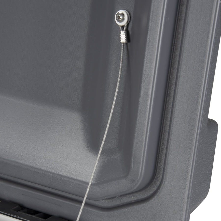 Swing-up side handles feature stainless steel reinforcement & rubber grip touch points for a secure hold Oversized hinges & stainless steel hardware extend product life Threaded drain plug gives you the option to hook up to your water hose for easy draining & includes a tethered, easy-grip stainless steel cap Skid pads further protect corners & keep the cooler stable & secure on smooth surfaces Four tie-down points allow you to secure the cooler during transport Stainless steel kick plate provides added protection & style Molded-in fish ruler on lid lets you measure your catch instantly Cool Riser Technology® improves cooling performance by elevating cooler body away from hot surfaces Put the size into perspective: Holds 83 cans