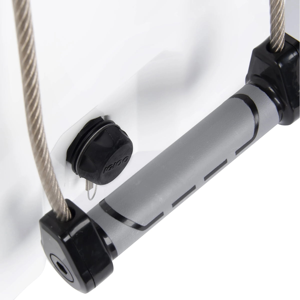 Ultratherm® foam-insulated walls & lid provide superior, extended ice retention performance Cool Riser Technology® improves cooling performance by elevating cooler body away from hot surfaces Injected-molded construction provides advanced durability Durable, marine-grade, rubberized lid T-latches provide a secure closure & lock in the cold Suspended, removable interior wire food basket keeps designated food items dry Stainless steel locking plate keeps items securely inside (lock not included) Steel braided cable handles with rubber grip add comfort & improved hold in wet conditions. UV inhibitors protect the cooler from sun damage Anti-skid pads on base corners keep the cooler stable & secure on smooth surfaces Threaded drain plug gives you the option to hook up to your water hose for easy draining & includes a tethered, easy-grip cap Four self-draining cup holders in the lid keep your drinks secure & within reach Built-in stainless steel bottle opener helps you quickly & easily enjoy your bottled beverages Self-stopping hinge détente keeps the lid open Molded-in fish ruler on lid lets you measure your catch instantly Put the size into perspective: Holds 105 cans