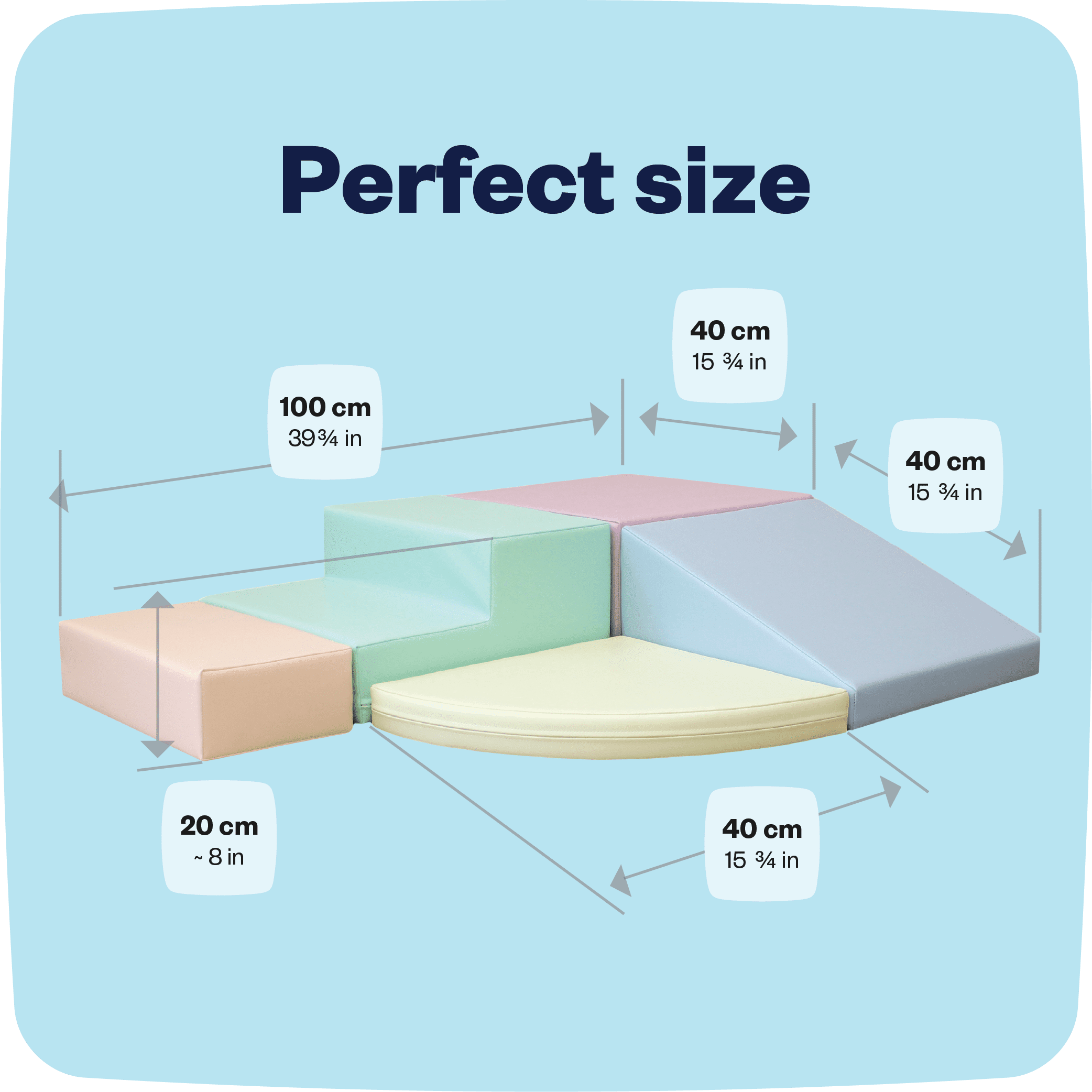 Crafted for endless playtime adventures, our soft play sets are built to last, blending durability with lightweight design They bounce back effortlessly! No matter how much excitement they endure, our soft foam shapes maintain their original form after long-term use, ensuring uninterrupted fun Equipped with an anti-slip cover and a concealed zipper, your little adventurer’s play time is safer These soft blocks are a breeze to tidy up with just a quick wipe down using a damp cloth, keeping playtime mess-free and stress-free Our soft play equipment is free from harmful chemicals like BPA and phthalates, ensuring a safer environment for your little ones to learn and grow Certified across the US, Canada, and Europe, including certifications such as ASTM, CPSIA, CPSC, SOR, and CE Handcrafted with love! Each piece is made in-house, from cutting shapes to sewing, ensuring attention to detail and craftsmanship in every block We use high-quality polyethylene foam (PE) coated with PVC artificial leather
