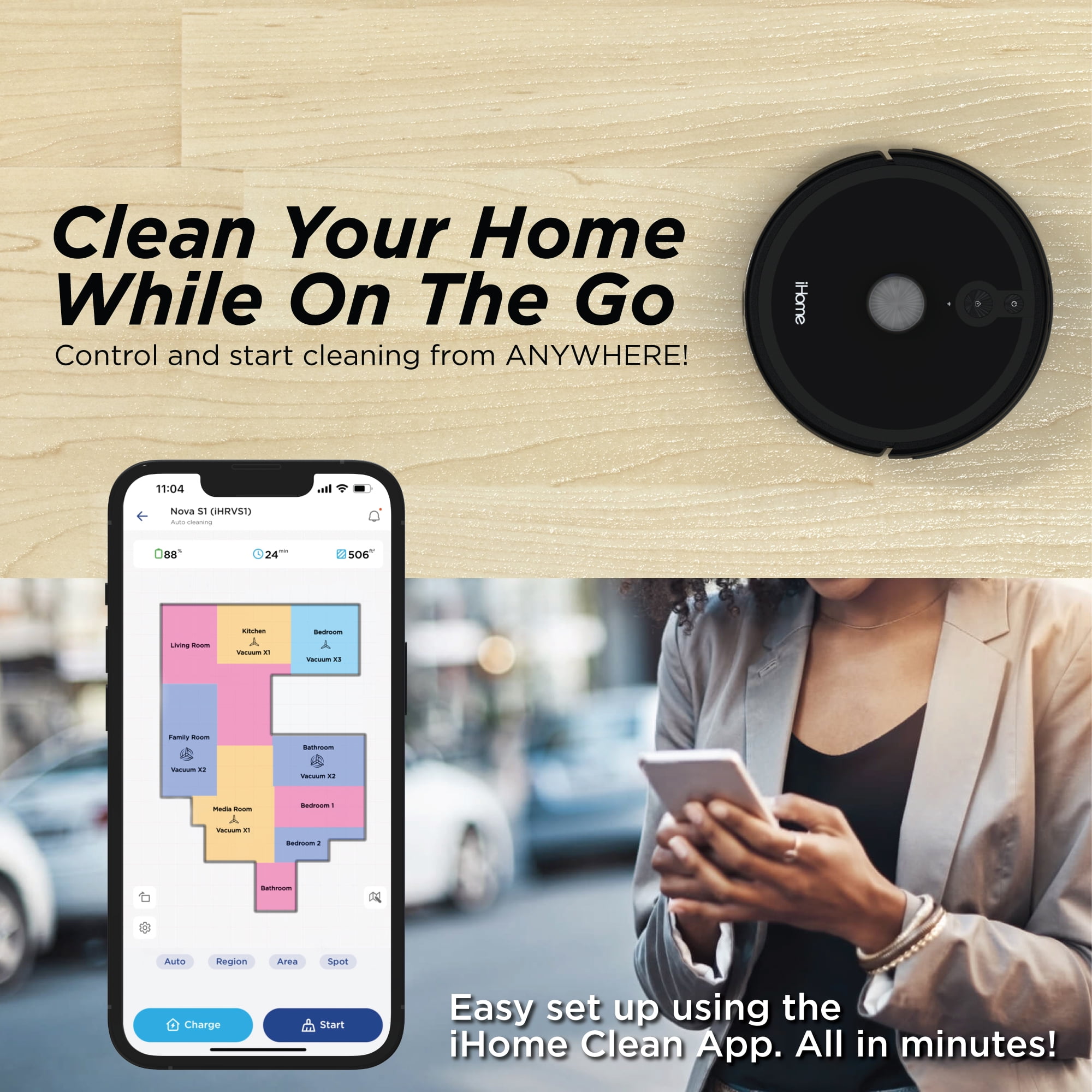 Eliminate cleaning from your agenda with the iHome AutoVac Nova S1. Featuring groundbreaking HomeMap 2.0 Navigation with 360 LIDAR Technology, it meticulously scans floor plans for tailored cleaning. Utilize the iHome Clean App to visualize your floor plan and establish virtual boundaries, customizing room-specific cleaning. Enjoy a lengthy 150-minute cleaning cycle, with automatic return to the charging base upon completion. With Recharge and Resume functionality, the Nova S1 seamlessly picks up where it left off if unable to finish in one charge. Experience effortless cleaning with the iHome AutoVac Nova S1.
