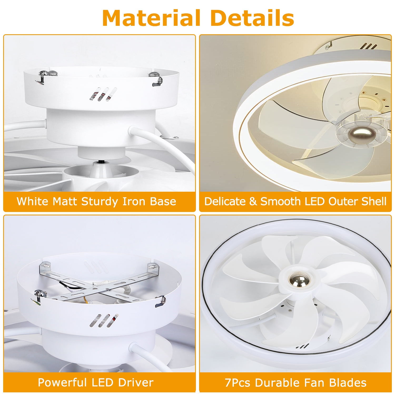 iMounTEK Modern Ceiling Fans with Light 19.7inch 3000K-6500K Smart LED Fan Light with Remote Control for Indoor/Living Room, White