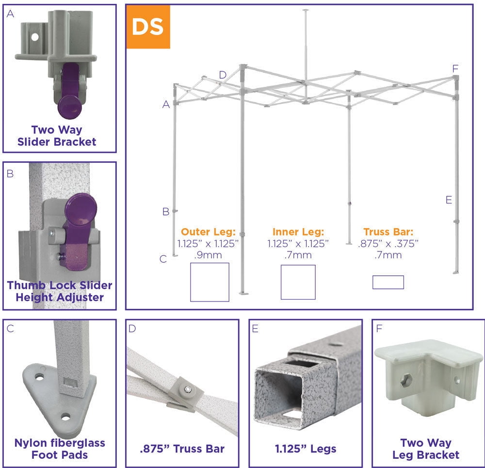 Kit includes frame, flat top, (3) solid sidewalls, (1) Sidewall with roll up door, roller bag, rope & stake kit All fabric is 300 Denier and Fire retardant: Meets CPAI-84 “PHOTO BOOTH” Printed Text is included on one valance Easy to set up – no tools required Pinch-Proof Sliders and Locks Sturdy, commercial Grade pop up canopy tent. Set-up is quick and easy and provides an Instant canopy cover from the sun and rain. Material is UV coated and water resistant Variable Height settings allow you to set your photo booth to your exact requirements. Sits at 80″ of head clearance at the highest setting Horizontal Velcro secures the walls to the inside of the valance Flat top has a 29.5″ square mesh opening for ventilation. Velcro strip across the outside of the front valance can be used for a removable Banner (banner not included)