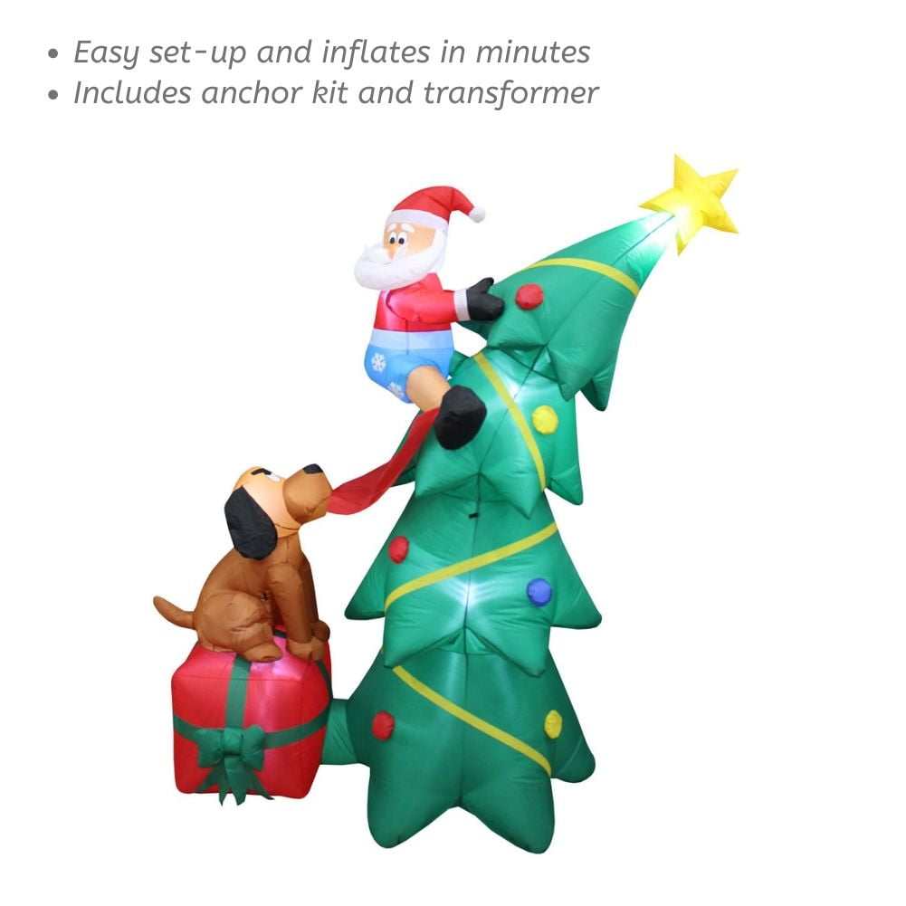 Impact Add some seasonal holiday flair to your yard or home with this impressive inflatable Christmas decoration. This inflatable features a Holiday Tree with a Dog humorously trying to pull the pants off Santa. Set up is quick and easy: just plug it in with the included adapter and your decoration will be fully inflated in minutes. At Impact Canopy, our products surpass other manufacturers in terms of quality, convenience. These best practices allow us to better quality and stronger product at a great value than the competition. Since 1999 we have been manufacturing and distributing high-quality products ranging from canopies, pop up tents, photo booths, banners, tables, chairs, and accessories. We’ve brought this broad experience into these Holiday Inflatables, resulting in durable and distinctive seasonal decor that you can enjoy for years to come.